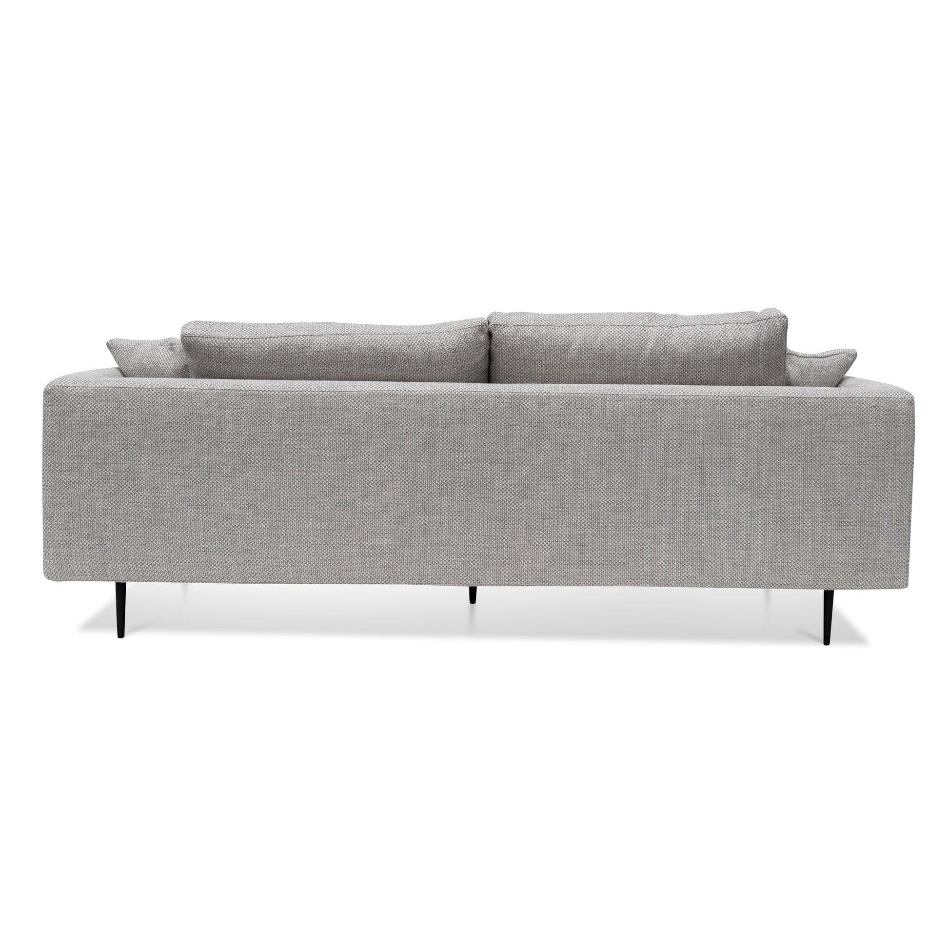 Crafted with pinewood timber, dressed in high-grade fabric, Arlette 4 Seater Fabric Sofa - Passive Grey offers commodious cushioning and seats. Its sleek tapered metal legs provide a contemporary flare to your modern living room.