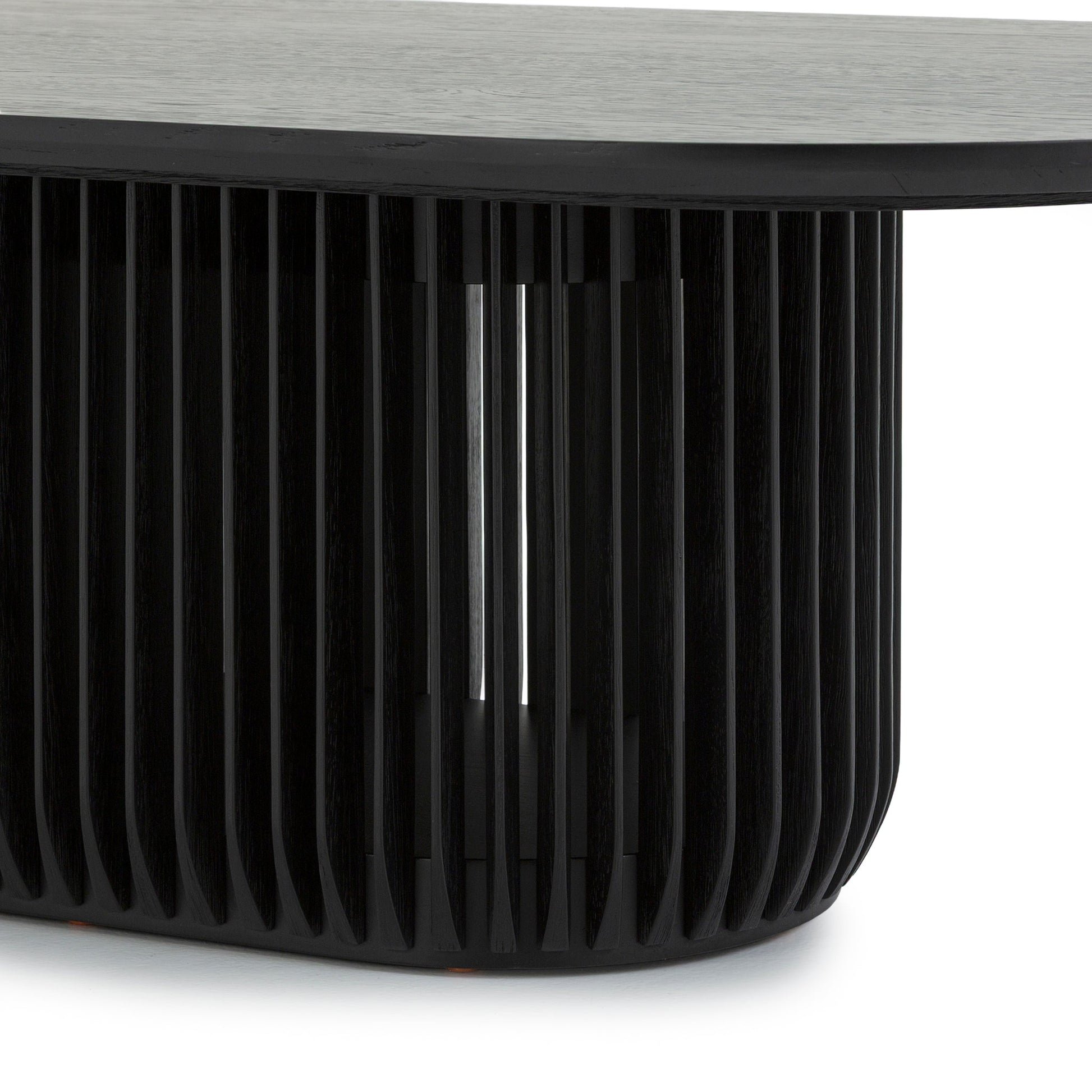 The Arvena 1.3m Oval Coffee Table in black stain brings together refined craftsmanship and striking design to elevate any living space. Its elongated oval silhouette softens the bold finish, creating a modern yet timeless presence that fits seamlessly in both contemporary and classic interiors.