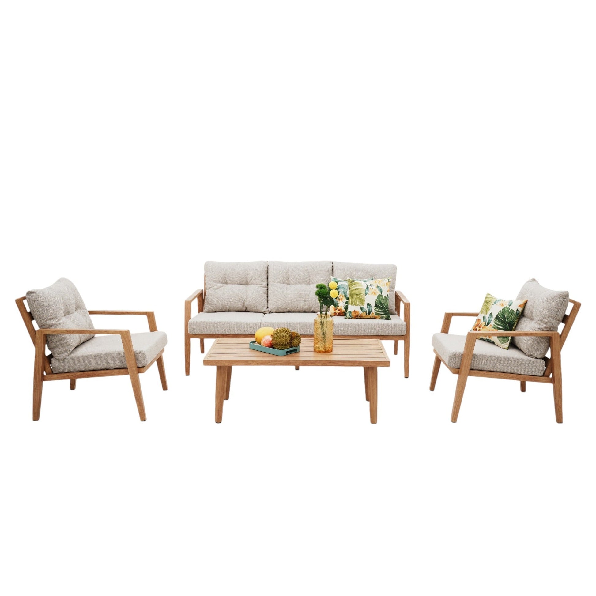 Experience luxury and durability with the Brighton 4pcs Outdoor Lounge Set. This Australia-designed set features weatherproof and water-repellent cushions that are UV protected and filled with high-quality foam. The wooden look aluminum frame adds style while adjustable feet ensure stability.