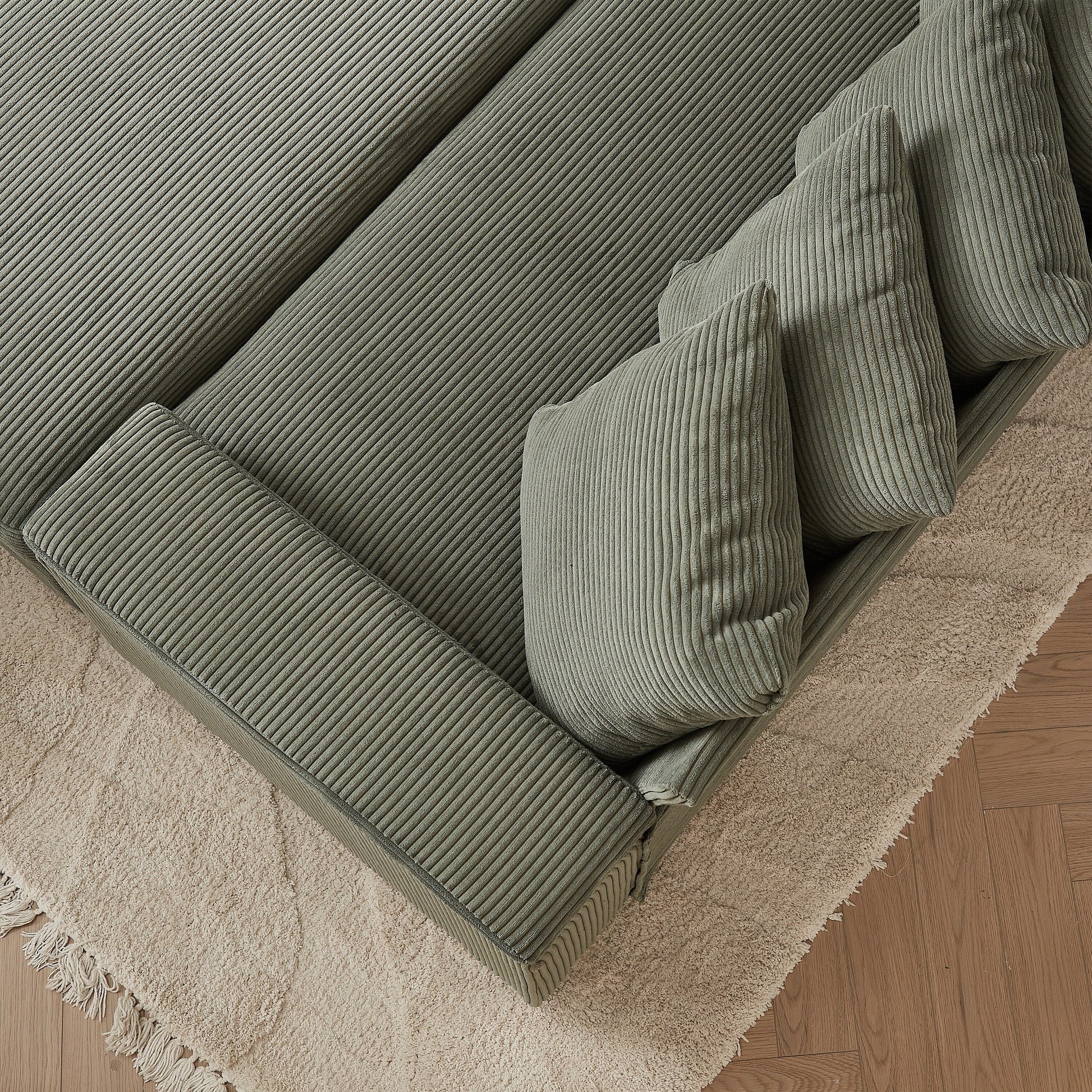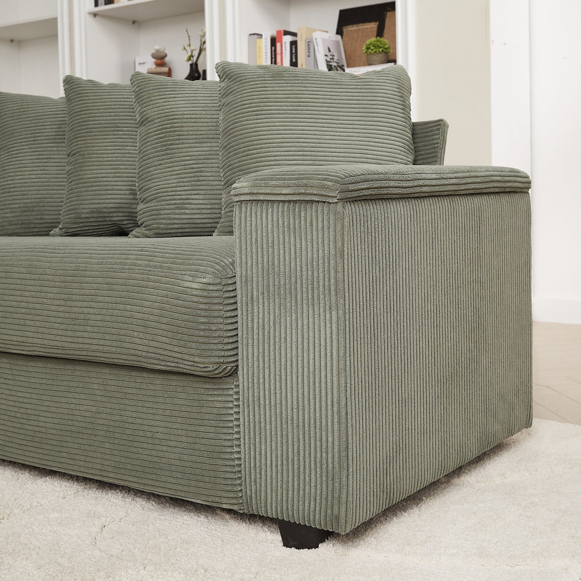 - [Versatile Minimalist Design]: Designed to elevate your living space, this oversized living room couch features a modern, simple square design that is both stylish and functional. The corduroy fabric adds a luxurious texture, making it a perfect choice for both aesthetic appeal and lasting durability. This L Shape sectional set invites you to sink in and relax, creating an inviting atmosphere in your home.