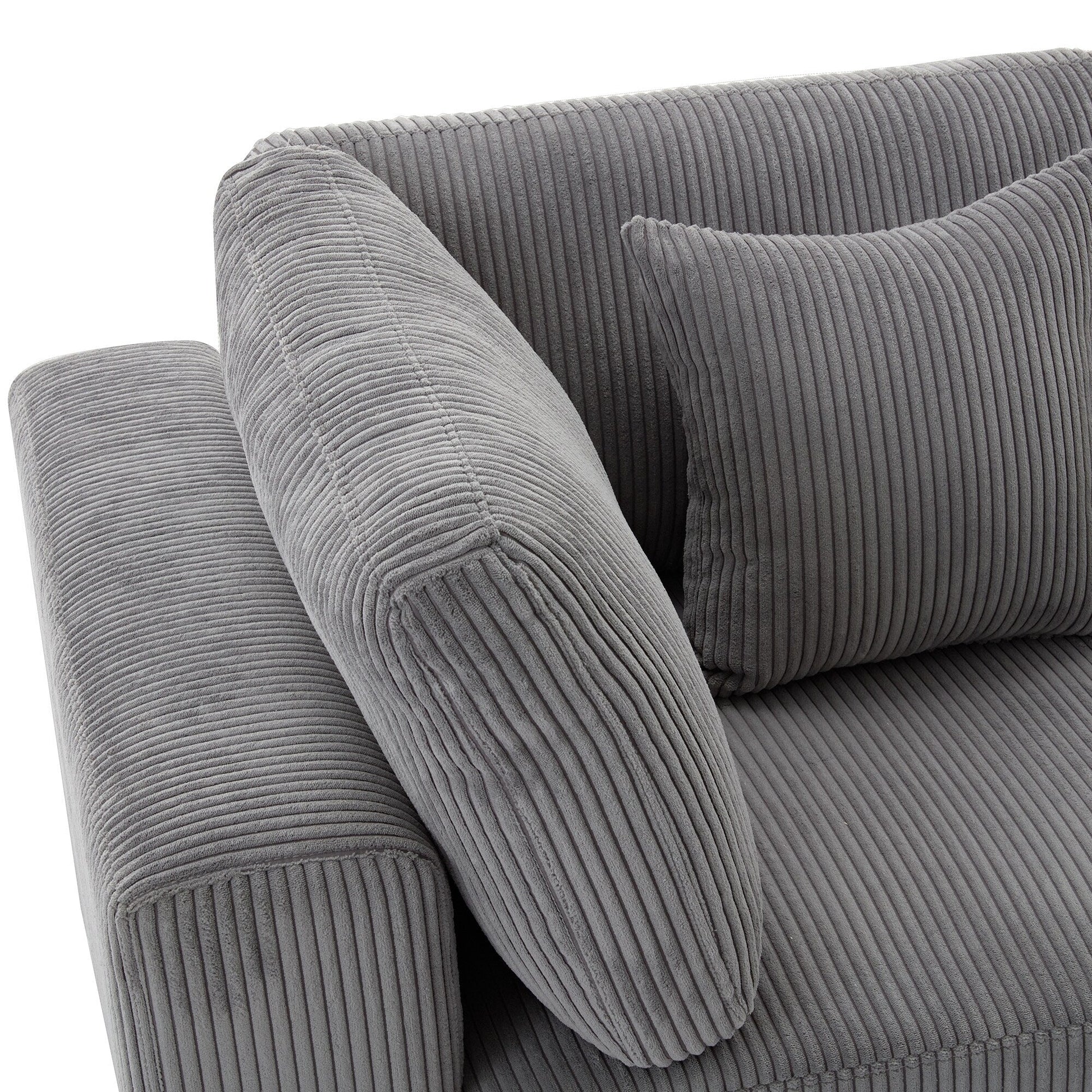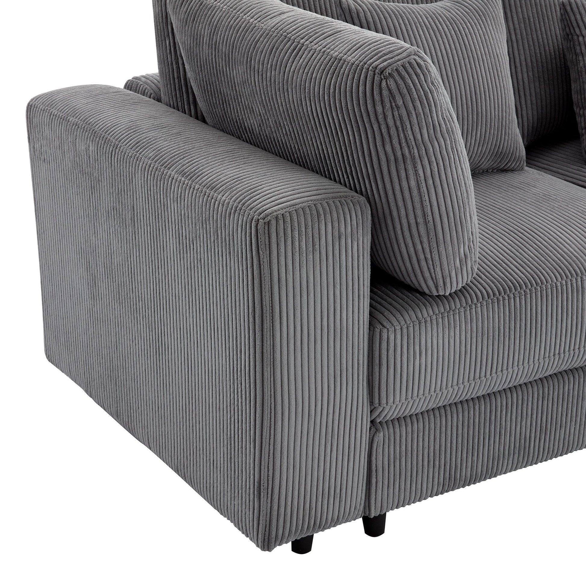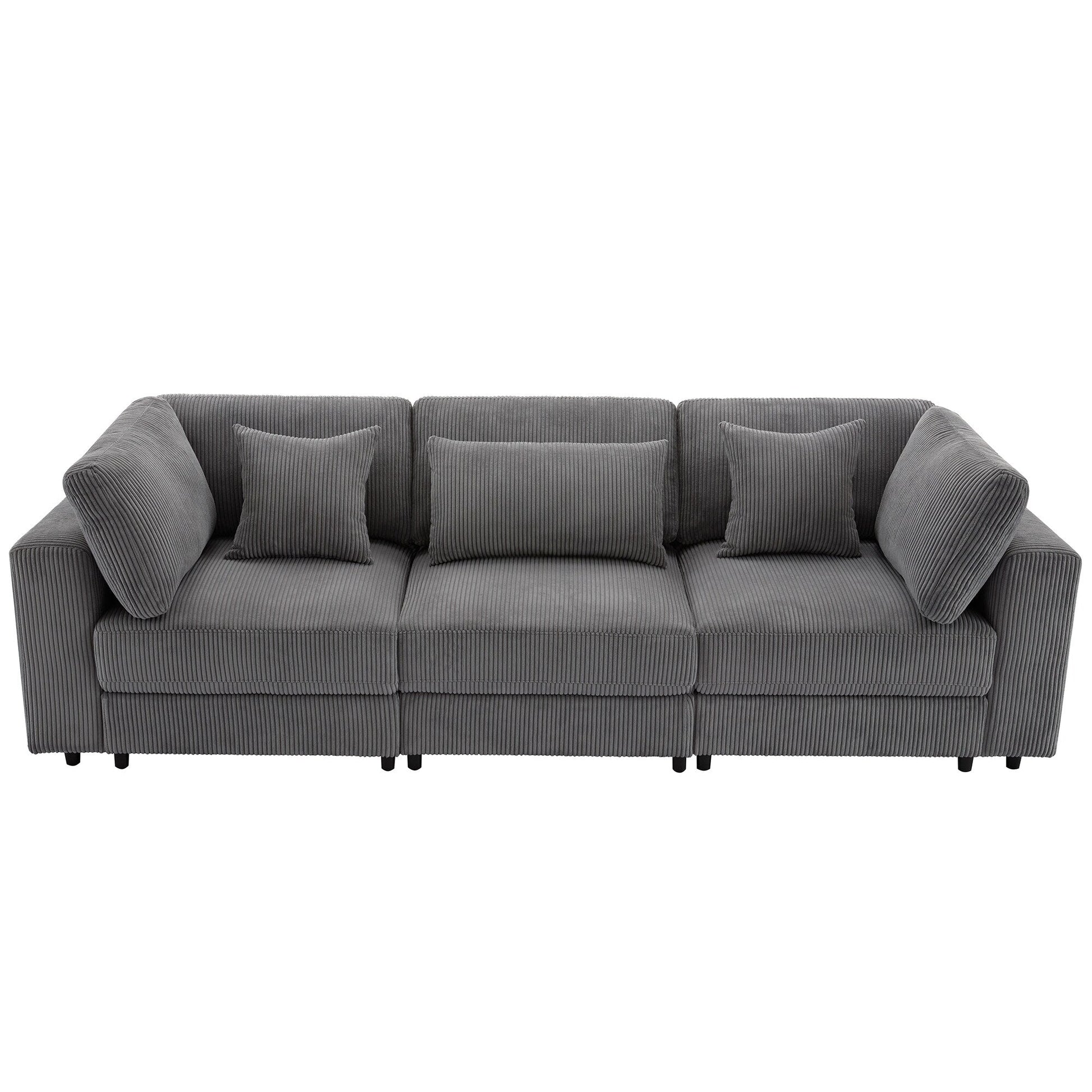 105 Corduroy Upholstered 3-seater Sofa with Removable Back Cushions and 5 Pillows for Living Room