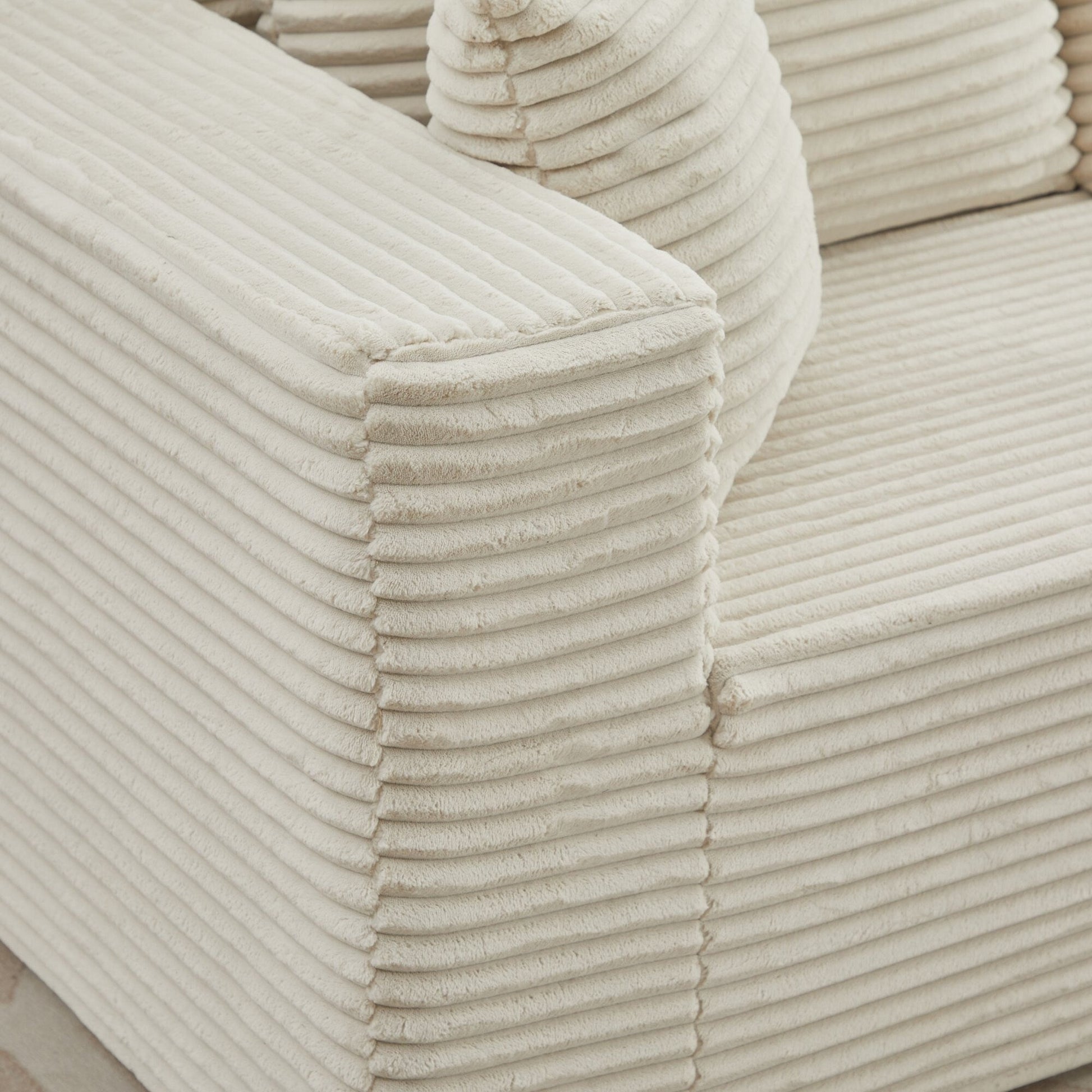 Plush Corduroy Fabric: Our sofa set is wrapped in premium corduroy, giving you unrivaled softness and warmth. The upgraded material offers better breathability and stain resistance, making the fluffy couch easy to care for and clean. The unique texture and soft sheen make it stand out, providing gentle pampering no matter the season