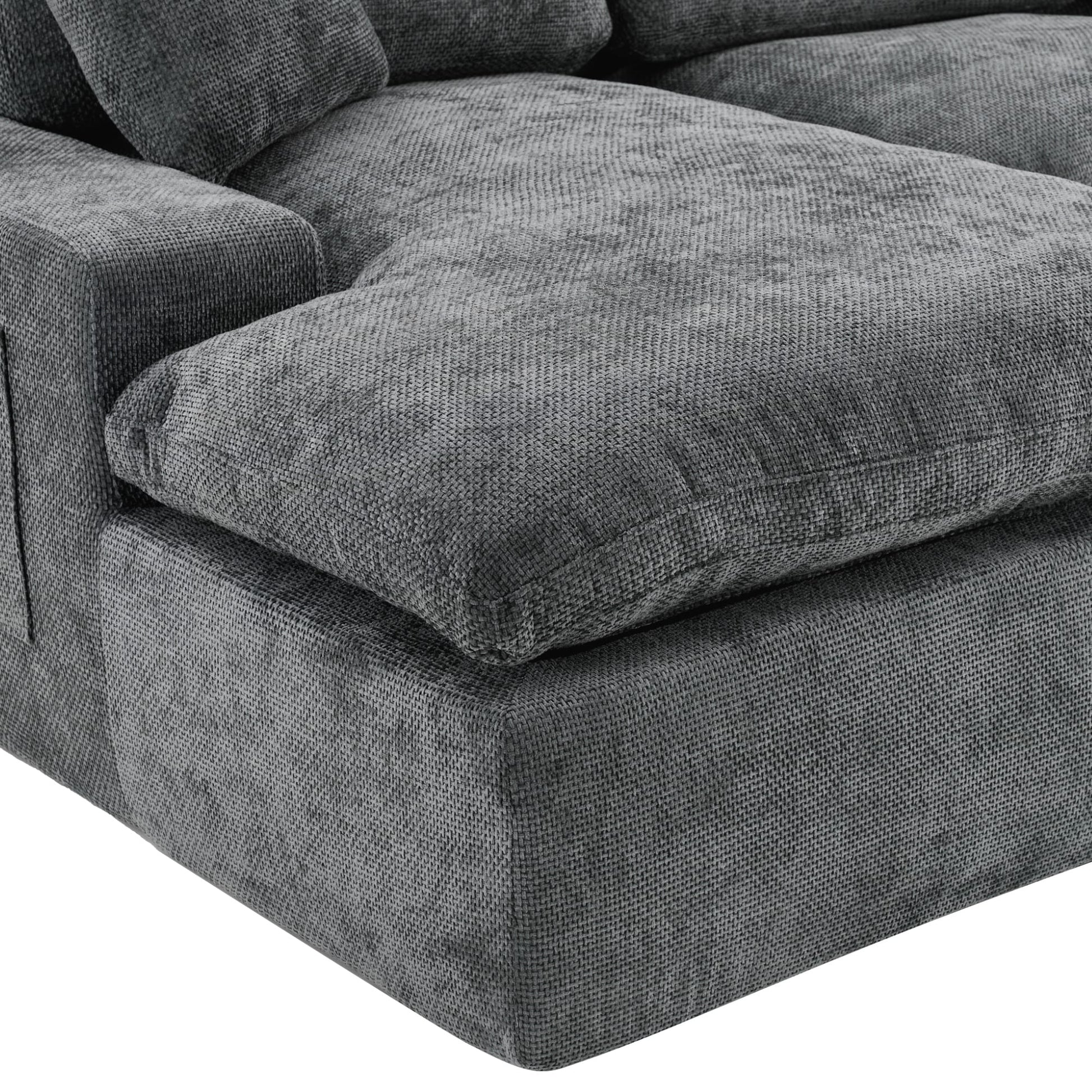 Double-layer Cushion The seating area is thoughtfully crafted with a double-layered cushion system, offering an exquisite balance of enveloping softness and enduring support. The top layer, filled with ultra-soft compression foam, delivers an immediate 'sink-in' embrace, inviting you to unwind in effortless comfort. Beneath, a firmer structural layer ensures the seat maintains its elegant form and resilient plushness, even after prolonged daily use â?a testament to lasting luxury. Side Storage Pockets Both armrests are discreetly designed with integrated storage pockets, providing an elegant solution for keeping remotes, magazines, tablets, or even a cozy throw blanket within easy reach. Maintain a clean, sophisticated living space without compromising on convenience or comfort.