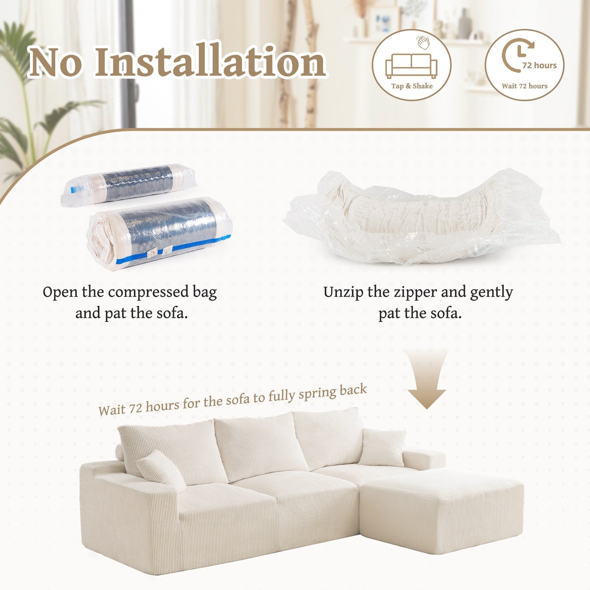 '110' L-Shaped Sectional Sofa, Full-Compression 3-Seater Cloud Couch with Chaise, No Assembly Required Sofa for Living Room, Ultra-Soft Deep Seat Modular Sofa