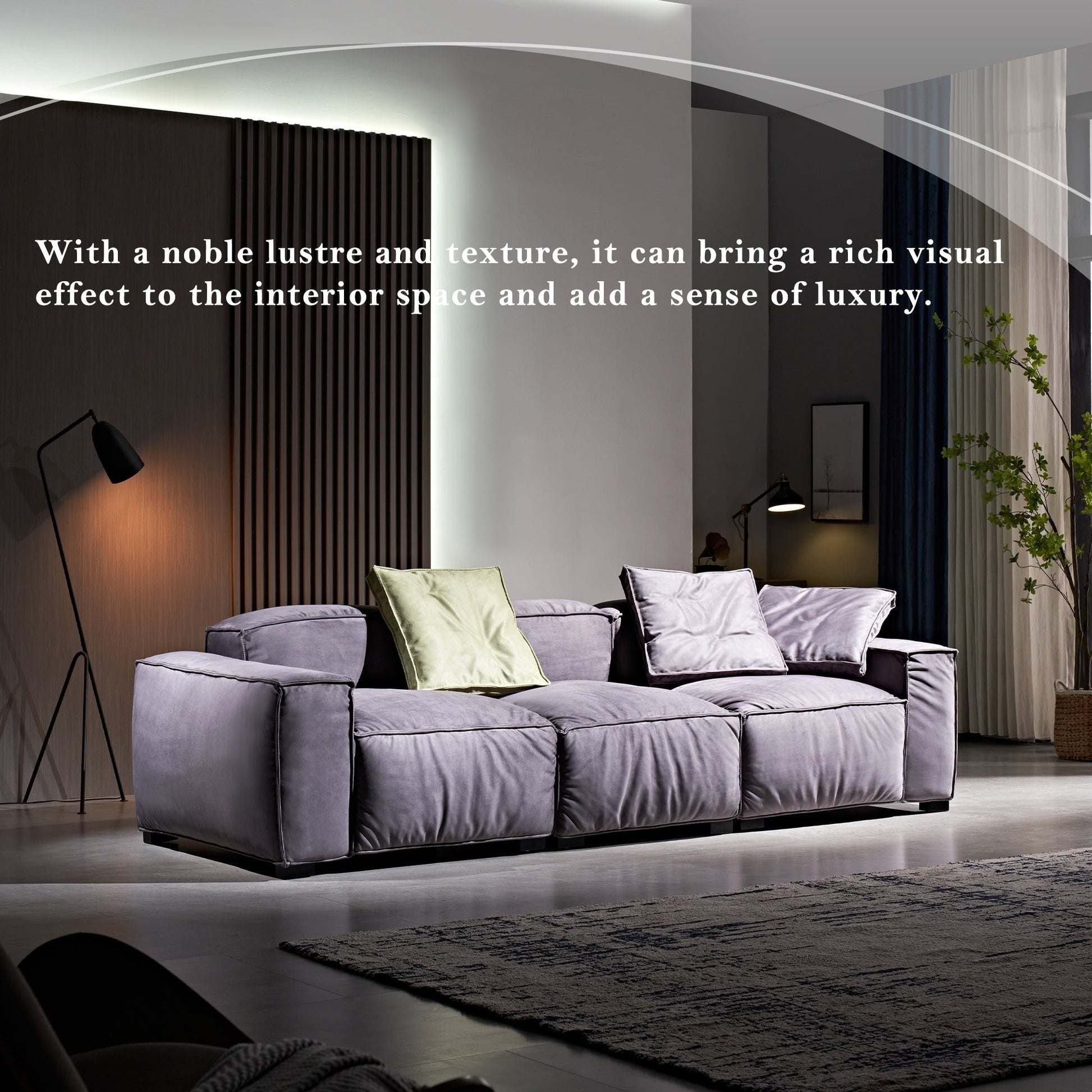 - Luxury Velvet Fabric: This sofa is made of high quality velvet as the fabric, which is soft and comfortable to touch, showing the elegant texture. Velvet fabric is not only beautiful, but also durable, with good abrasion resistance and wrinkle resistance, not easy to fade, and can maintain the colour and luster for a long time. It can effectively enhance the overall comfort and make your home environment more warm and luxurious.