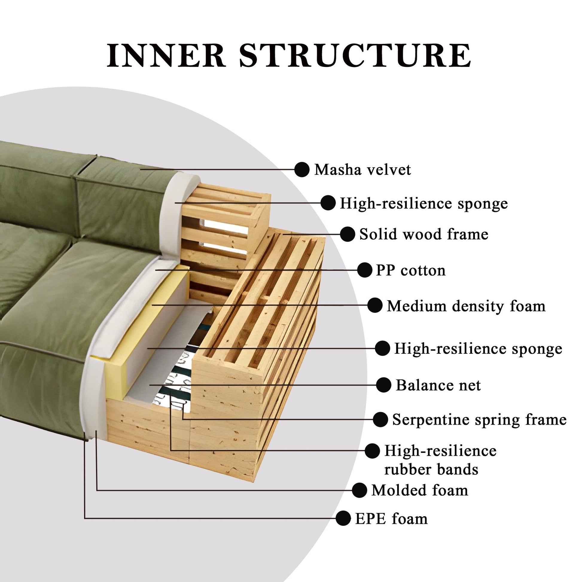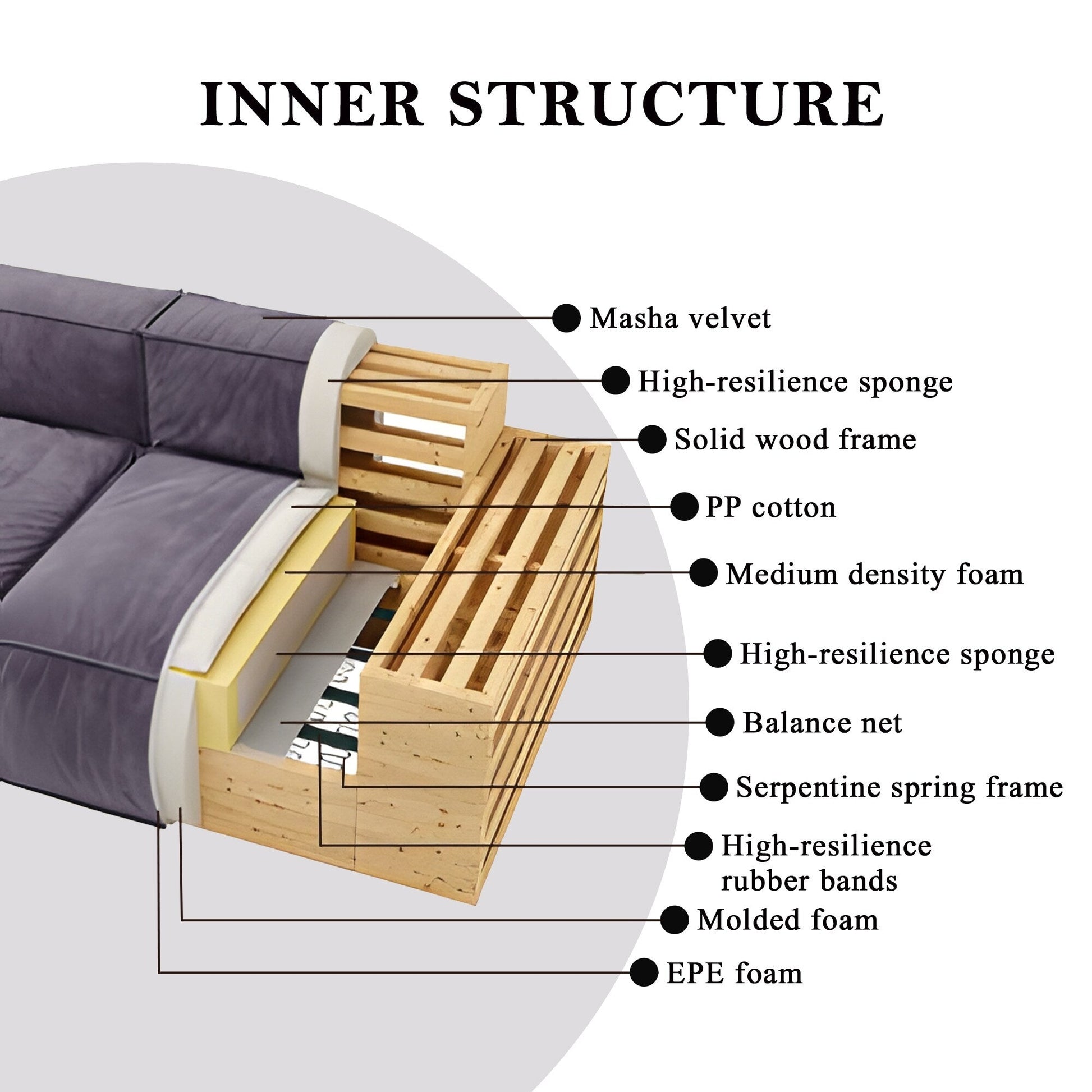 110'' Square Sofa Masha Velvet with Four-seater for Living Room Sofa-bed