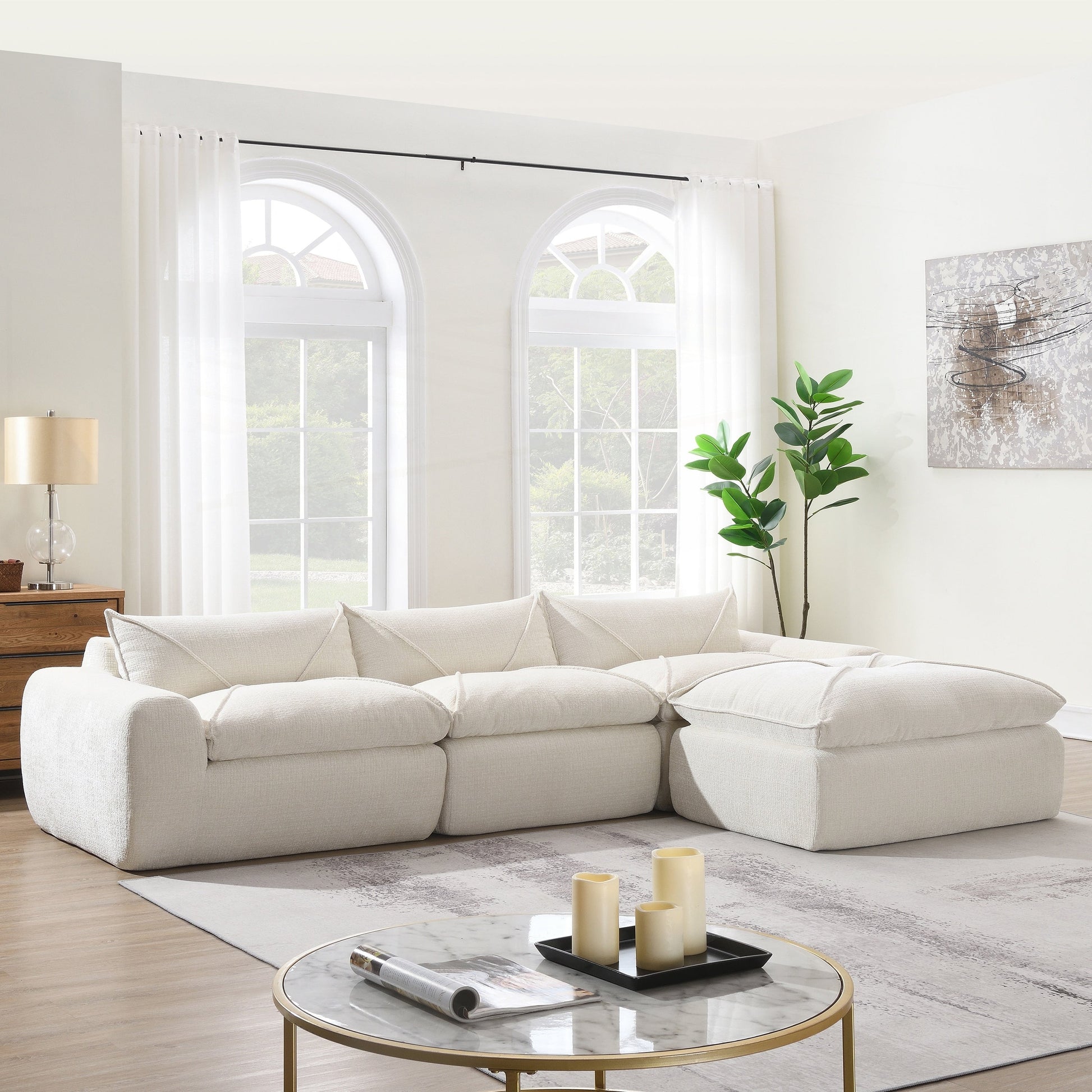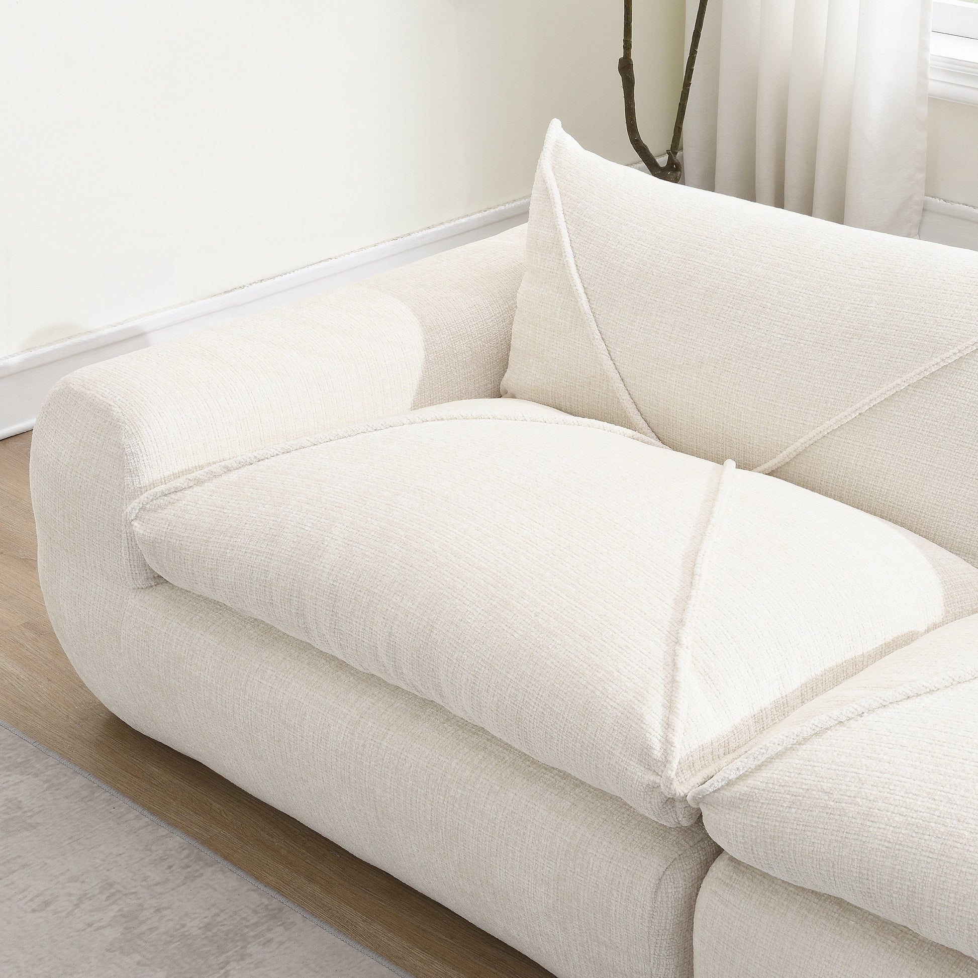Pull wires and pull points design The unique shapes and lines of the sofa are created through the wire-pulling and point-pulling techniques, making the sofa cushions and backrests present round and smooth curves, creating a more three-dimensional visual effect. This enhances the overall aesthetic.