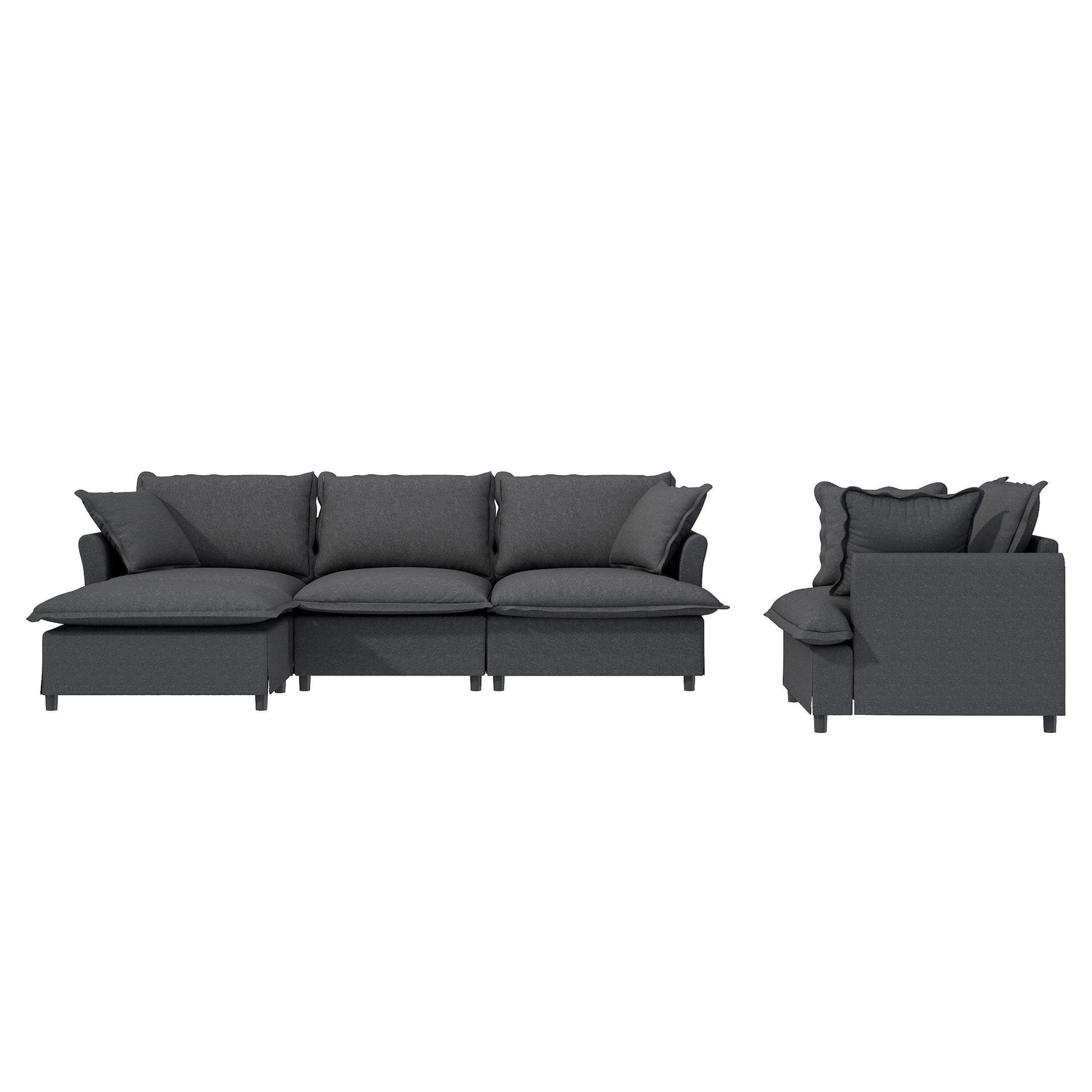 3 Piece Living Room Sofa Set,Modular L Shaped Chenille Sectional Couch,Upholstered 3 Seater Sofa & Armchair & Movable Ottoman