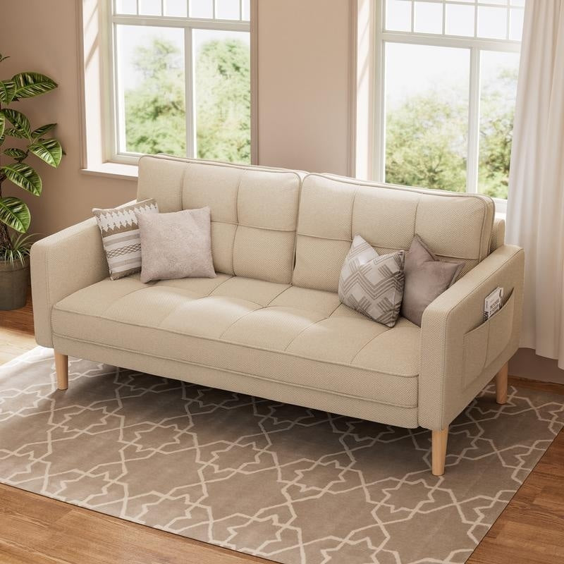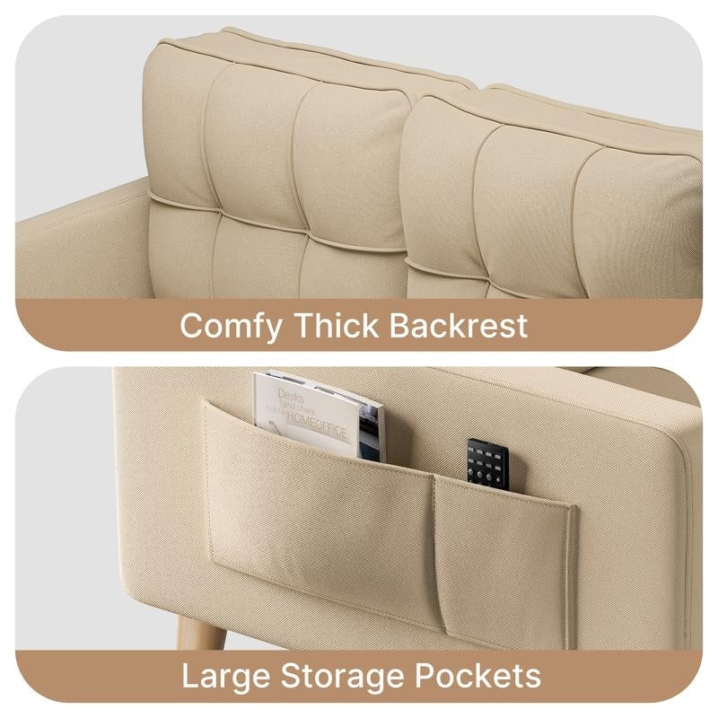 - This is a super comfortable and soft sofa. This sofa consists of a highly elastic sponge and durable wooden support legs. Strong wooden legs, breathable linen filled with high-quality sponge, and firm and comfortable backrest and cushion not only provide a comfortable and soft use experience, but also are very easy to clean, maintain and durable.