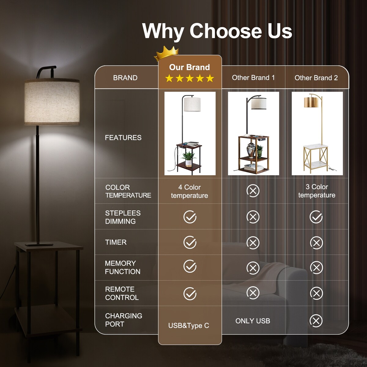 This floor lamp with a magazine table is durable and its smooth lines give a very cool modern feel.The high-quality and durable linen lampshade is thick enough to soften the light, reduce glare, and create a warm and comfortable atmosphere.This lamp has a beautiful design and is suitable for various scenes.