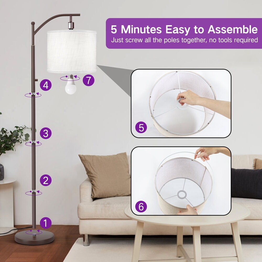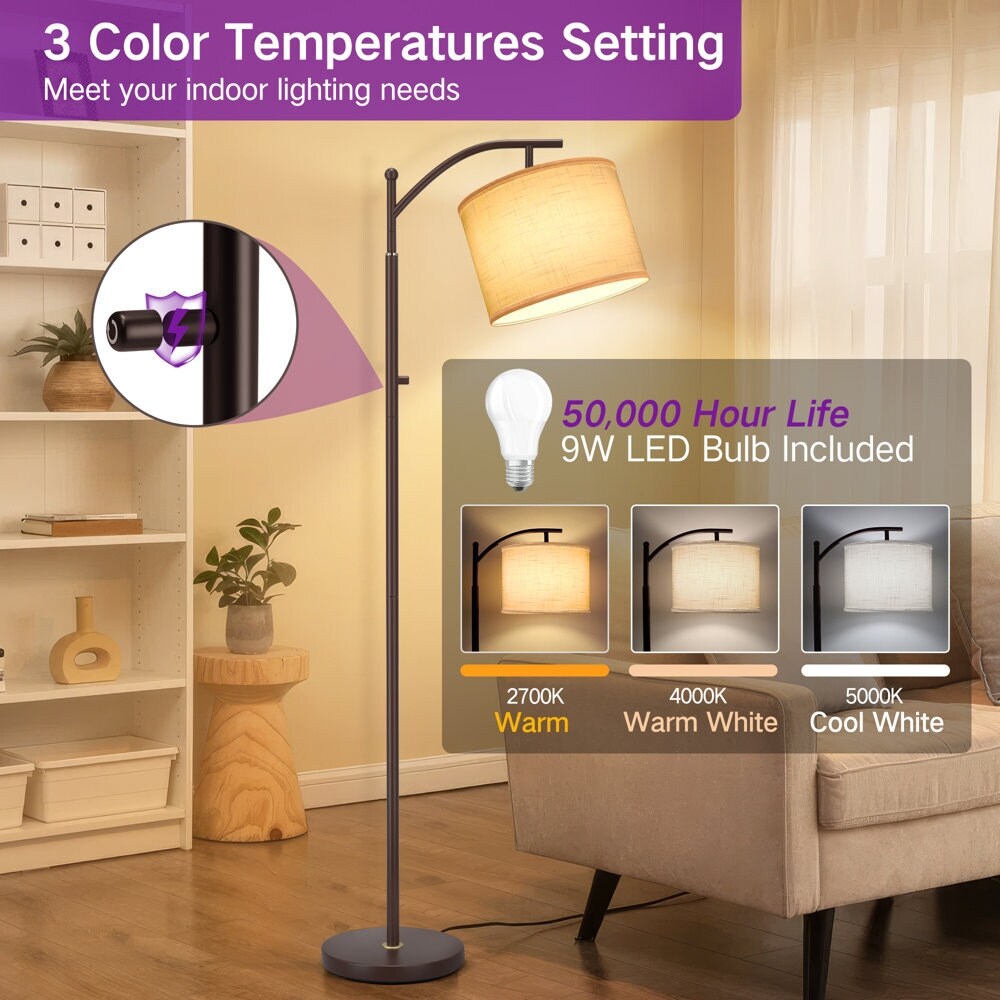 Illuminate your home with this brown floor lamp.The high-quality and durable linen lampshade has a thickness that is sufficient to soften light and reduce glare; Create a warm and comfortable atmosphere.Compared with halogen or incandescent bulbs, you don't need to replace the bulb and save 90% of your electricity bills because LED bulbs don't waste a lot of energy due to heating, which also avoids accidental burns when using the lamp.