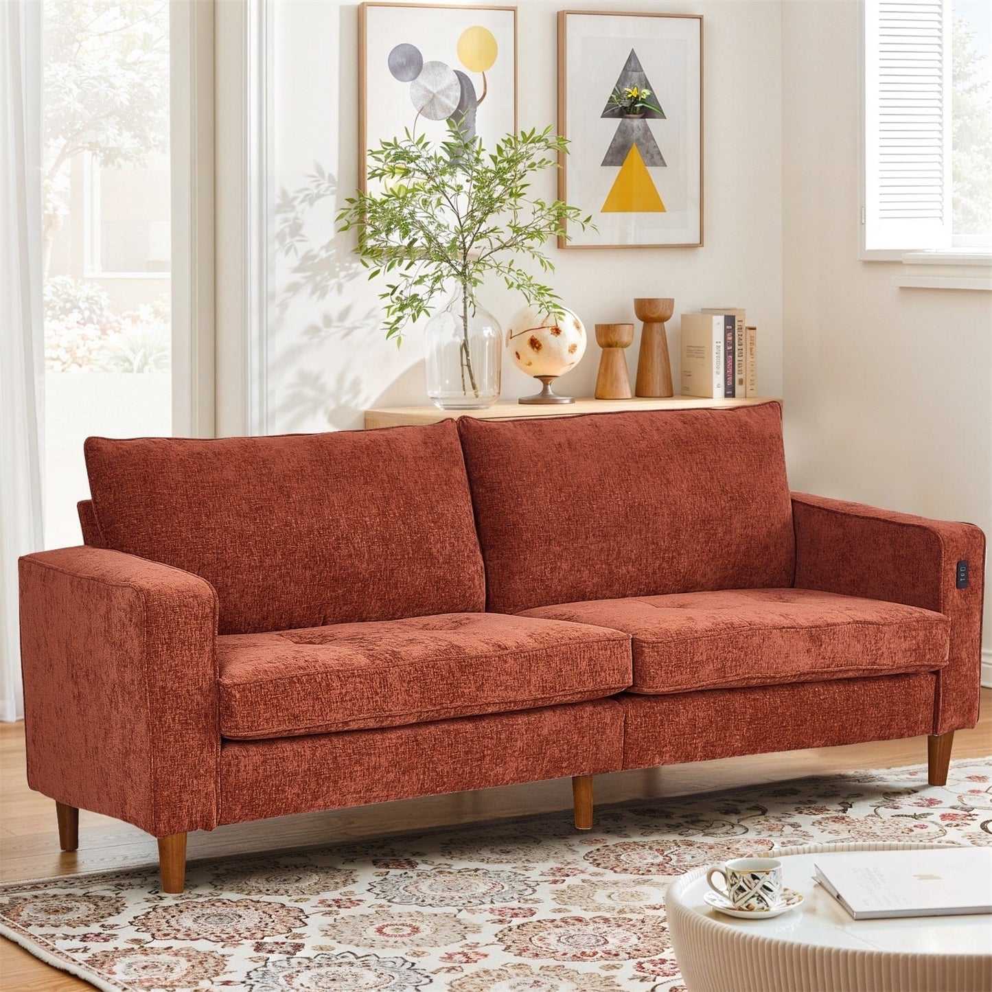 - Customizable Comfort with Added Convenience: Crafted for your comfort, this chenille sofa features high-density sponge-filled seats and armrests that offer a skin-friendly, cozy feel. The side armrest is equipped with USB and Type A&C plugs, allowing you to charge your devices while relaxingâperfect for enjoying your phone or tablet without interruption.