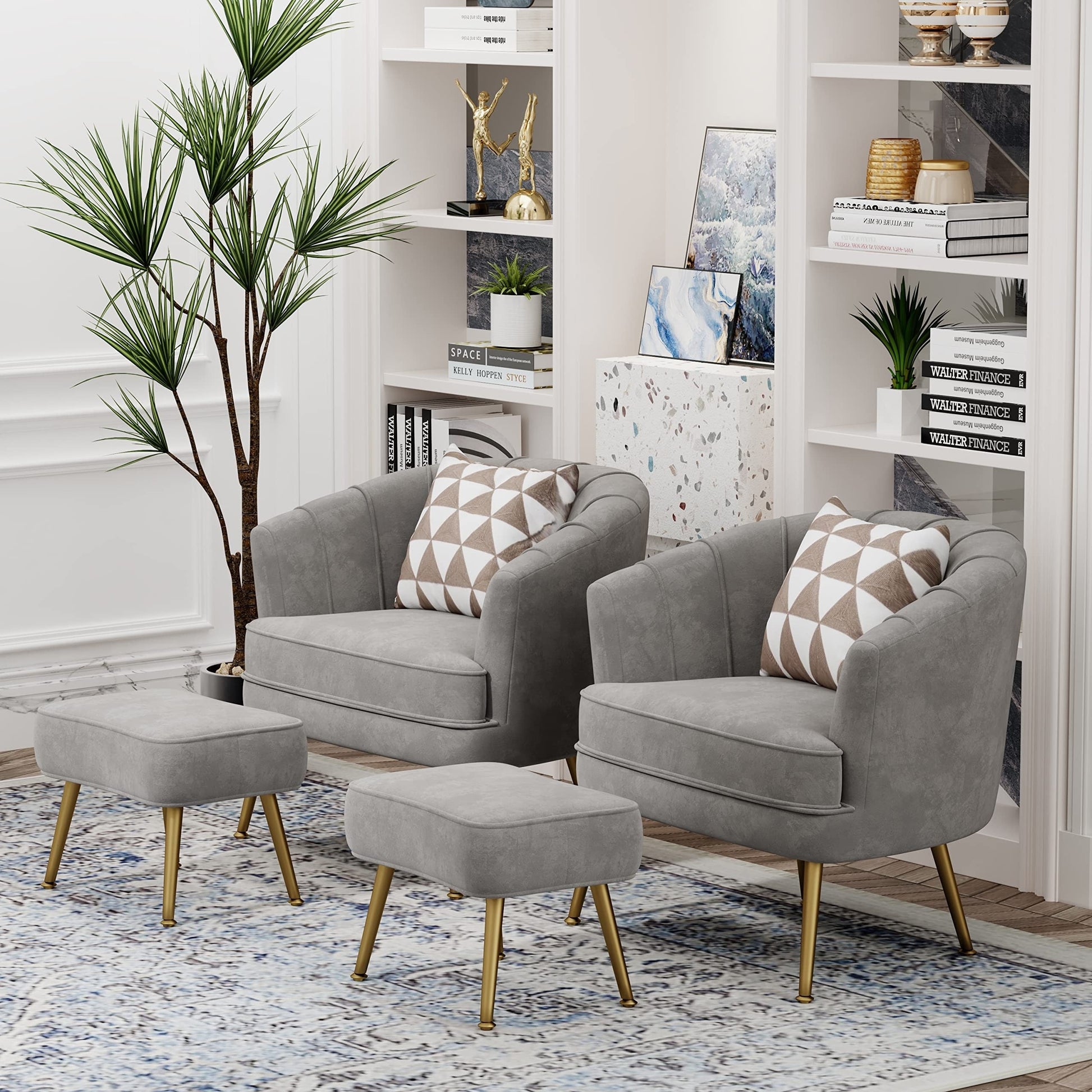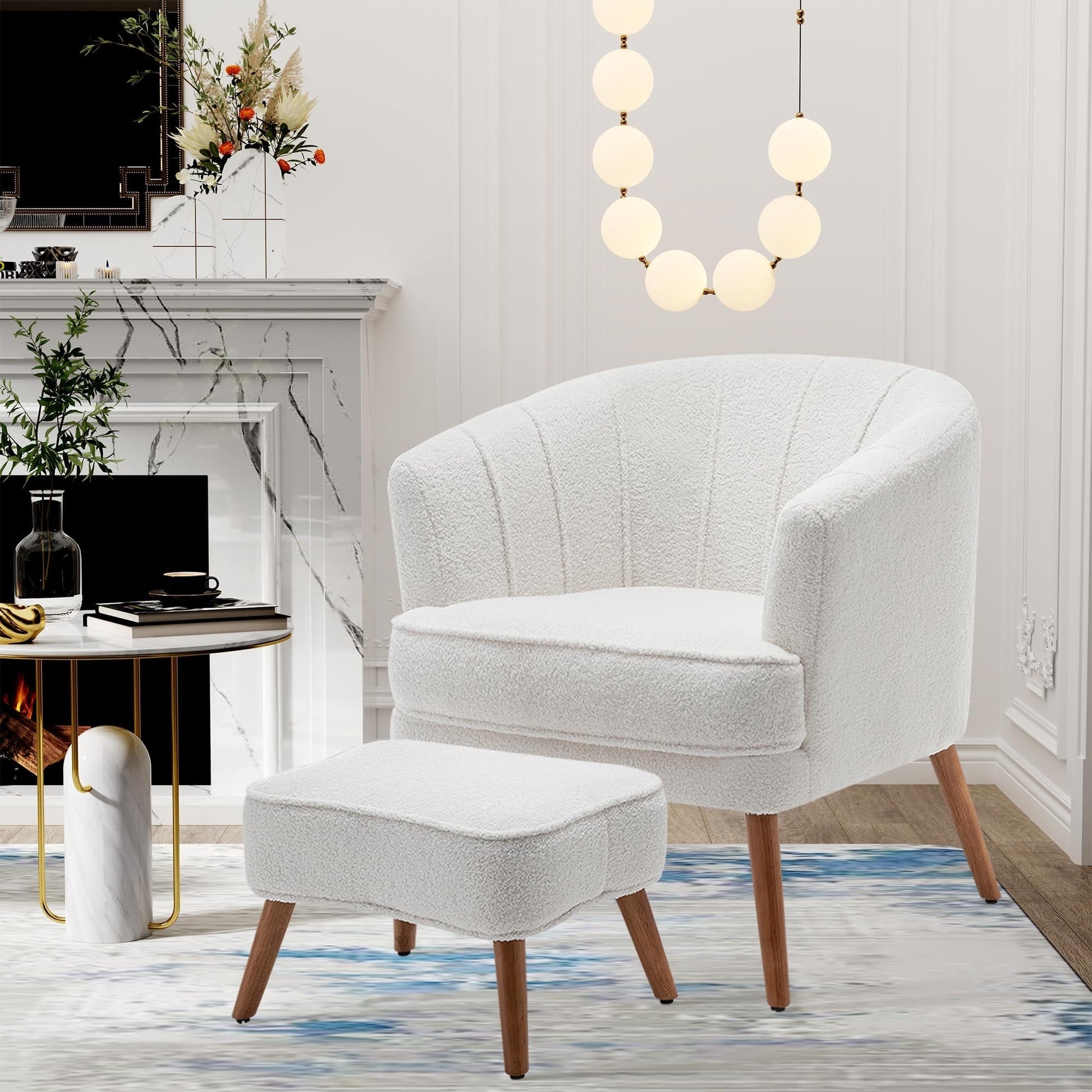 Andeworld Accent Chair with Ottoman, Upholstered Modern Single Sofa Side Chair,Comfy Barrel Club Living Room Armchair