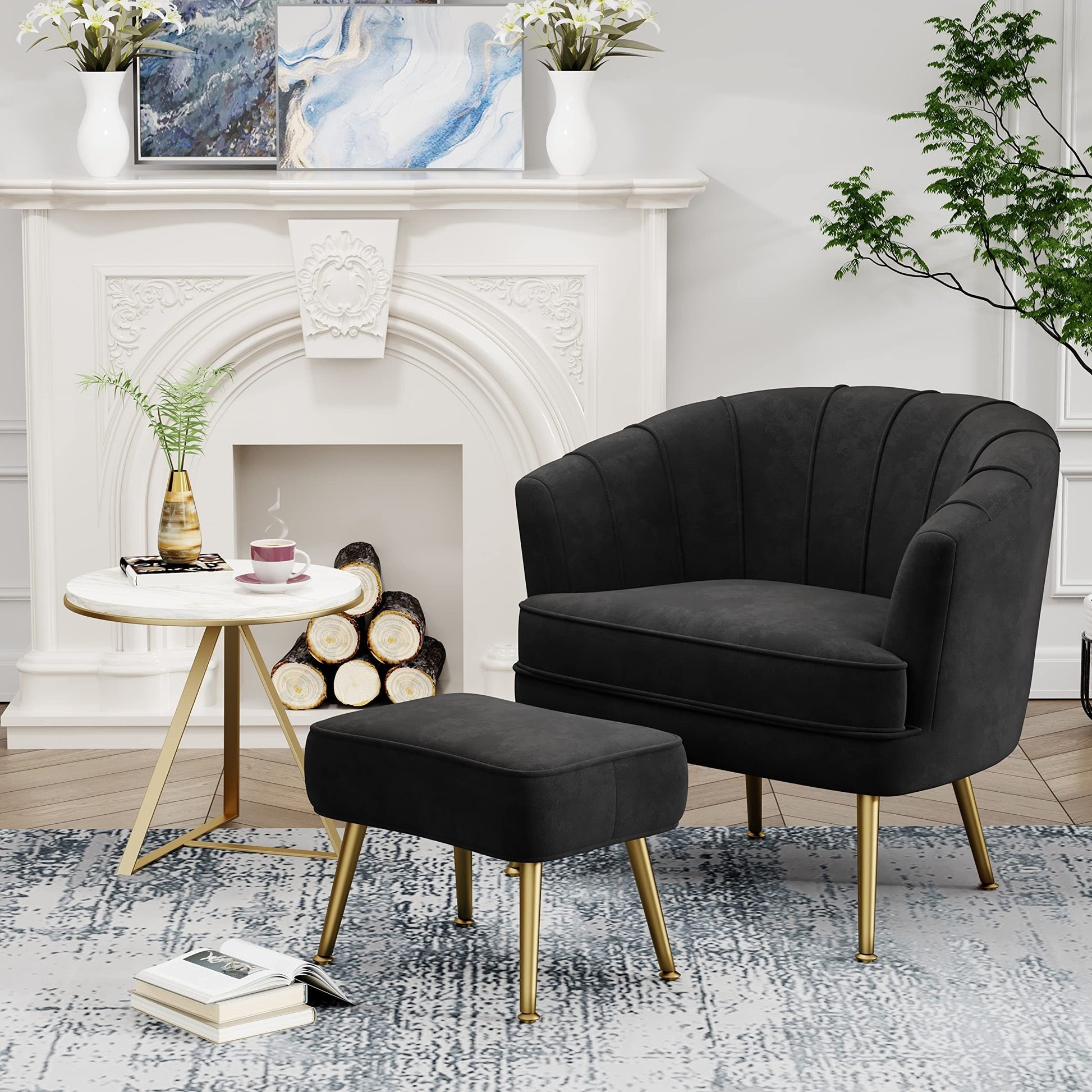 - 【Comfortable Seat Backrest】This modern accent chair is made of highly elastic sponge and covered with handpicked velvet. Both the backrest and cushion are well padded with thickened sponge, and the seat is very spacious, which is very comfortable to seat for a long time. Comes with an ottoman great for small spaces, the ottoman can also be arranged as a seat alone.