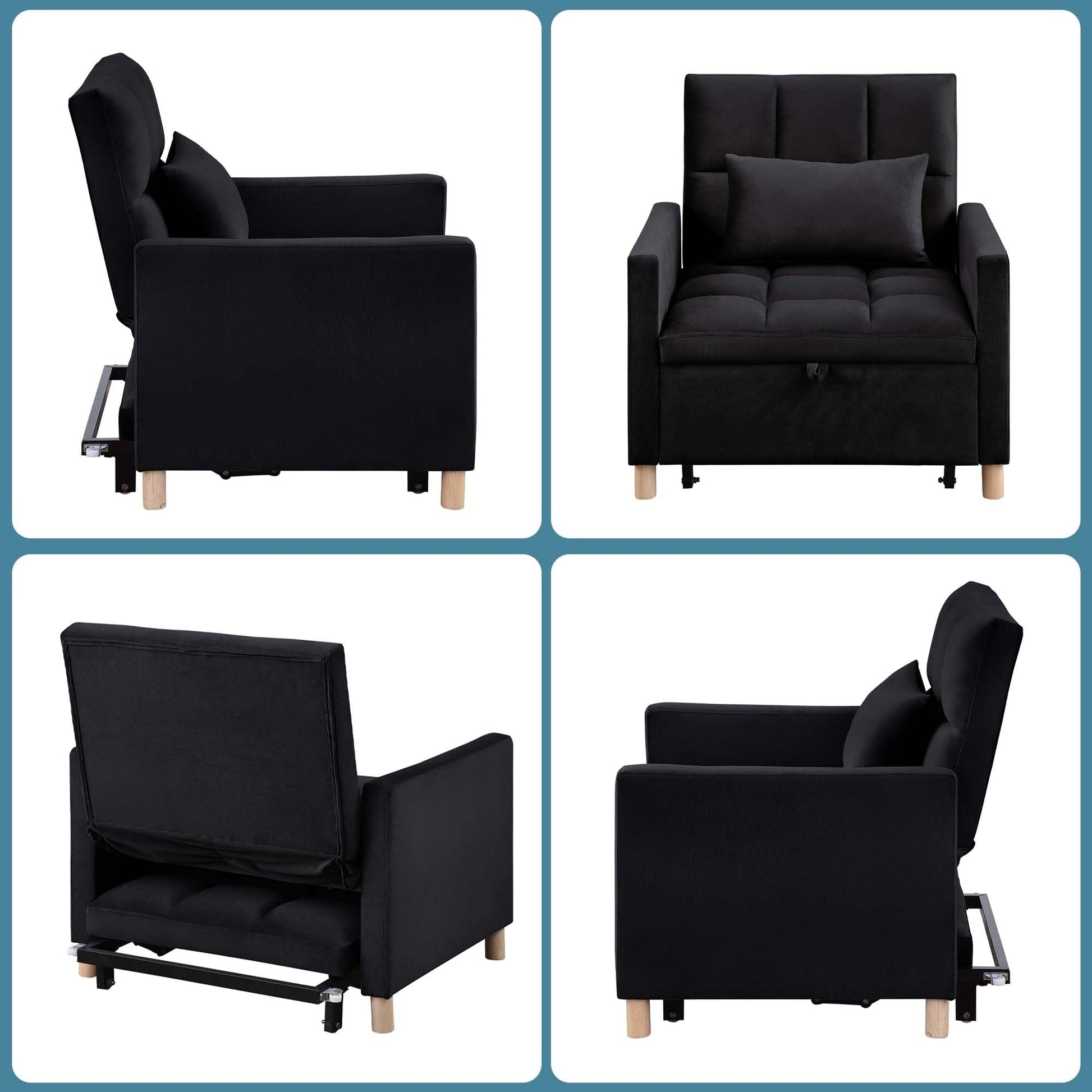 Combining stylish appearance and upgraded comfort, this AUKFA convertible sofa bed is a perfect addition to your home.It's a cozy sofa or lounger by day, but quickly becomes your friend's sleeper bed at night, easily transforming your living room into a guest's bedroom. 3-level adjustable backrest meets your different needs, like watching TV, reading books, sleeping and more. Padded with high-density sponge and covered with breathable velvet fabric, the pull-out sleeper chair gives you comfortable sitting experience. The soft pillow provides you with adequate lumbar and neck support. Furthermore, sturdy metal frame ensures longer reliable usage and 330 lbs. weight capacity.