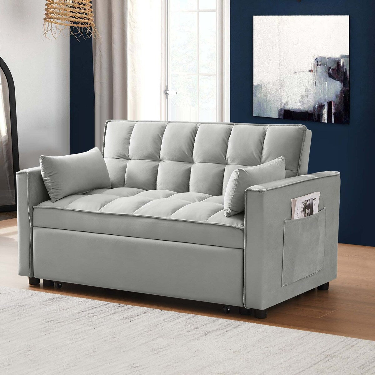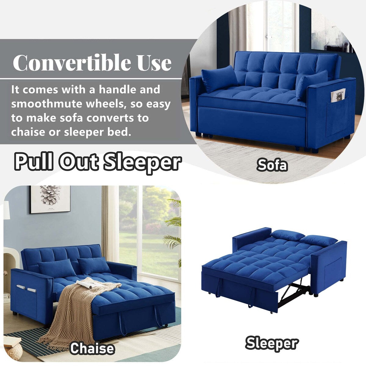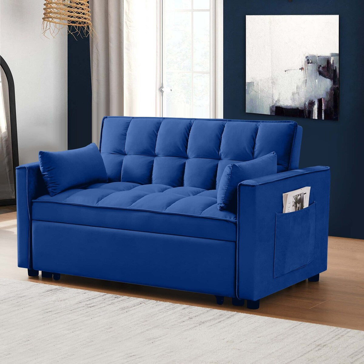 Aukfa Velvet Convertible Sleeper Sofa Loveseat with Side Pocket