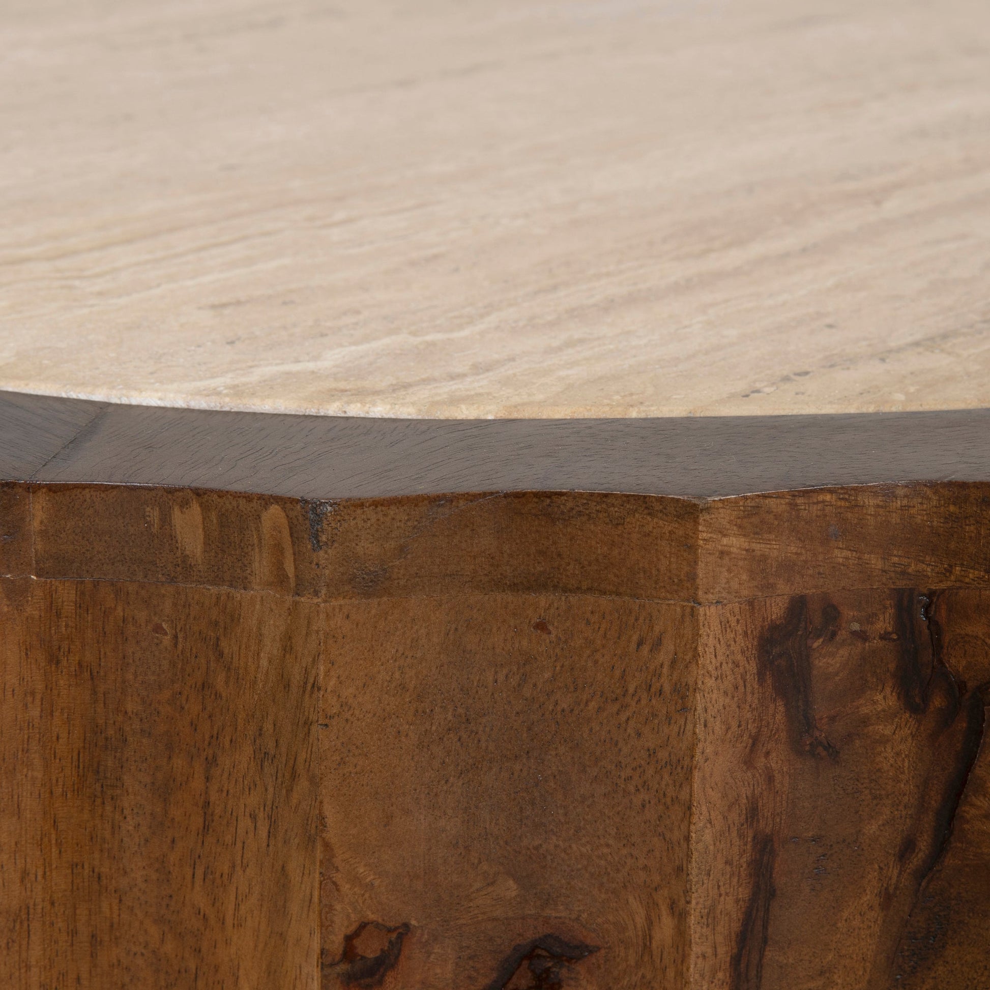 Avanti 89cm Travertine Top Round Coffee Table - Walnut