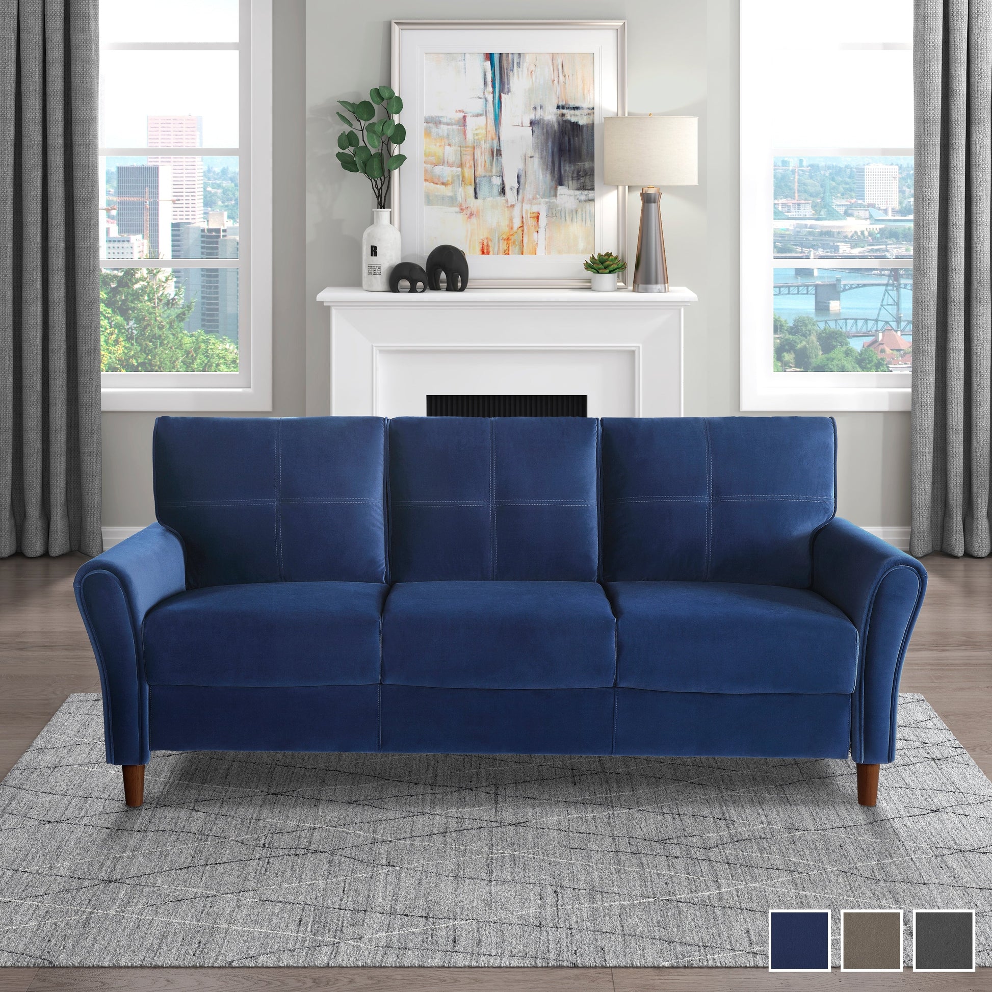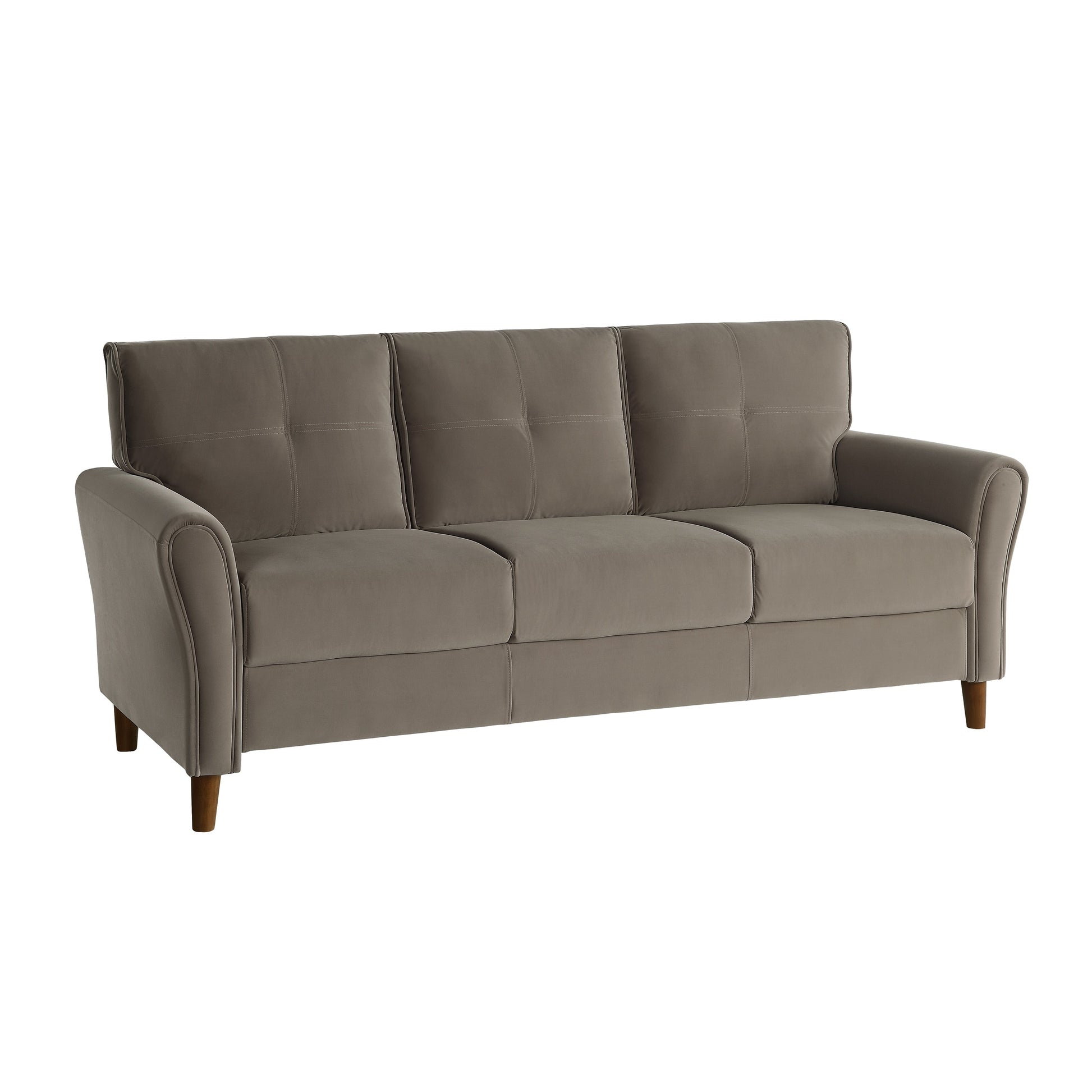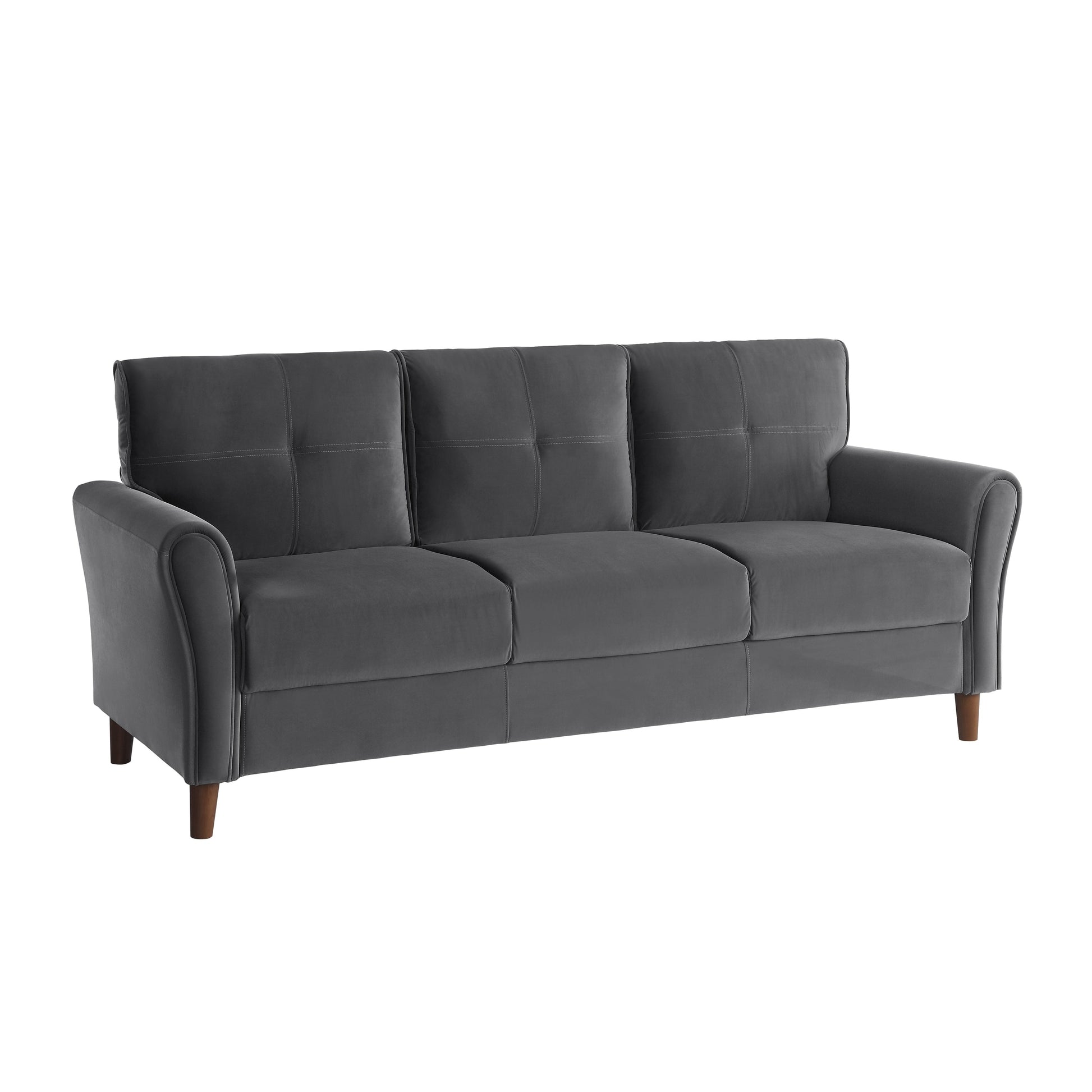 Introducing the Avlona Tufted Velvet Sofa - a charming addition to your living space. The walnut-finished wooden frame complements the flared arms and tufted detailing, while the three velvet fabric color options make it easy to match your existing decor. The transitional style and removable cushions make for a comfortable and stylish seating experience.