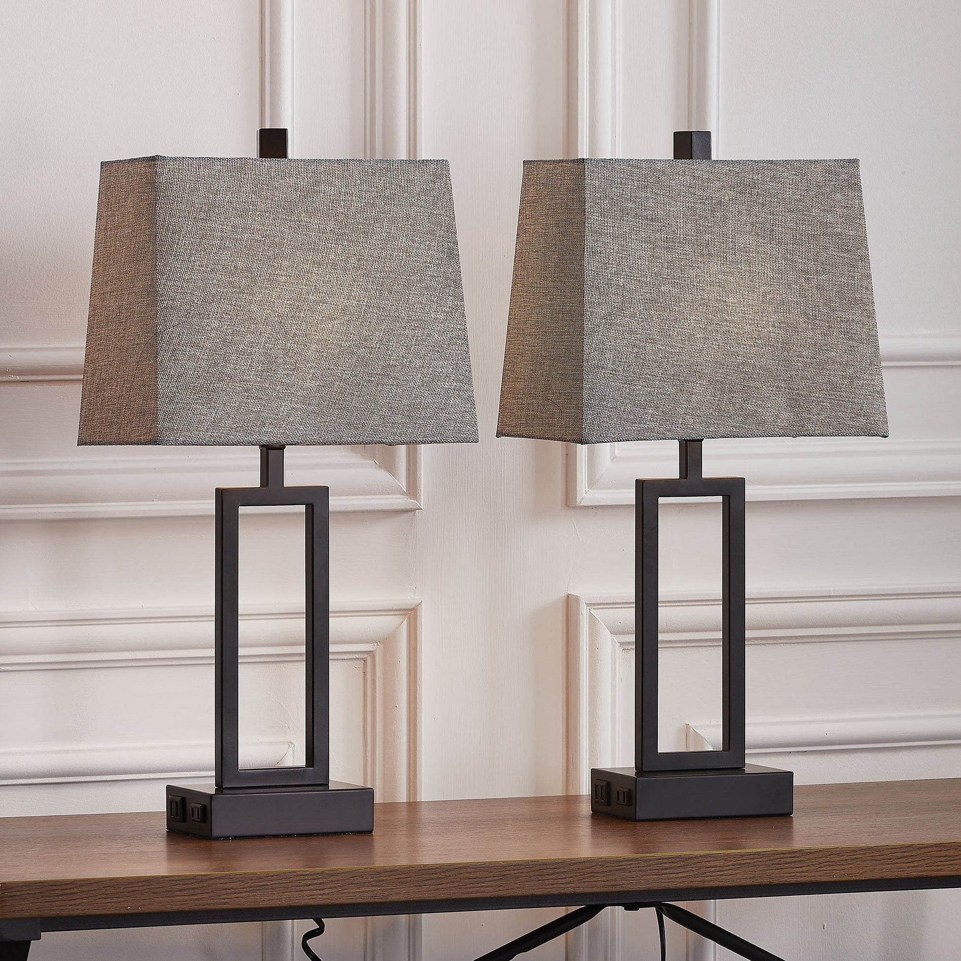 Black Metal Table Lamp with Touch Dimming Switch Charging Ports (Set of 2) - 12'' x 6.5'' x 23.5'' (L x W x H)