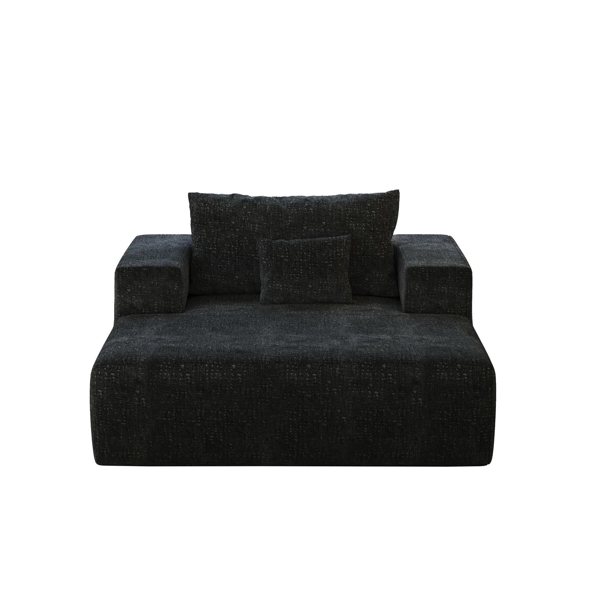 Black Modern 55 Chenille Sponge Single Sleeper Chair Sofa with Backrest Pillow for Living Room