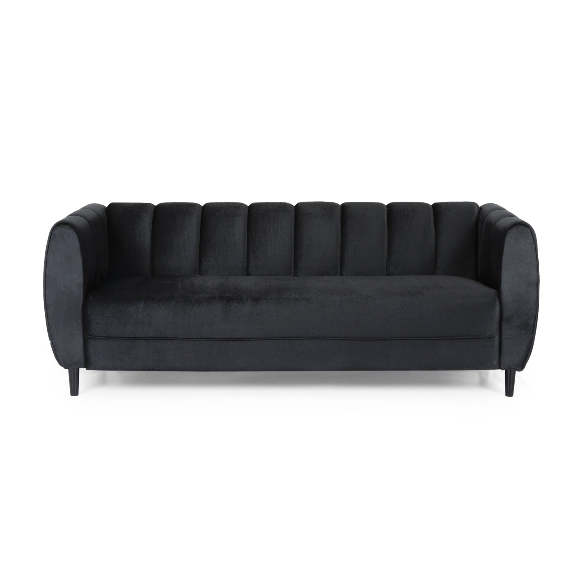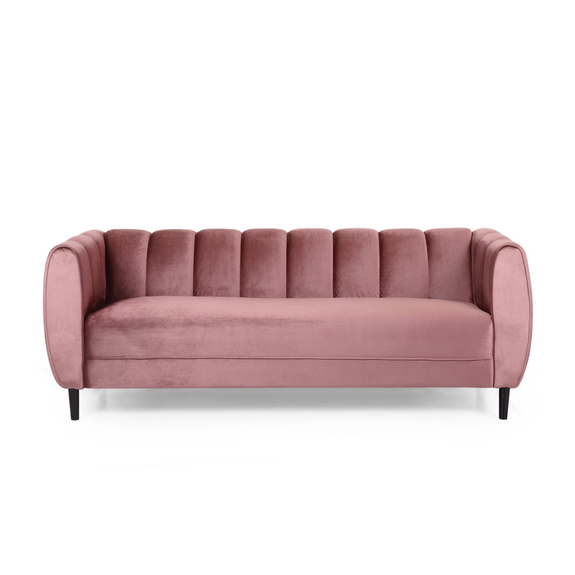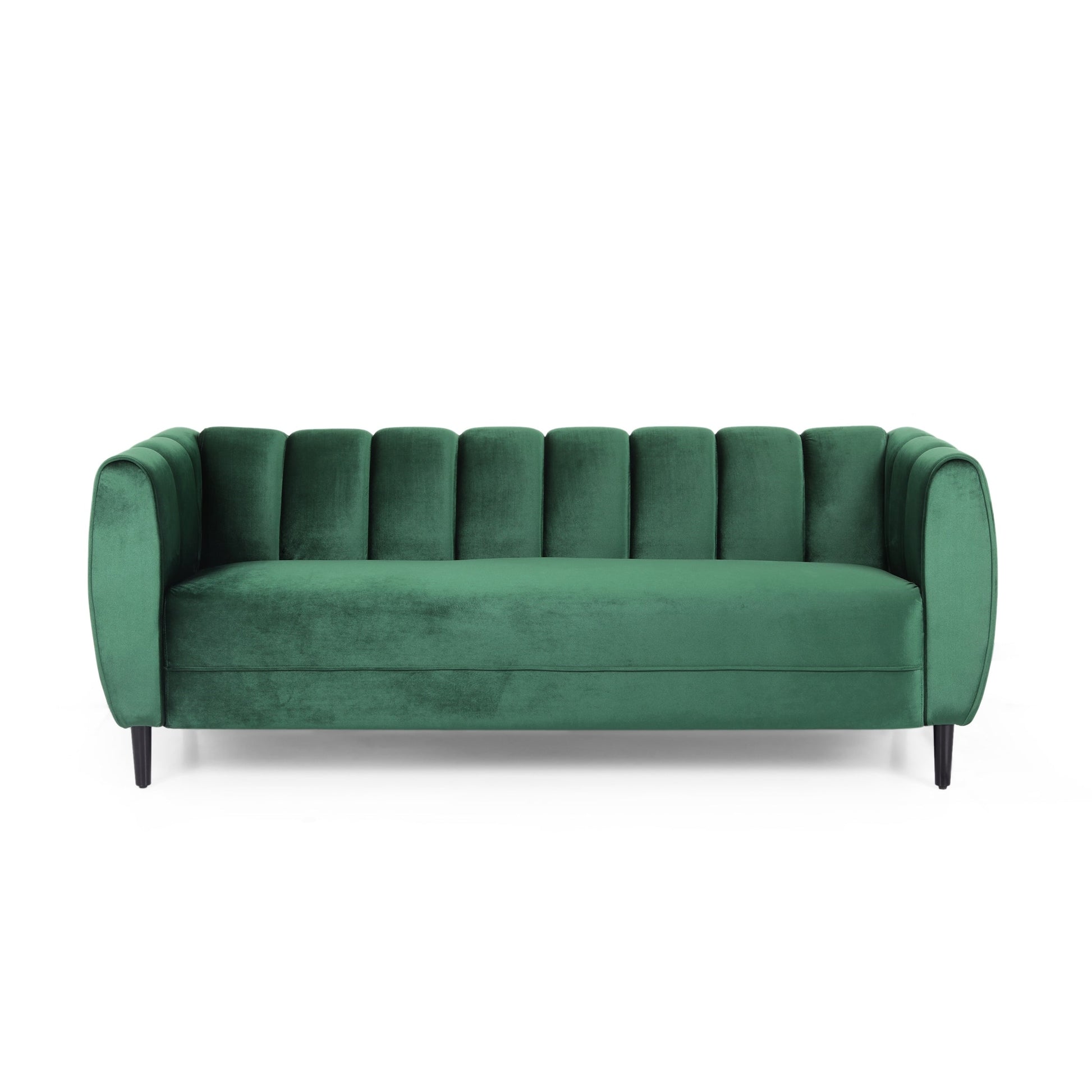 Center your living room around utmost sophistication and charming style with our exquisite sofa. This three-seater sofa offers your interior space eye-catching aesthetics with its deep channel stitching and soft velvet upholstery, making this piece a perfect modern glam addition to any room. Finished with sleek tapered legs, this piece not only secures your decor in refined elegance but it also provides incredible relaxation for all. From cozy movie night gatherings to casual conversations, our sofa will have you anchored in style.