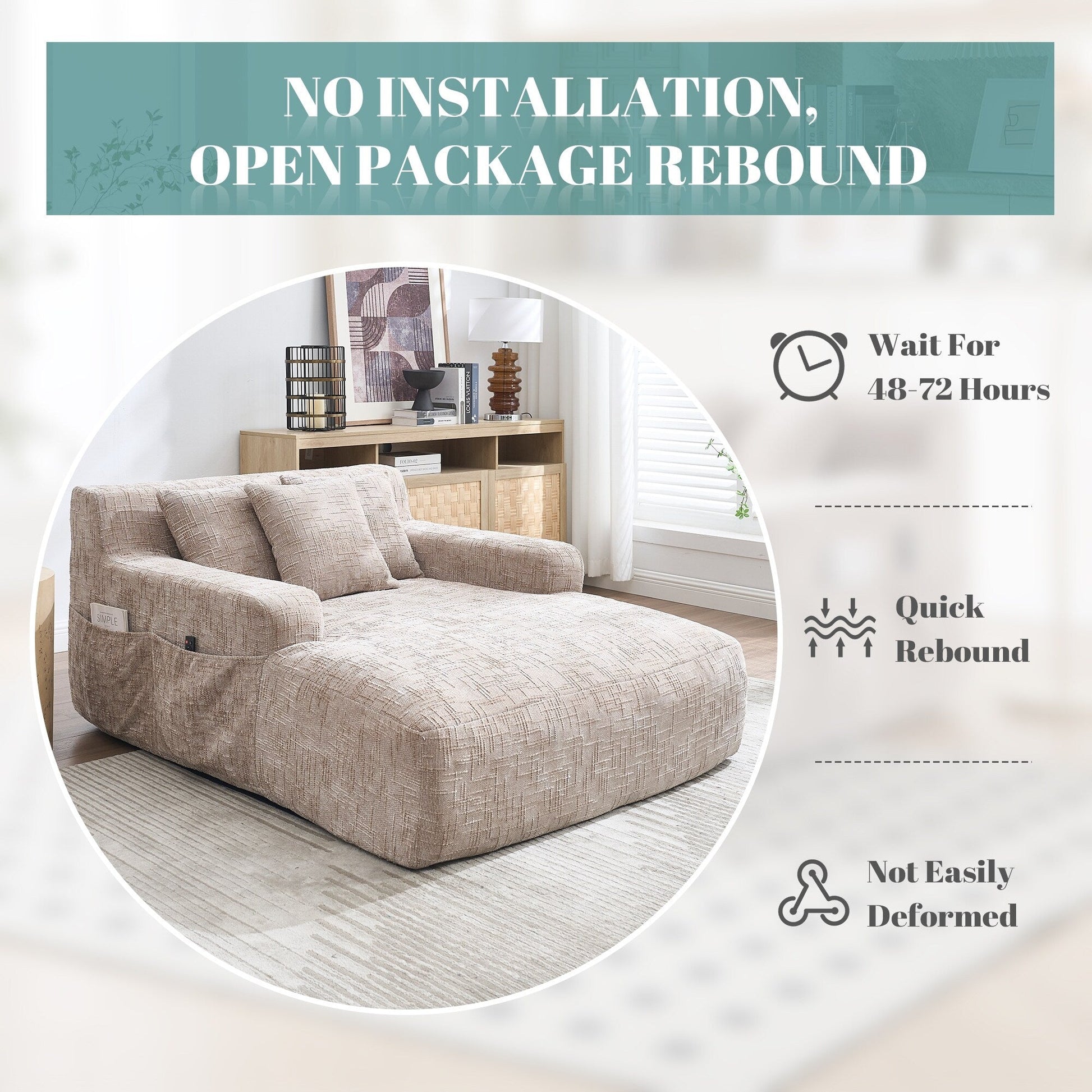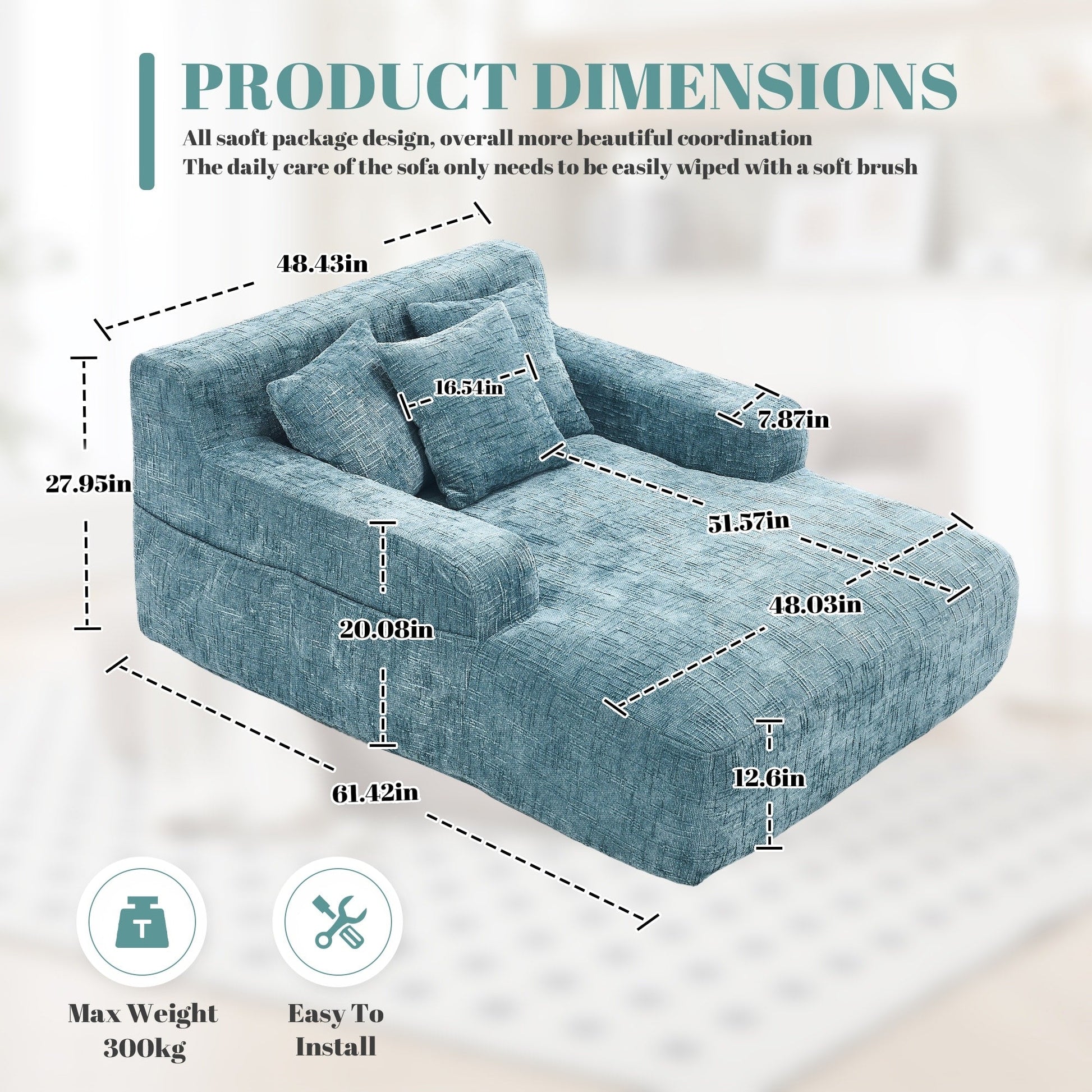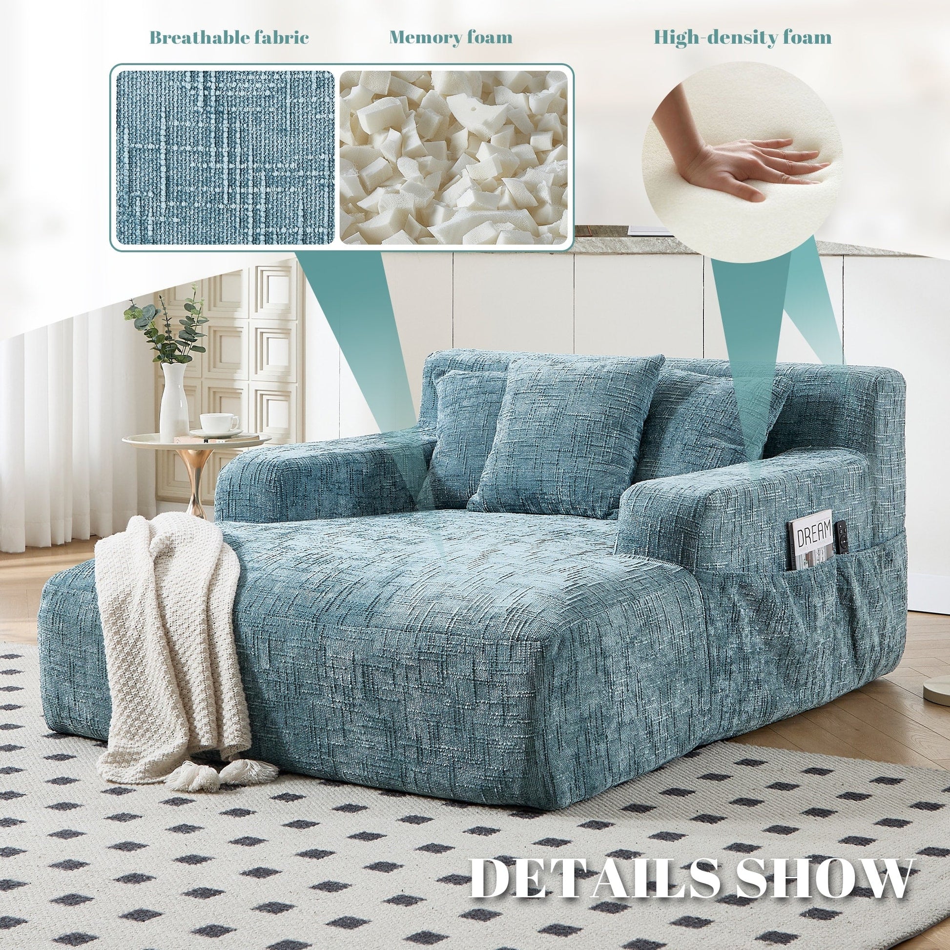 Chenille Lazy Sofa Chaise Lounge with Pillows - Convertible Armchair with Armrests, Multi-Position Sleeper for Living Room