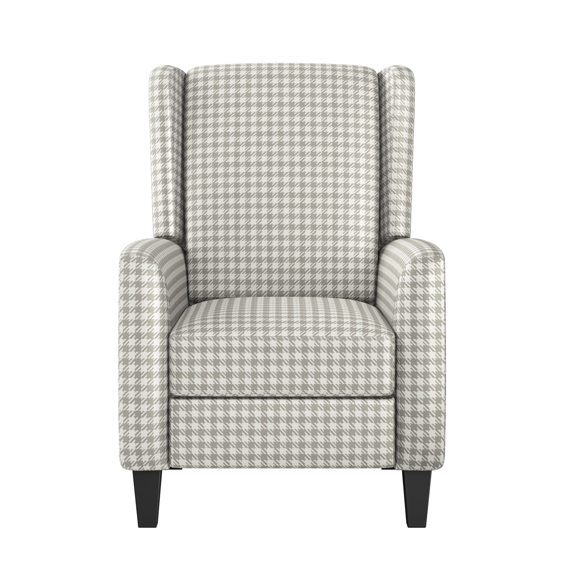 This 2-position pushback recliner offers a modern update on the traditional wingback armchair. The recliner features a square back and square arms for a neat, tailored touch. The recliner offers soft, sink-in comfort, making this chair perfect for lounging in the living room, den or master bedroom.