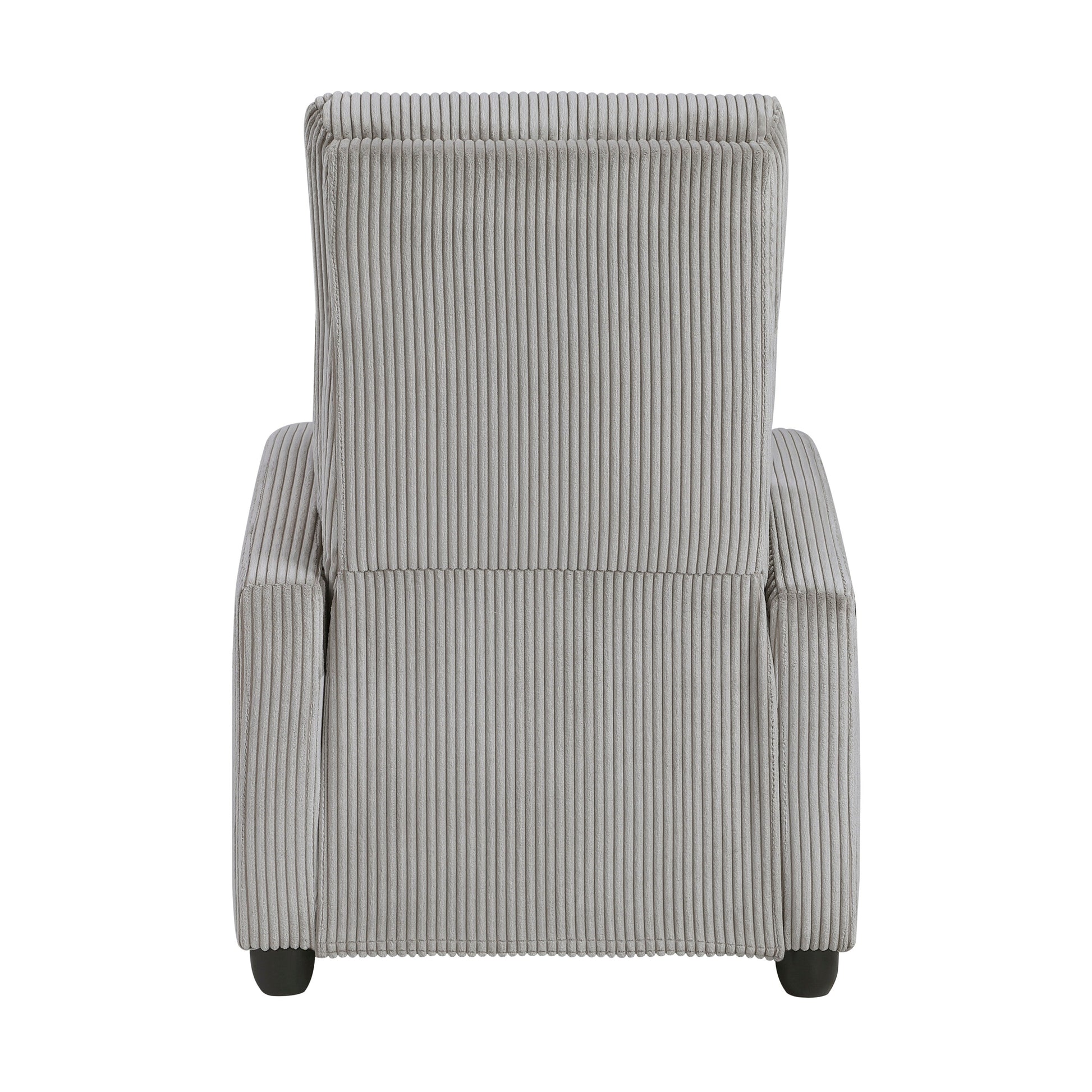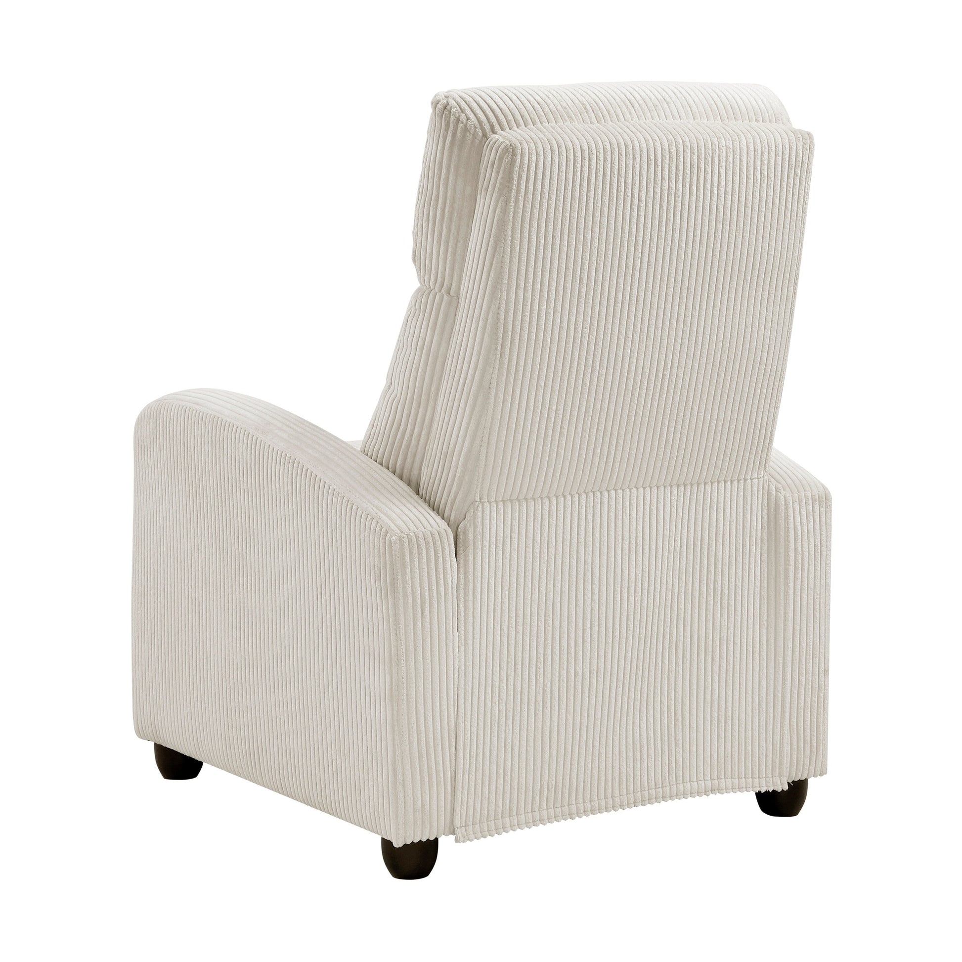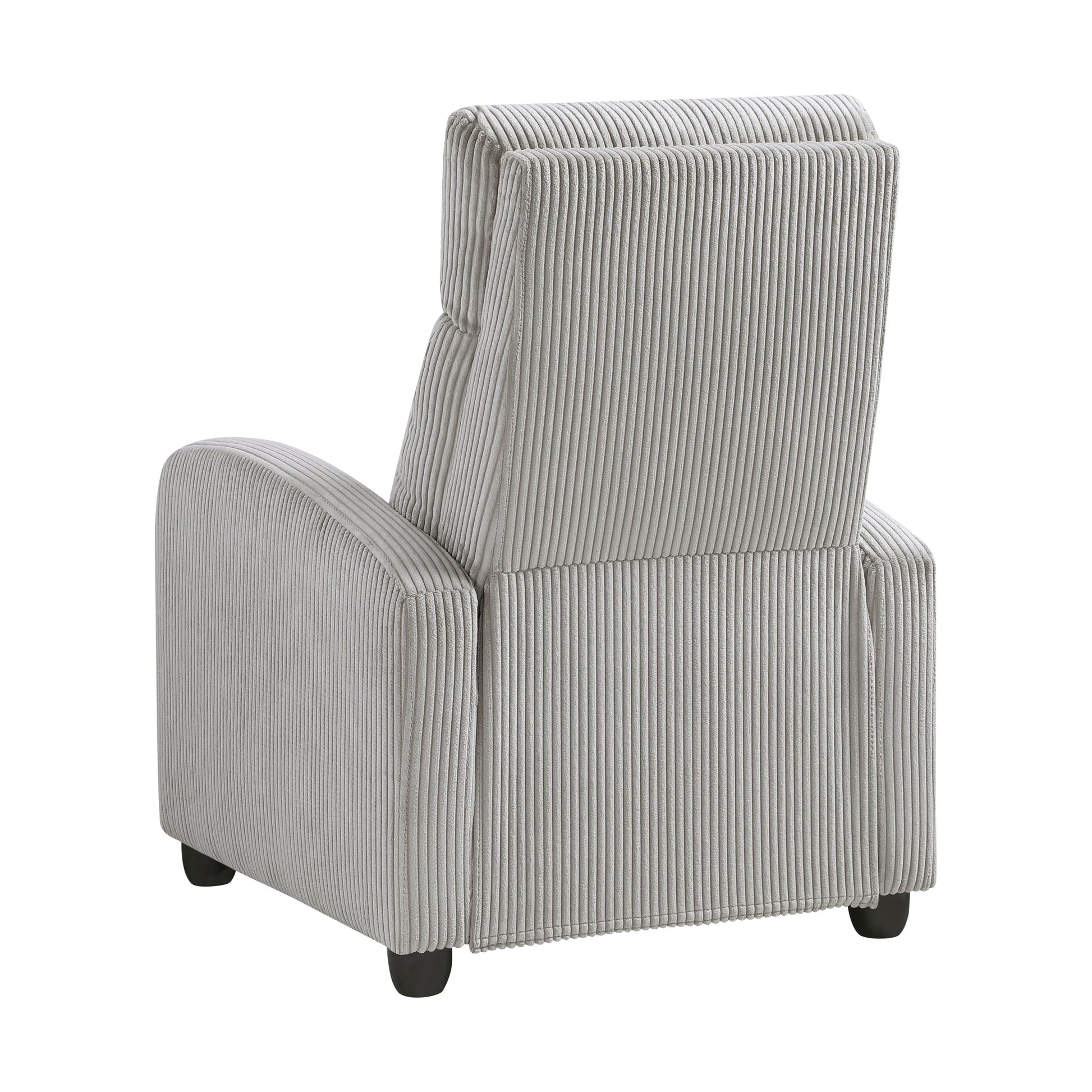 Upgrade your comfort with this stylish Covelo Push Back Reclining Chair, upholstered in soft and durable corduroy fabric. Perfect for relaxing in any living room or den, this chair features a sleek design that seamlessly blends comfort and style. The push-back reclining mechanism allows you to easily adjust to your preferred lounging position, making it an ideal spot for reading, watching TV, or taking a nap. Its neutral color complements a variety of décor styles, bringing both functionality and elegance to your home. This collection is available in a variety of colors, including beige, dark gray, green, light gray, midnight blue, and yellow.