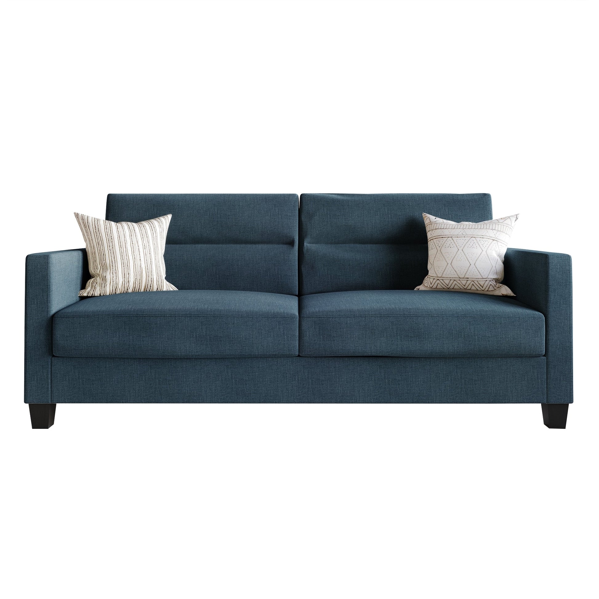 Upgrade the overall look of your living room with this sleek and modern sofa. With its generous dimensions, this sofa provides ample seating space, accommodating multiple individuals or allowing you to stretch out and relax in utmost comfort. This elegant piece not only provides a cozy spot to unwind but also enhances the overall aesthetics of your living space. Delicate stitches on the backrest maintain the sofa's unassuming design, making it a versatile addition to any interior. Upholstered with 100% linen fabric, this sofa is both easy to maintain and incredibly durable. Crafted with a sturdy frame, high-quality materials, and supported by sturdy plastic legs, it's built to withstand the test of time. The sofa features high-density foam padding, ensuring an exceptionally comfortable seating experience. Choose from a selection of elegant colors, including Beige, Dark Beige, Grey, Light Blue, and Blue, to complement your decor. Assembly is a breeze, and the sofa conveniently ships in one box, simplifying the setup process. Unwind in style and comfort with our Clean and Minimalist Sofa.