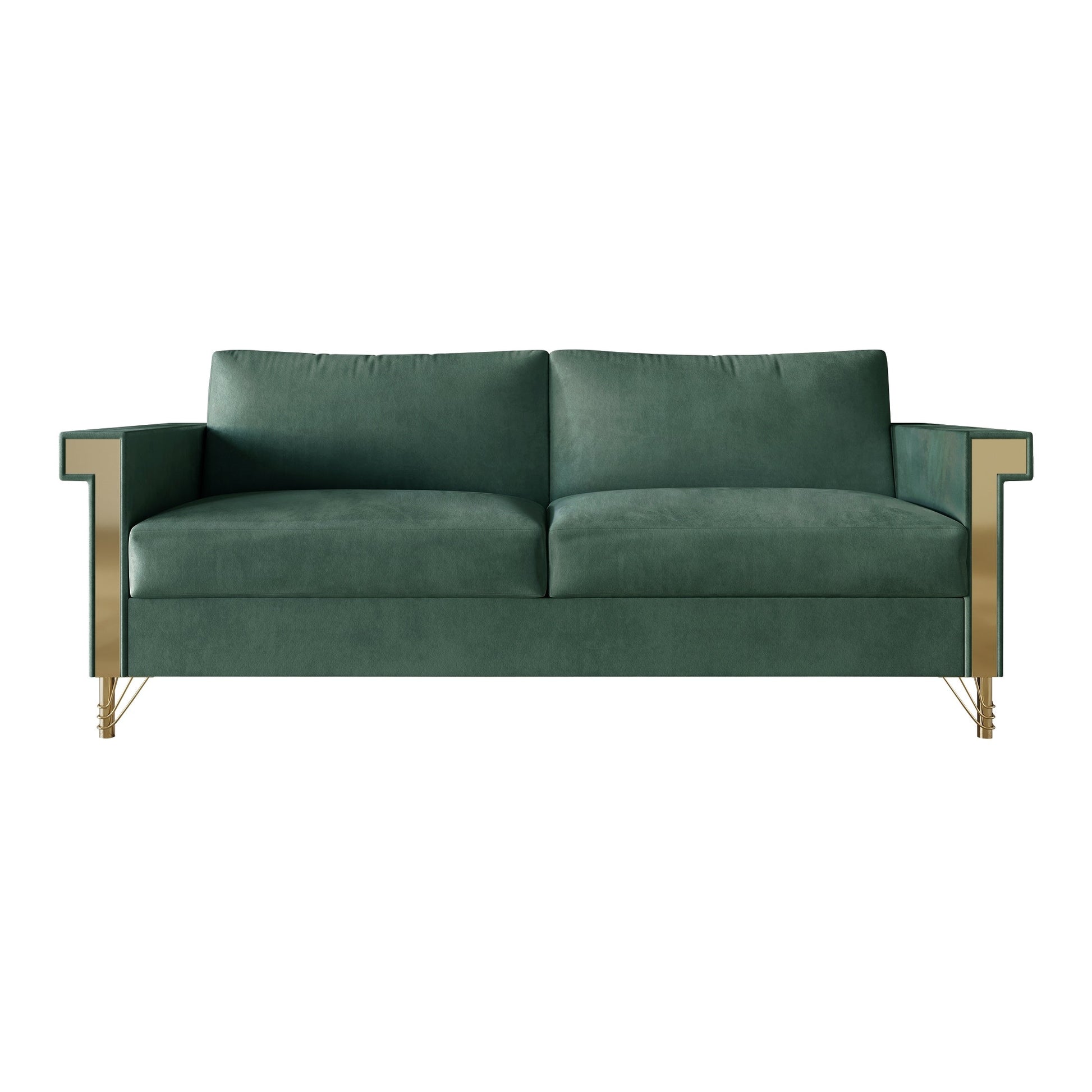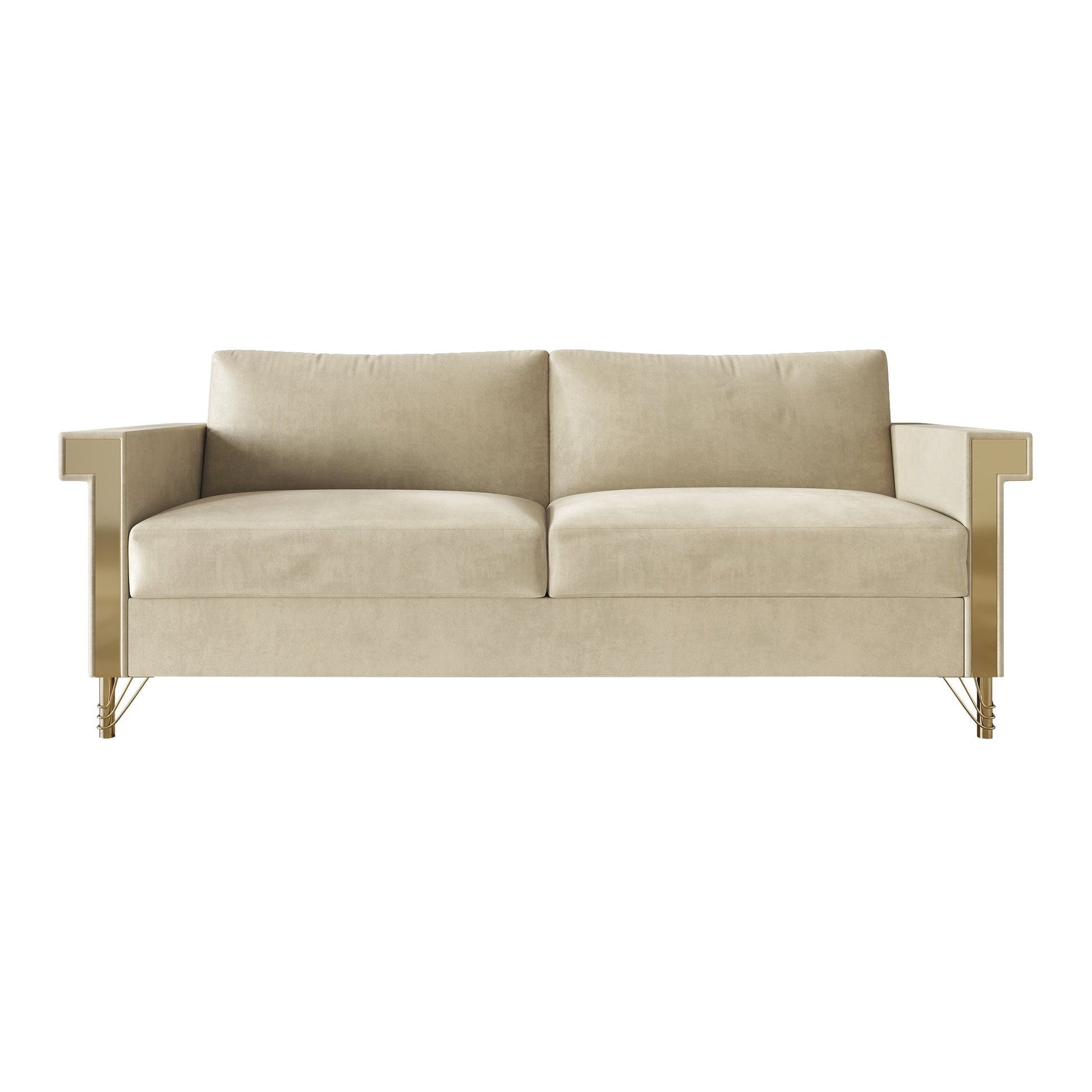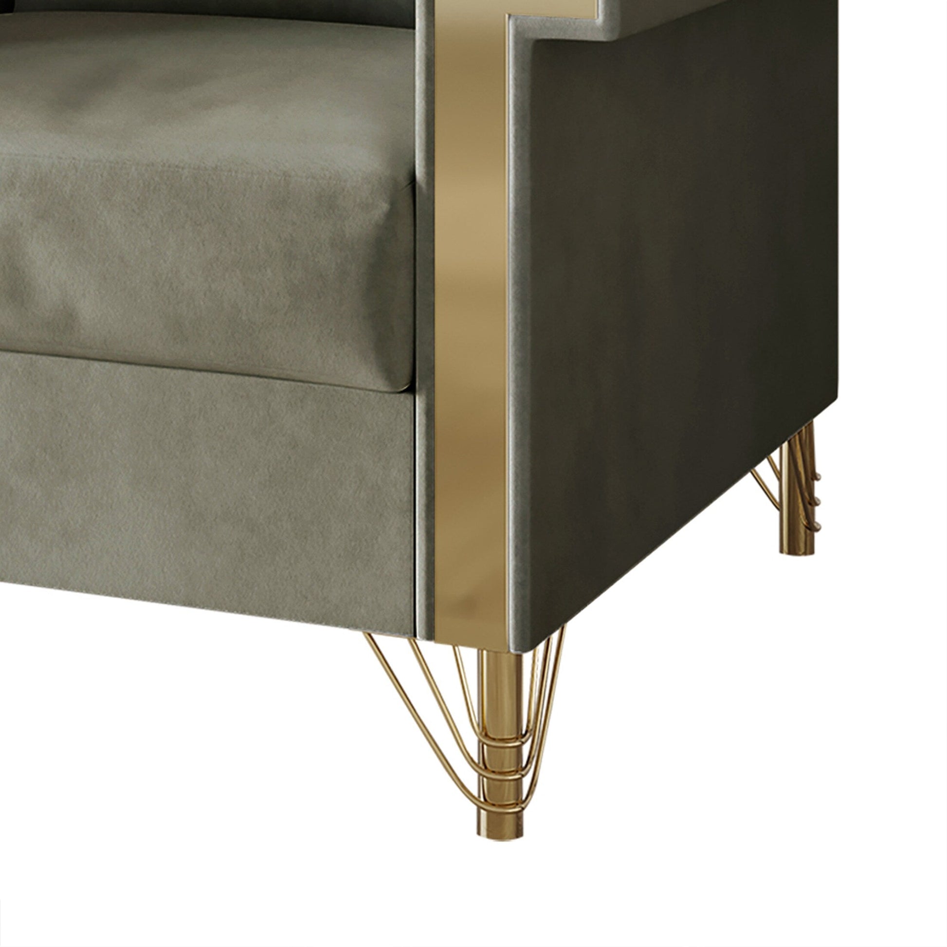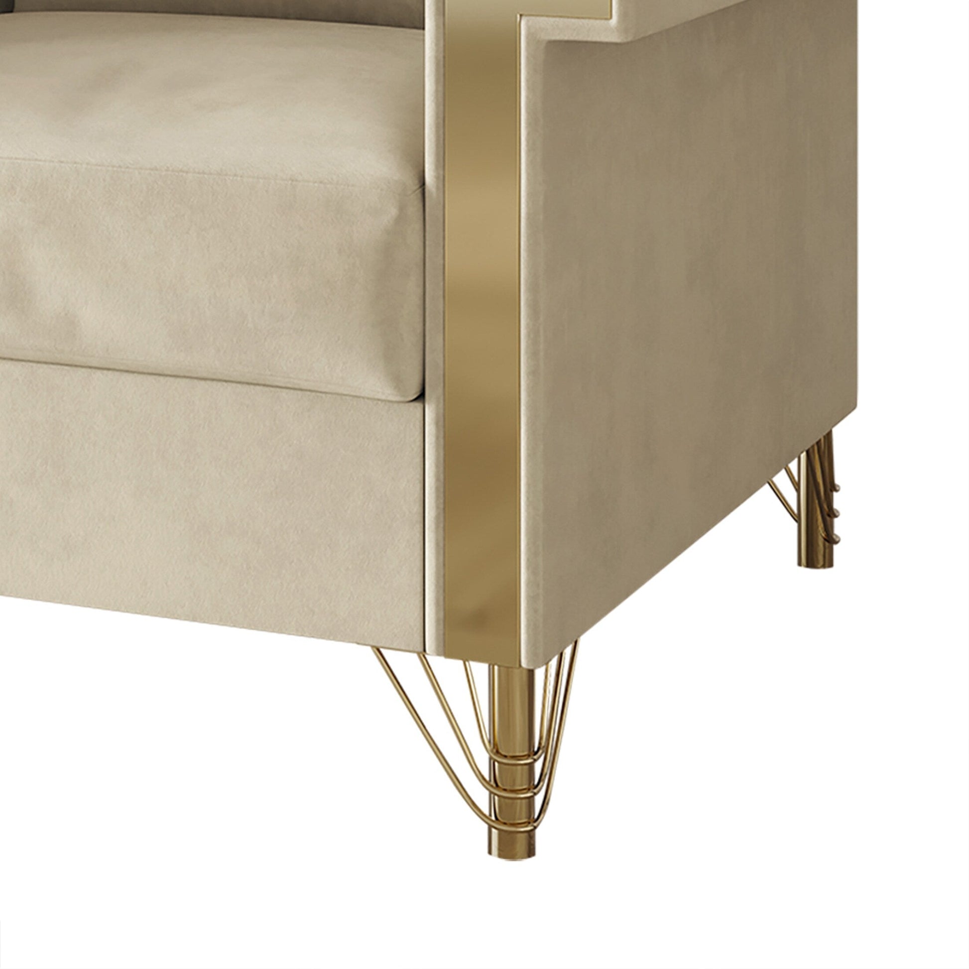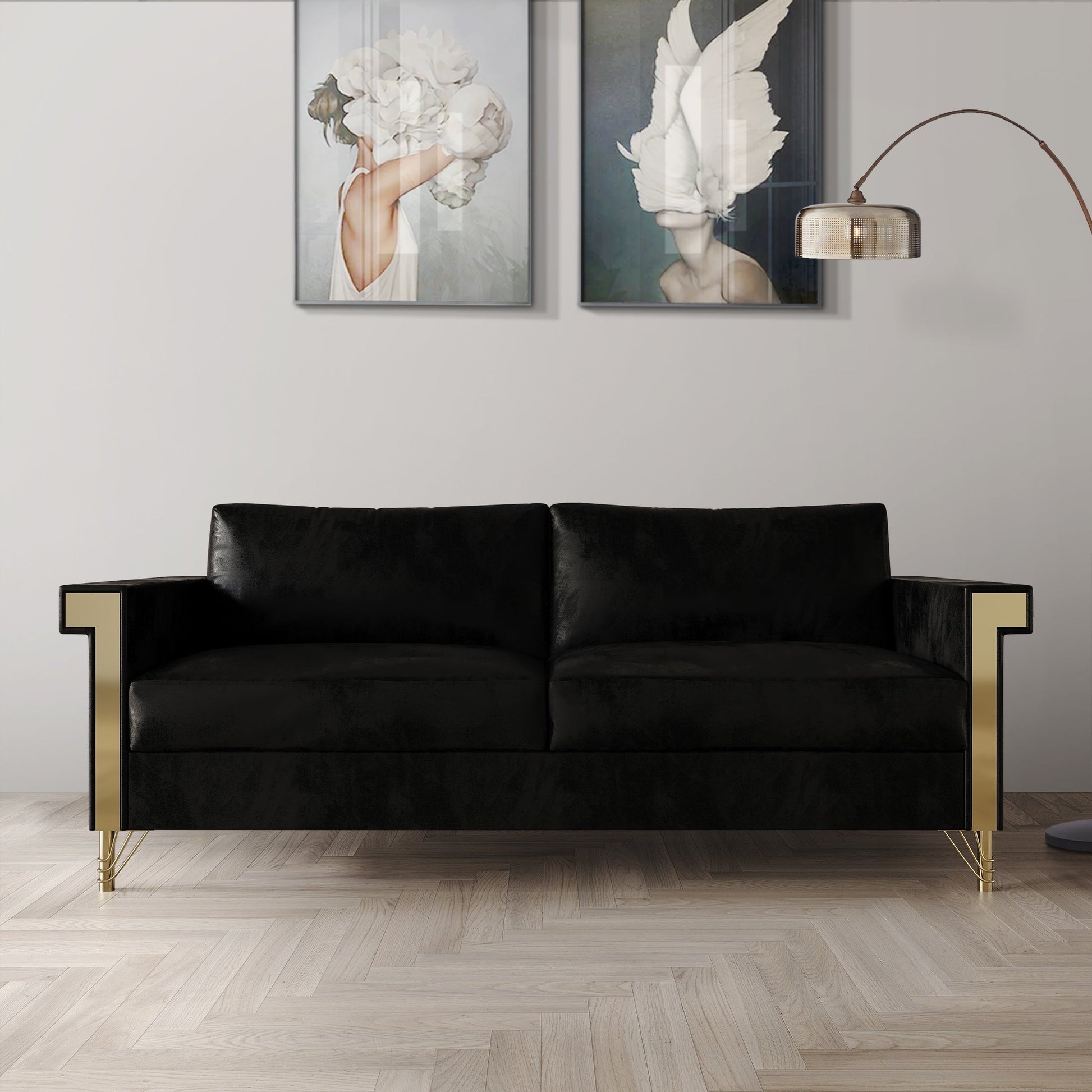 Elevate your living space with our glamorous and luxurious upholstery sofa, the perfect fusion of opulence and comfort. The gold acrylic accents on the armrest introduce an air of luxury and sophistication, while the sturdy gold metal finish legs ensure both style and durability. Upholstered in 100% polyester shiny velvet, it offers a comfortable and relaxing seating experience. The foam-padded cushioned seat and backrest provide exceptional comfort, creating an ideal spot for relaxation. The 2.5-seater design strikes a harmonious balance between compact size and generous seating, making it versatile for smaller living spaces. This exquisite addition can transform any room into a cozy, stylish, and inviting nook for relaxation and style, it's available in a range of captivating colors to match your personal style. Conveniently shipped in one box, with easy assembly required. Note: Essential assembly components may be concealed within the furniture (e.g. beneath sofa cushions). Please check all compartments, including zipped areas, to locate all parts before assembly.