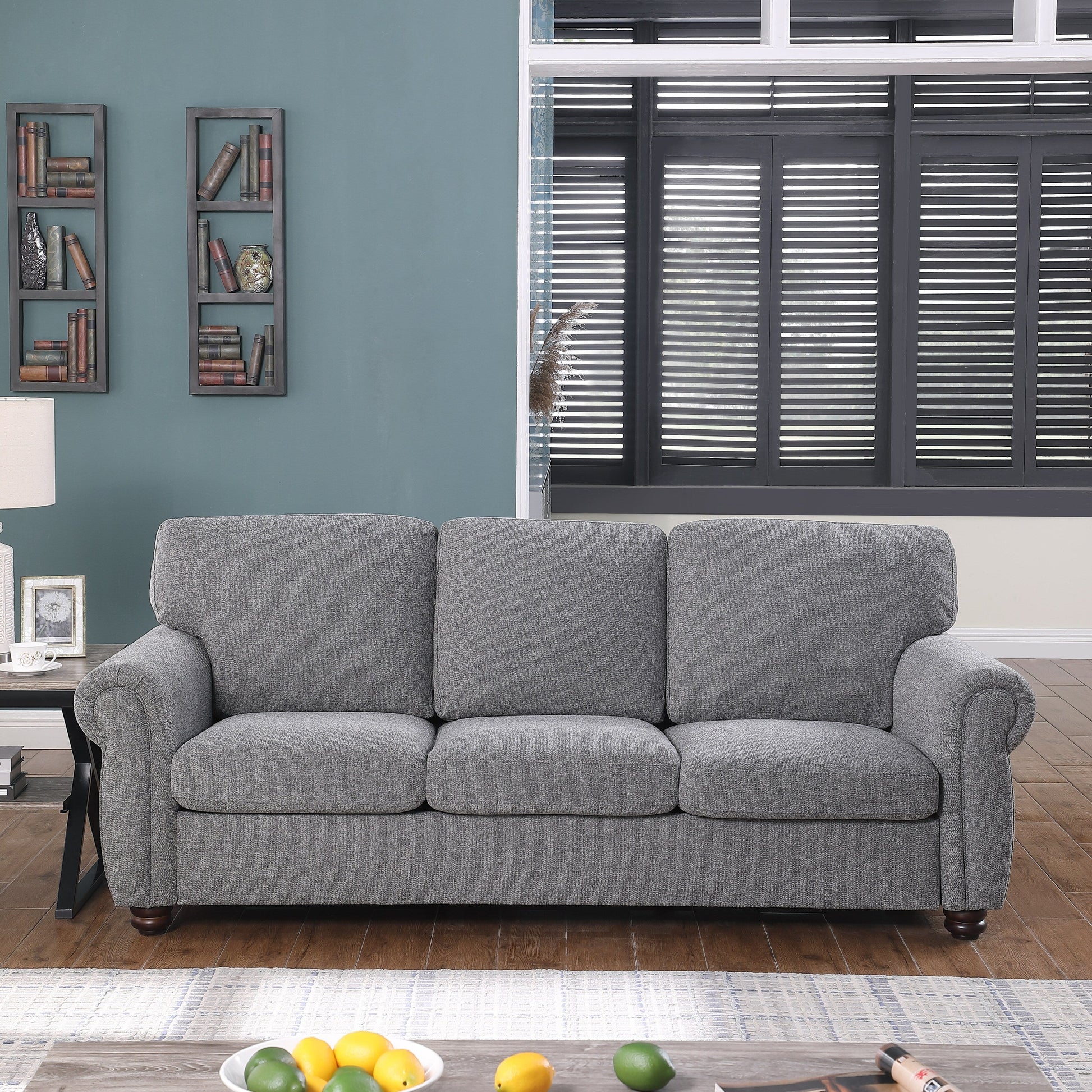Dark Grey Soft Chenille 3-Seat Sofa with Solid Wood Frame - 34.40 x 84.60 x 33.85