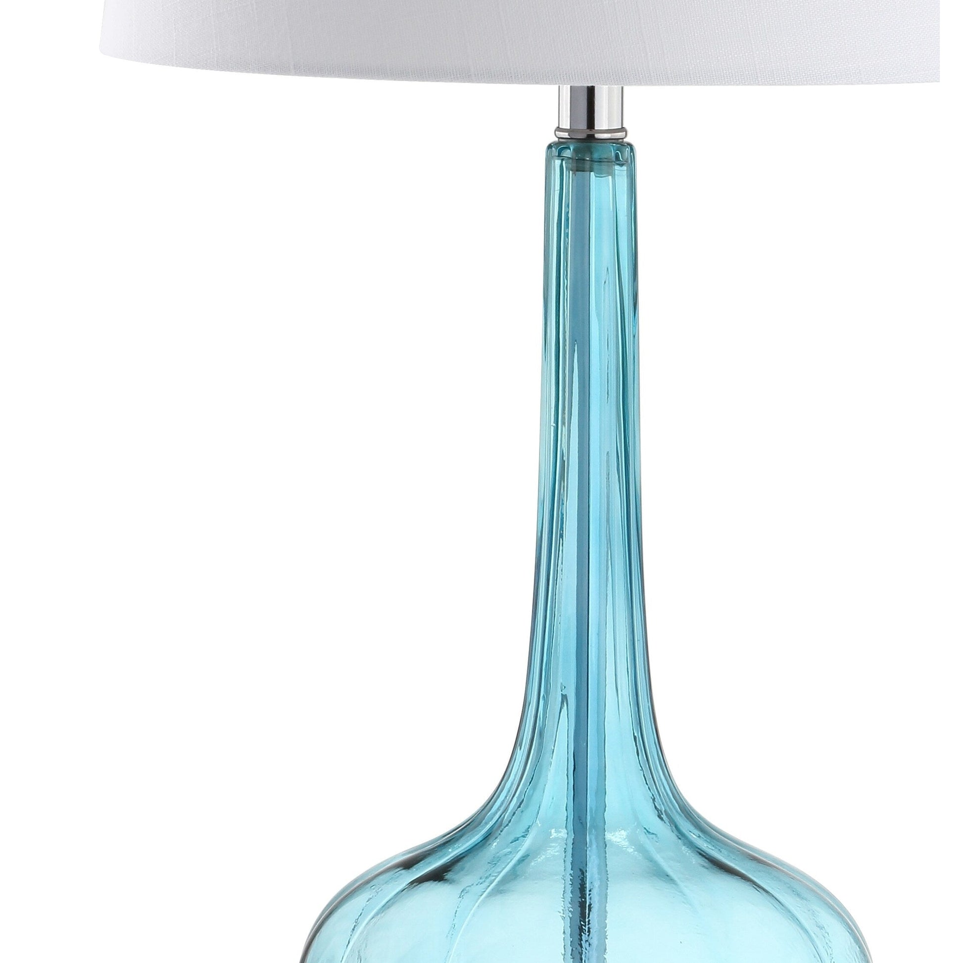 Add a pop of color to any room with this set of two Diamante 28.5' Glass Teardrop LED Table Lamps in pink by JONATHAN Y. The classic glass style and oversized drum shade make these lamps a versatile choice for any space. Perfect for bedside reading or as statement pieces on a console, the lamps feature a silk-wrapped cord and eco-friendly LED bulbs.