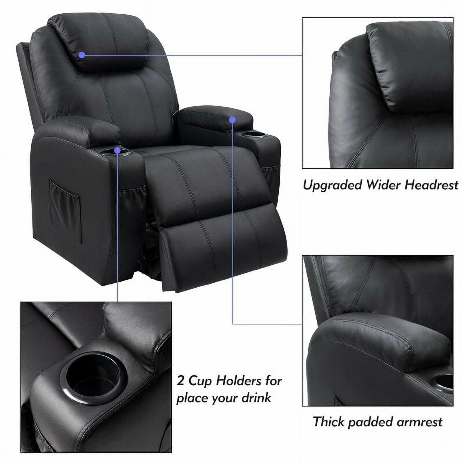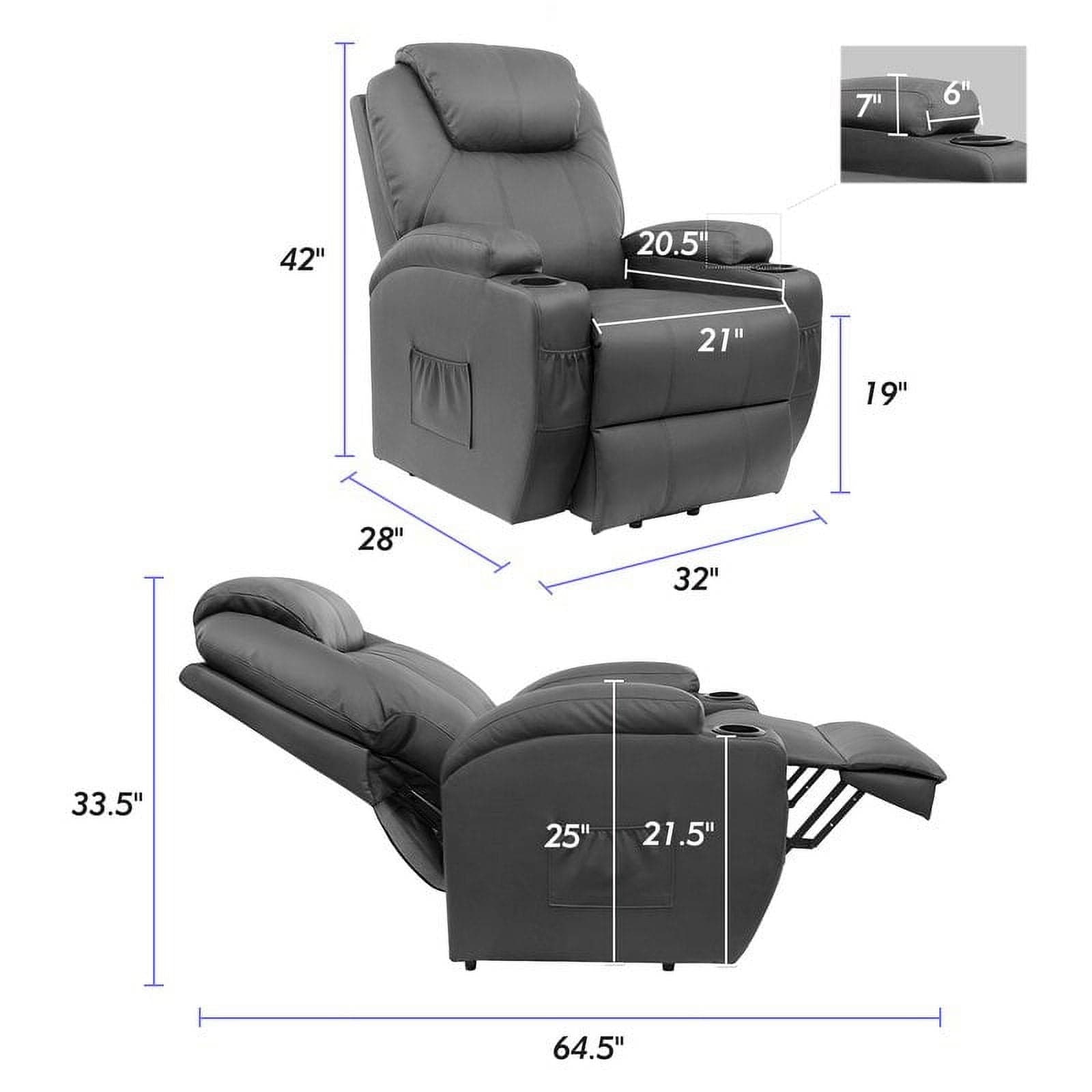 The Furniwell recliner brings you a comfortable experience, it has a wealth of features, eight-point massage and heating device to relieve your fatigue and relax your body. With a tilt of up to 160 degrees, you can sleep in this recliner. Wide seats and armrests with oversized side pockets for remote control. This recliner can give you an unparalleled experience.