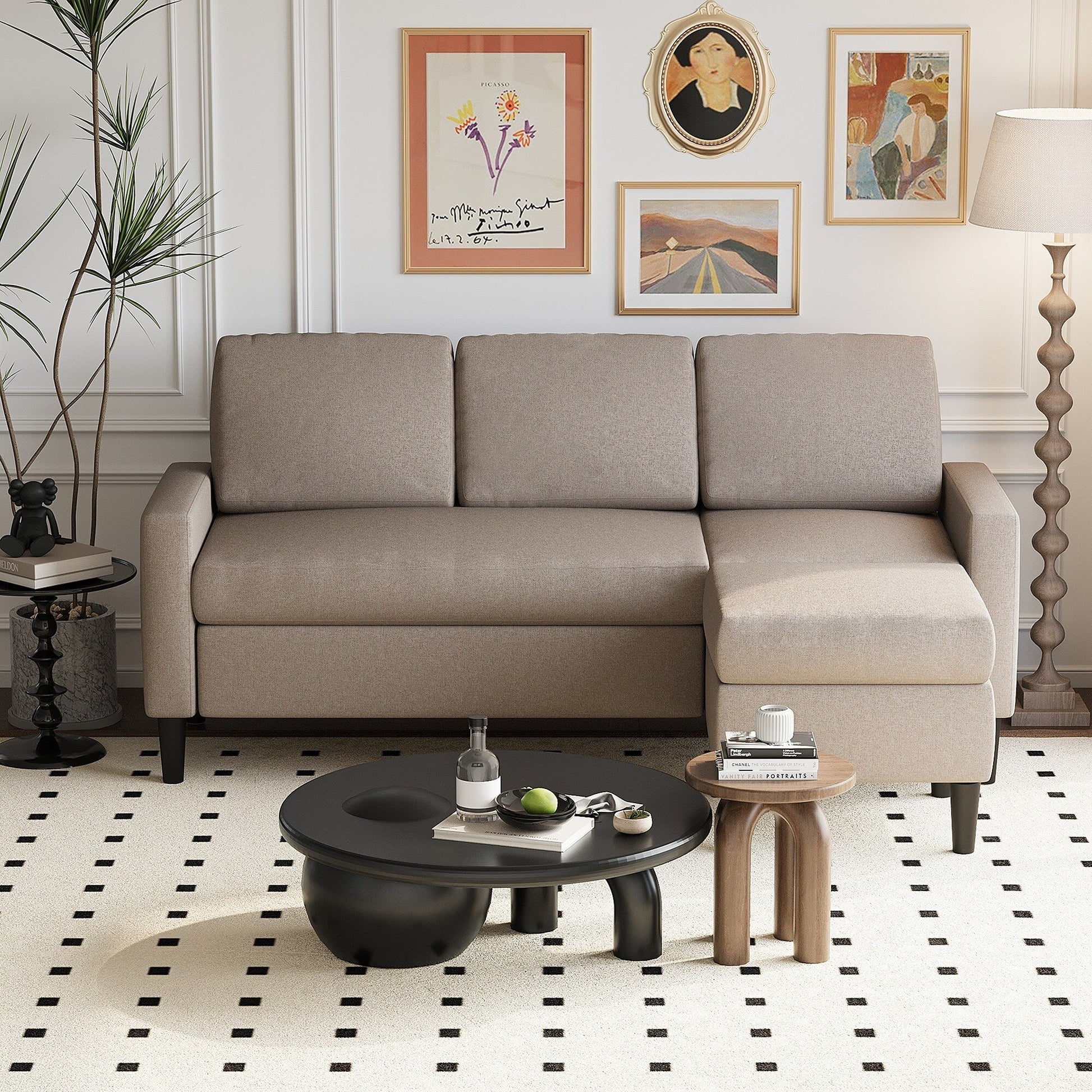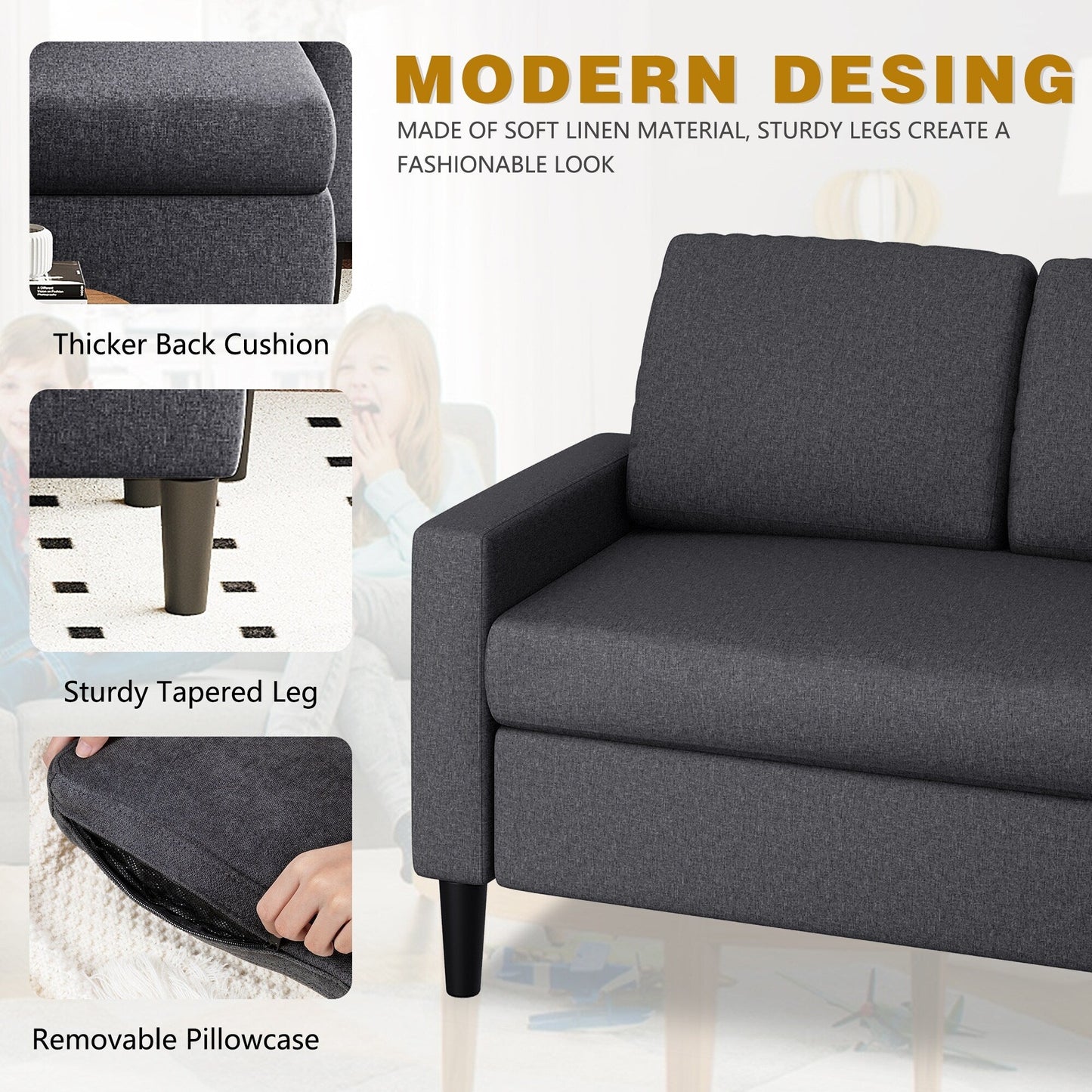 Comfortable sectional sofa: Modern breathable fabric, solid wood frame, breathable and stable. High-density foam and thickened cushion provide comfort and durability. You'll never have to worry about sinking in. The more you sit in it the better.