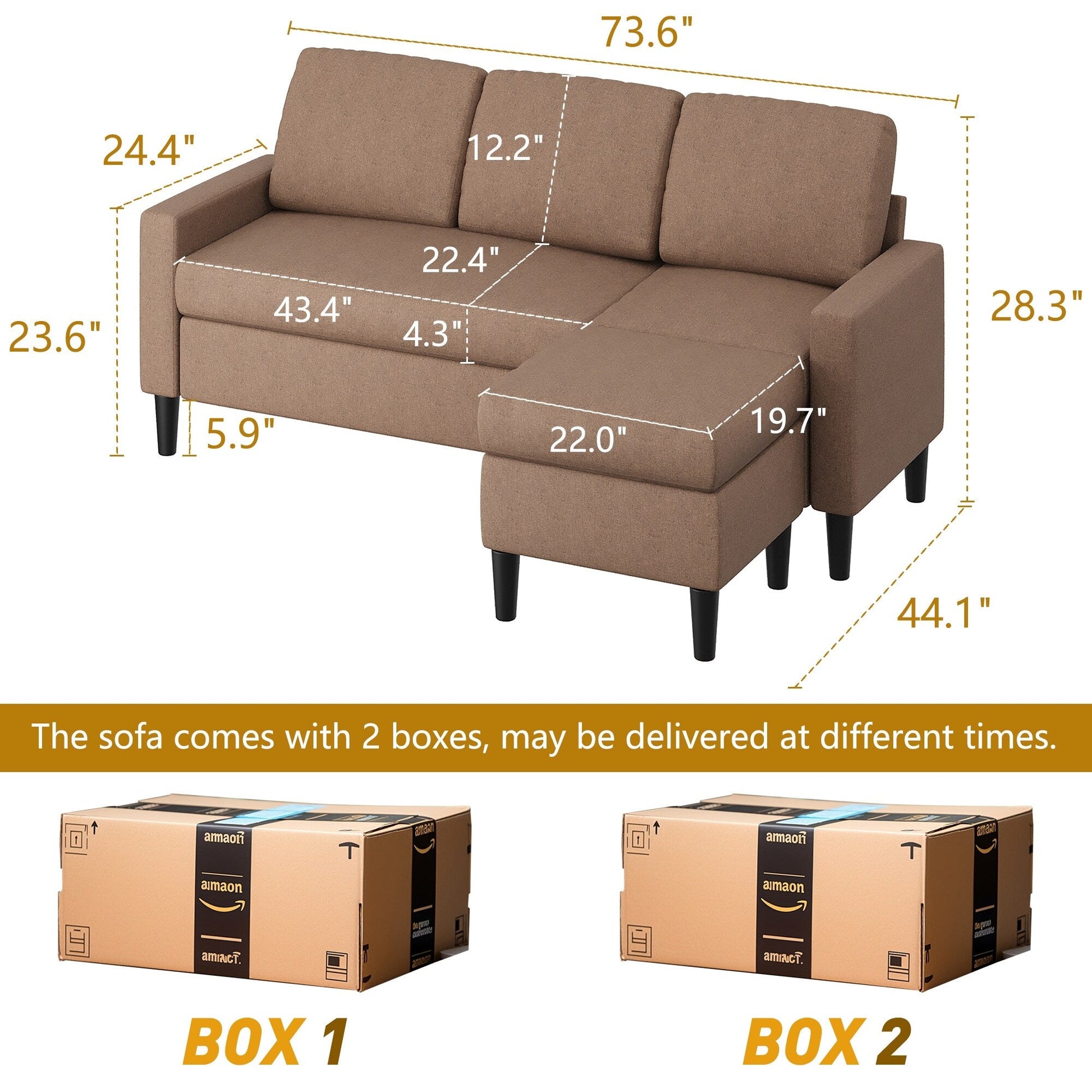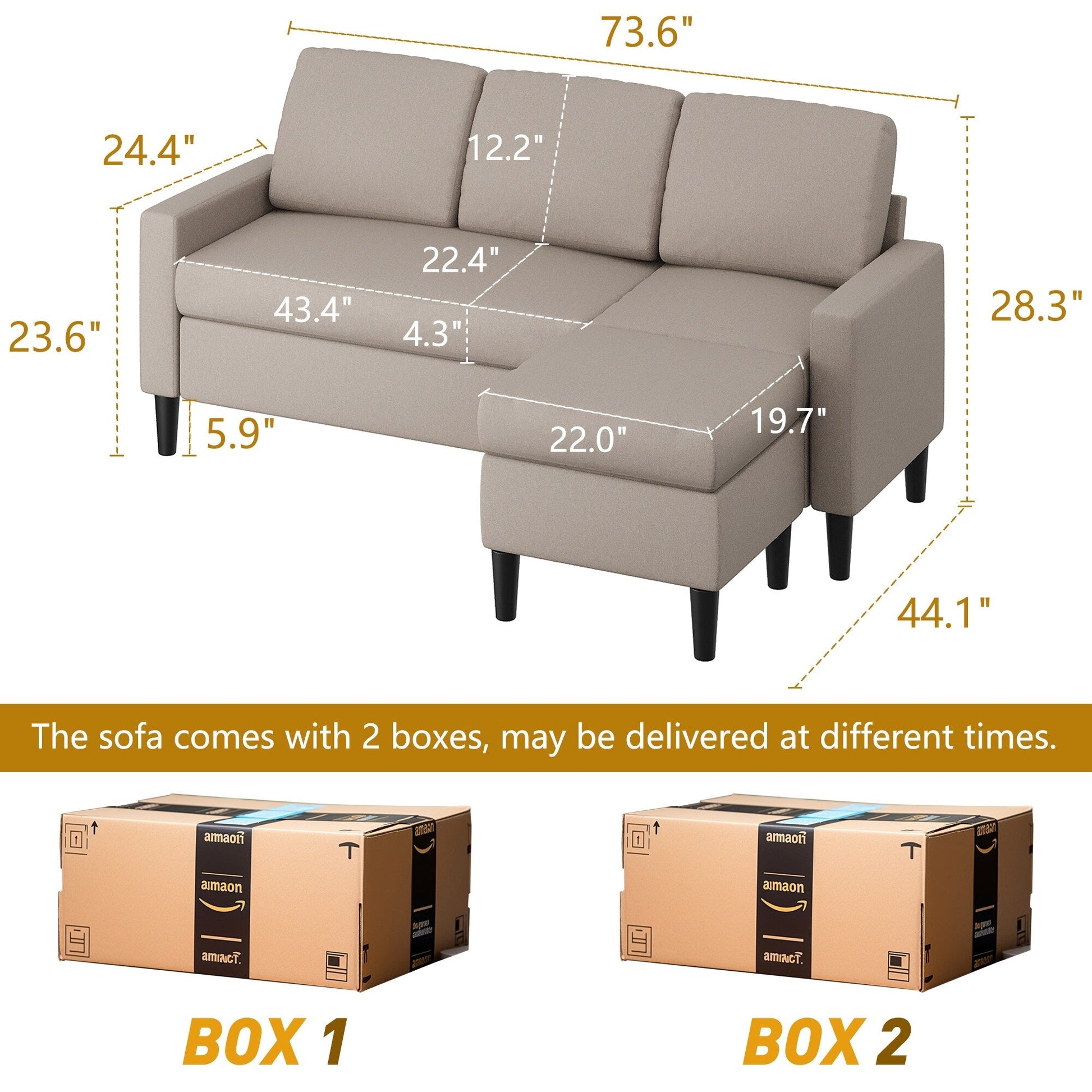 Convertible Sectional Sofa: The sofa is equipped with a long cushion, which allows you to custom the shape of sofa according to you demands. So you don't need to worry that the sofa is not suitble for your room. The item will be deliverd in two packages.