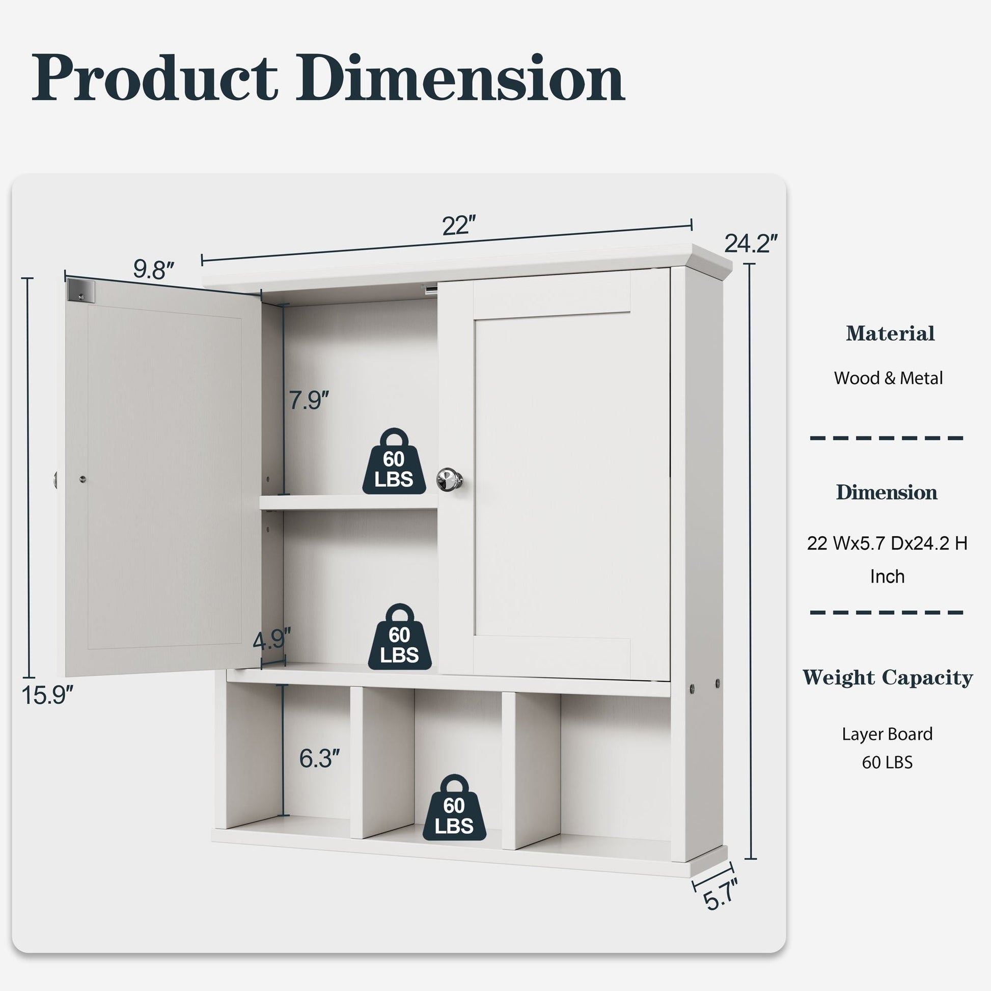 ● High-Quality Material: Crafted from durable and beautiful MDF board, this bathroom wall cabinet features a waterproof water-based paint spray finish, making it ideal for bathroom use.
