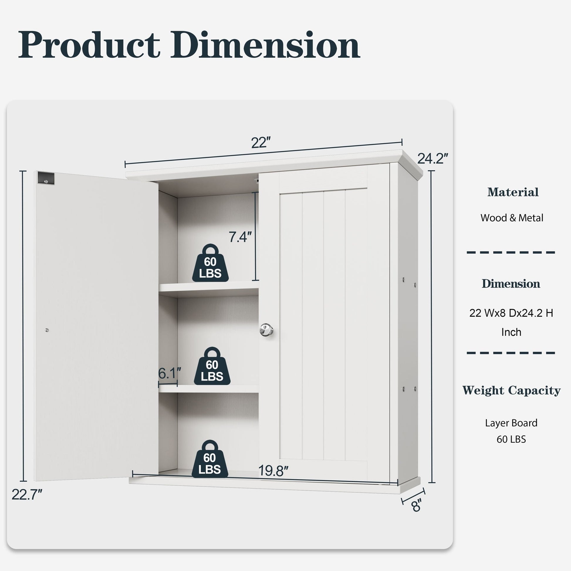 Futzca Bathroom Cabinet Wall Mounted, Storage Cabinet with Doors and Shelves