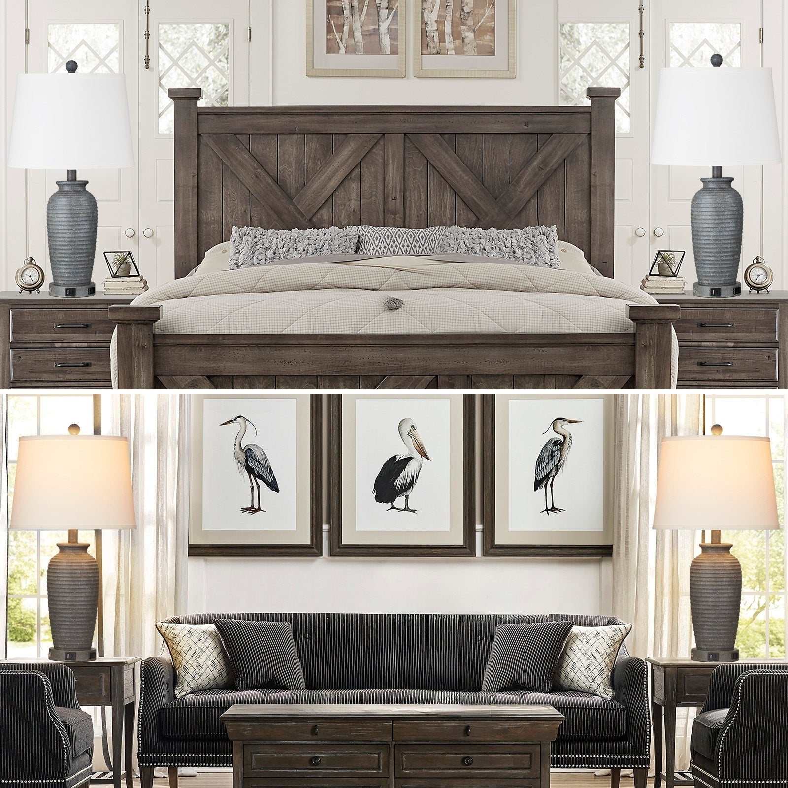 Grey Resin Table Lamps with 3-way Touch Dimming Switch USB Charging Port and AC Outlet (Set of 2)