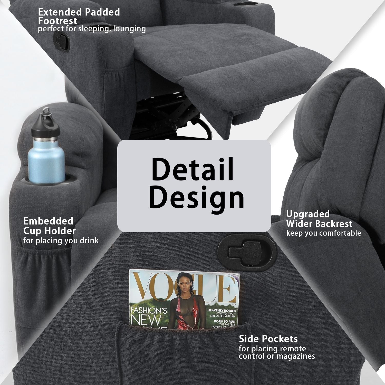 Homall Massage Recliner Chair Swivel Fabric Living Room Sofa