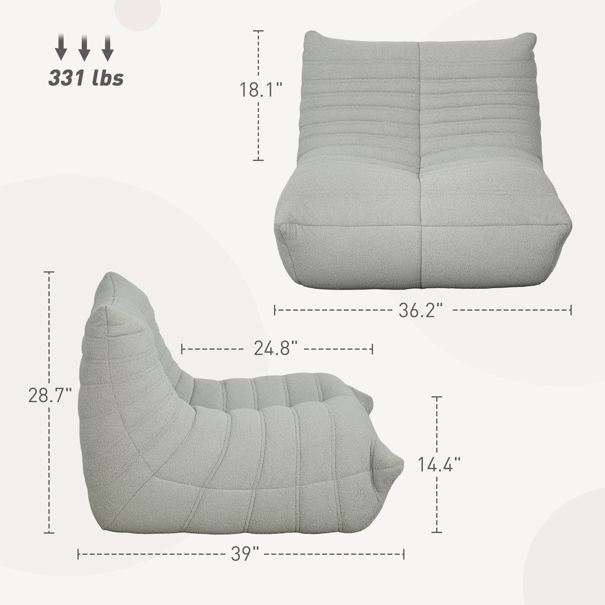 ● Seat Size: 36.2' W x 24.8' D x 14.4' H