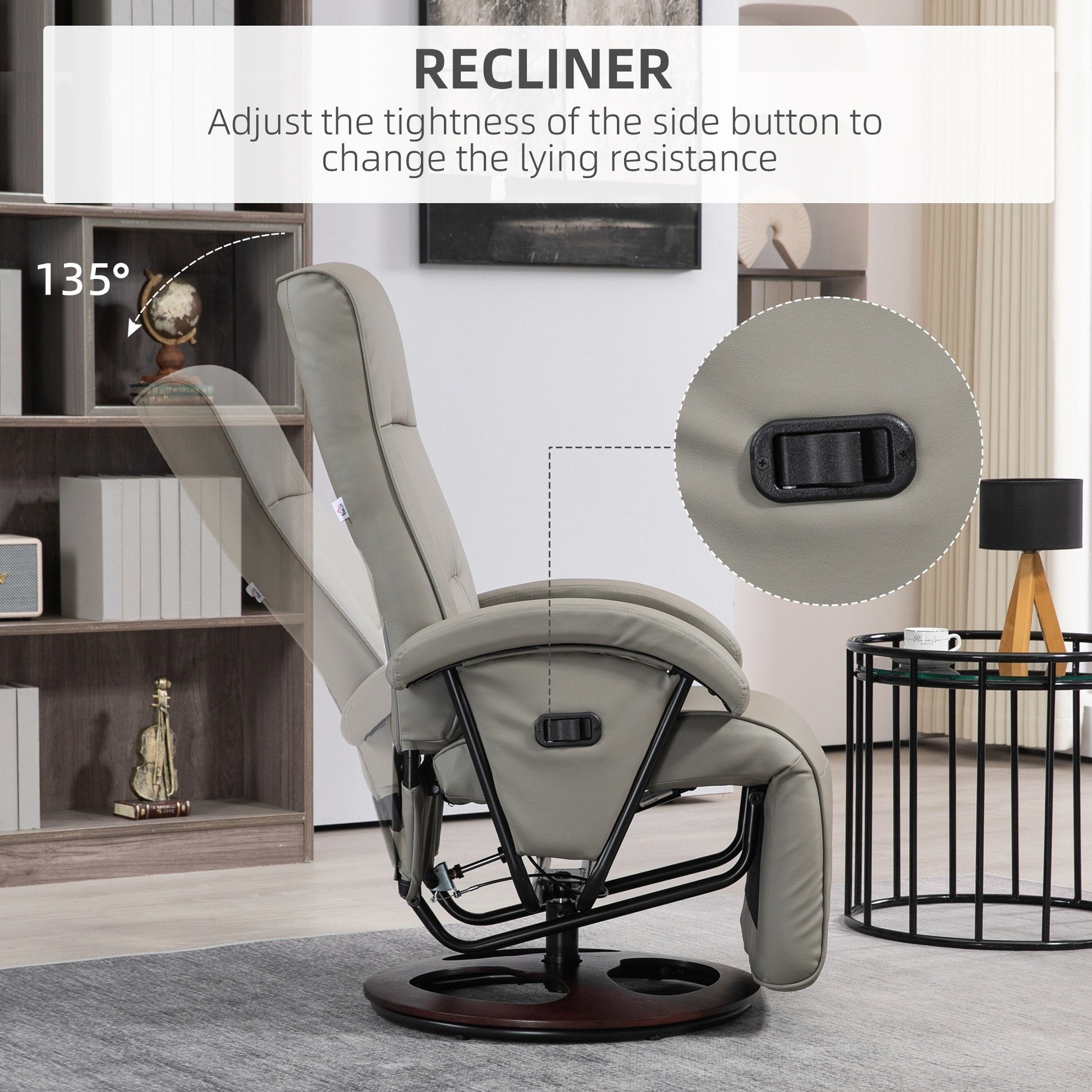 HOMCOM PU Recliner with Footrest, Lounge Chair with 135° Adjustable Backrest, Swivel Wood Base