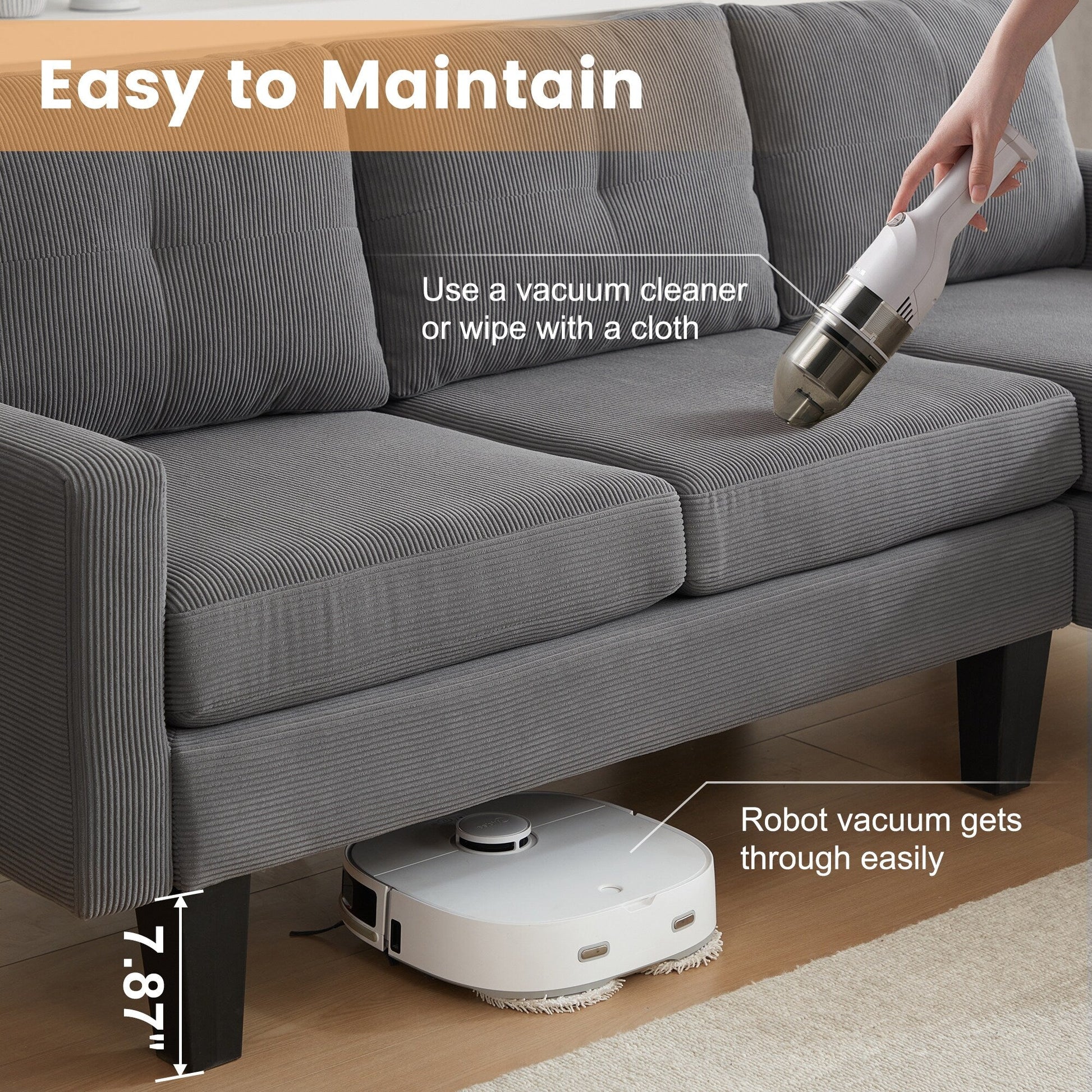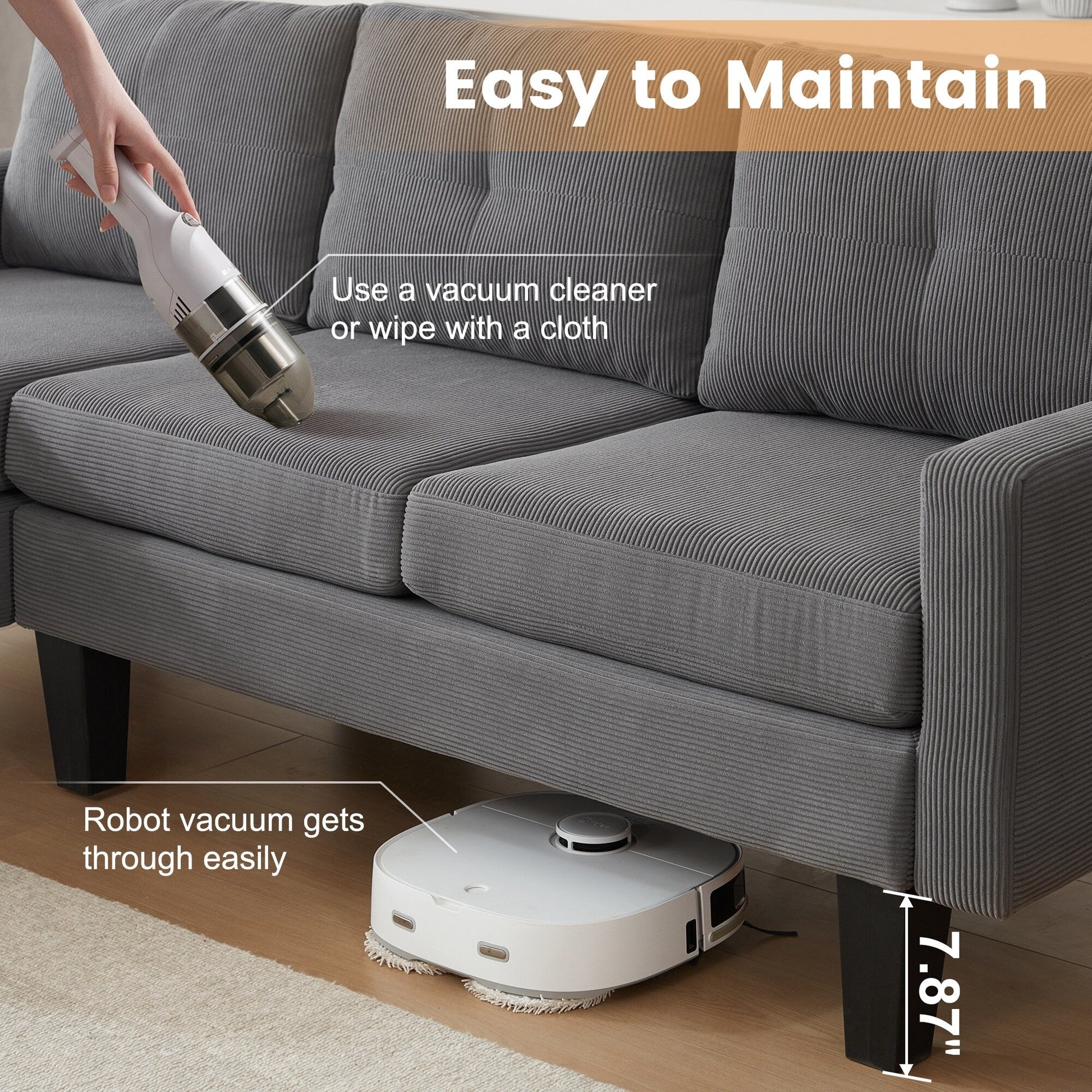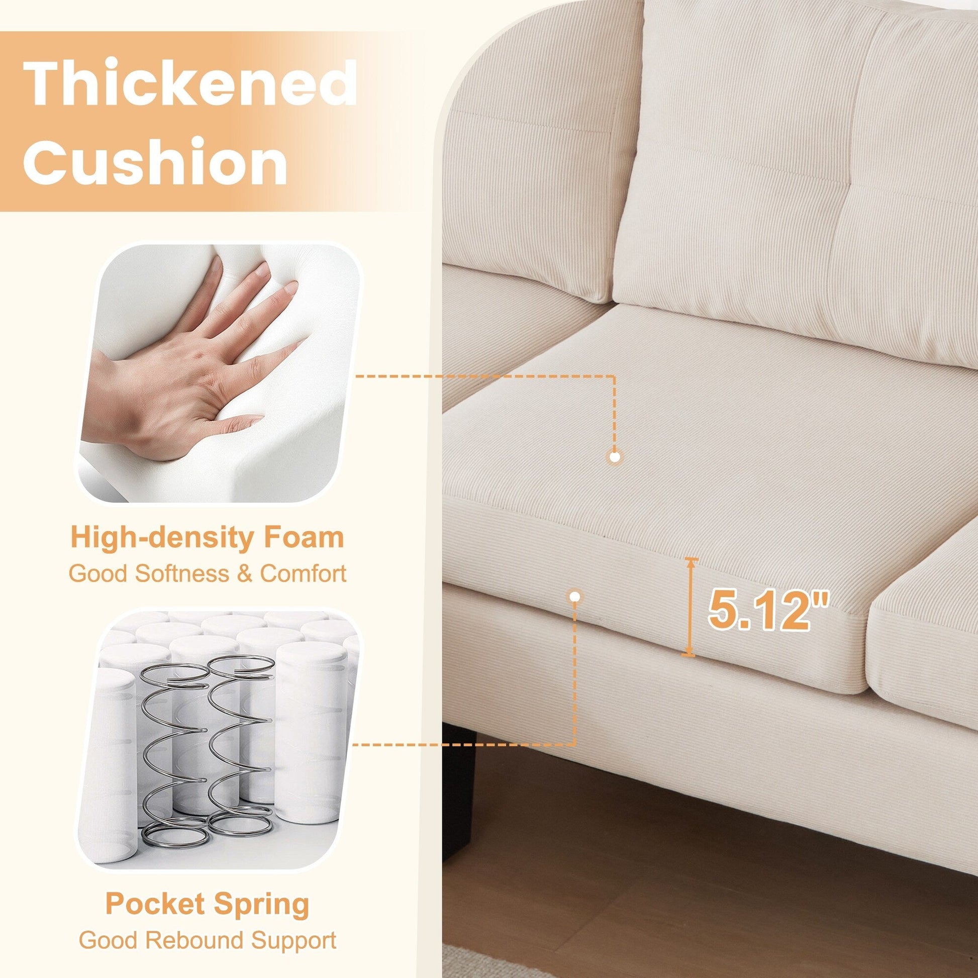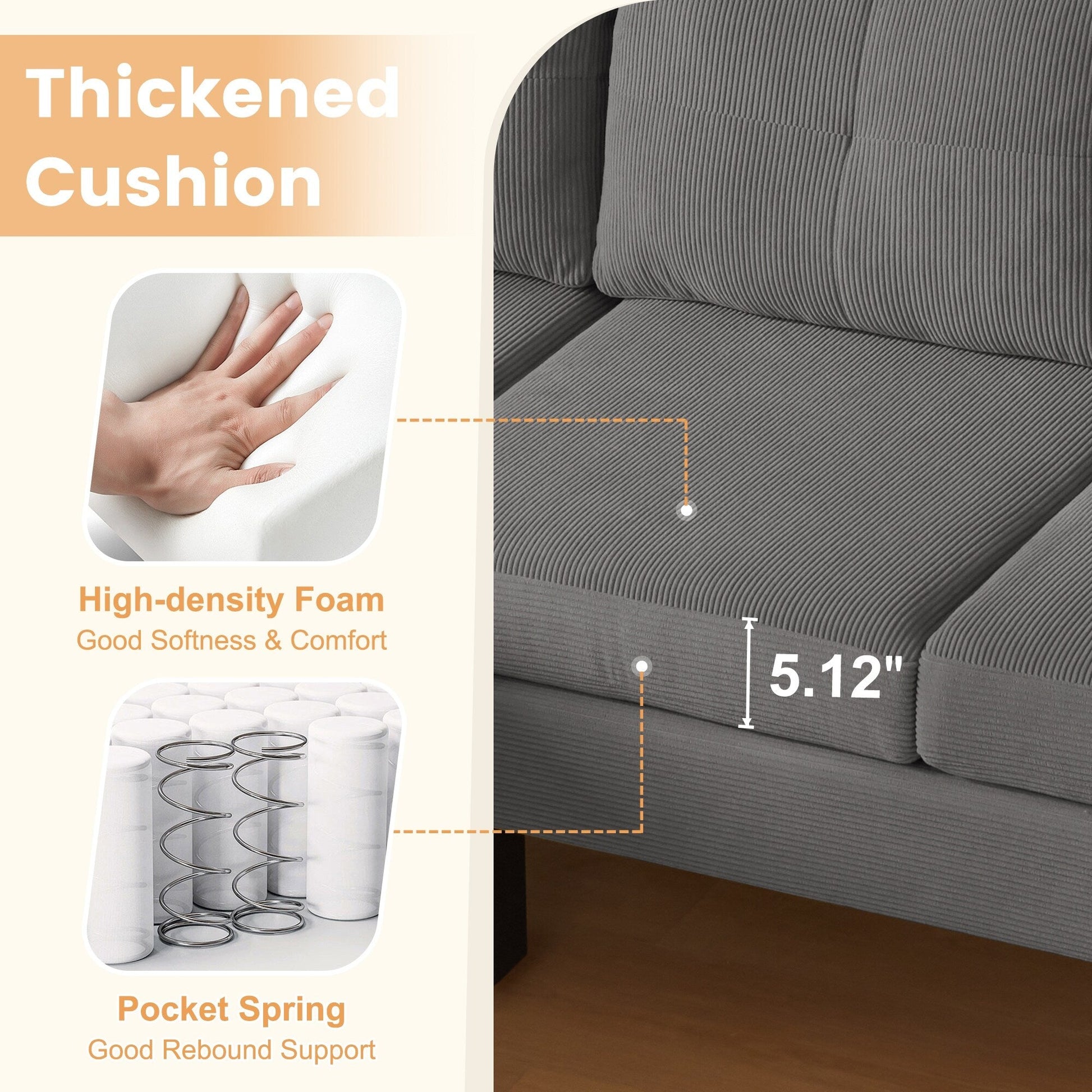 Indulge in luxury with HOOOWOOO Modern L-shaped Corduroy Fabric Chaise Sofa. Featuring a solid wood frame and square arm design, its modern and elegant look brings a natural, simple and elegant atmosphere to the living room. Additionally, this sofa is padded with high density foam provides enjoyable sitting experience, and covered in breathable and soft corduroy fabric adds both style and practicality, perfectly making you enjoy leisure time with friends and family till midnight.
