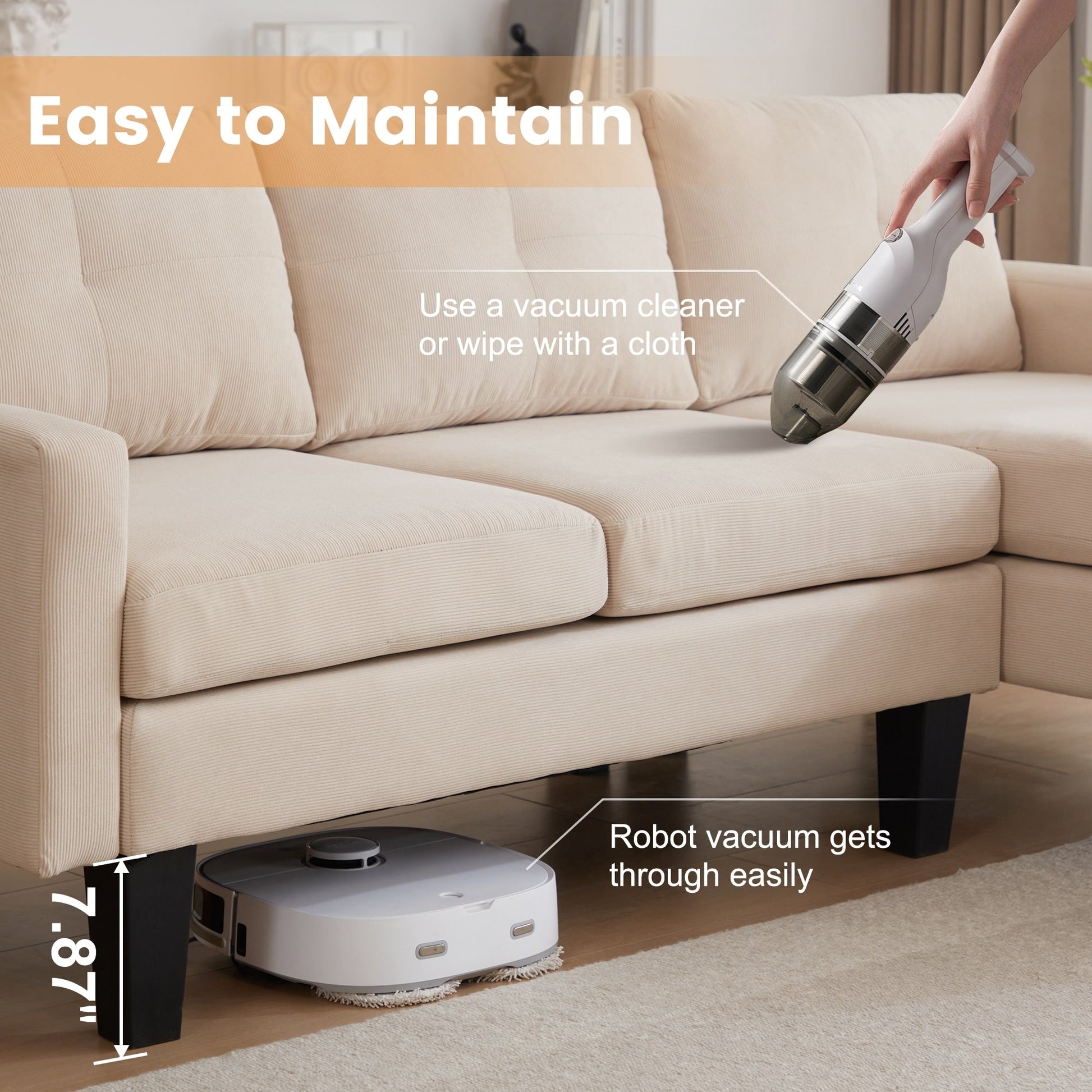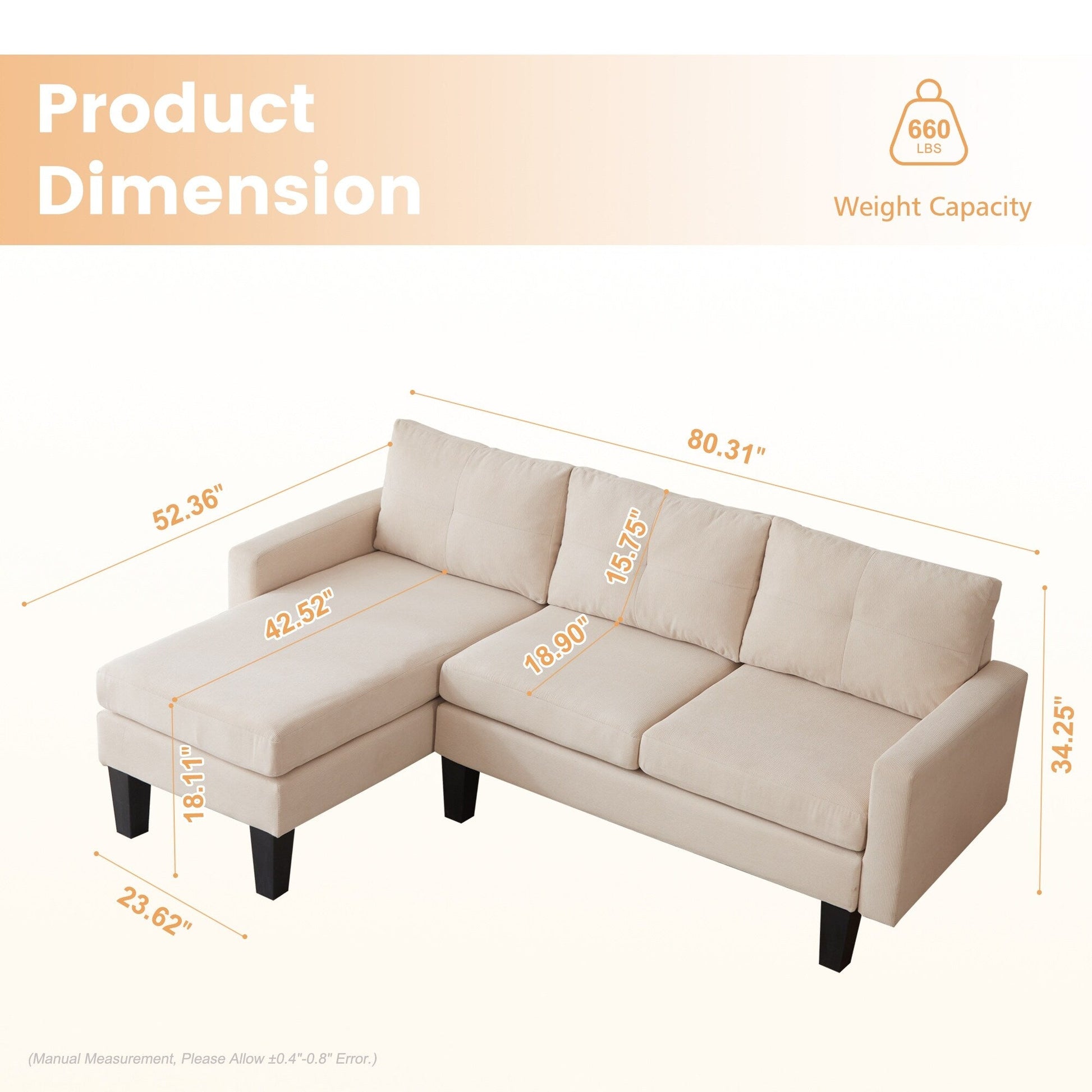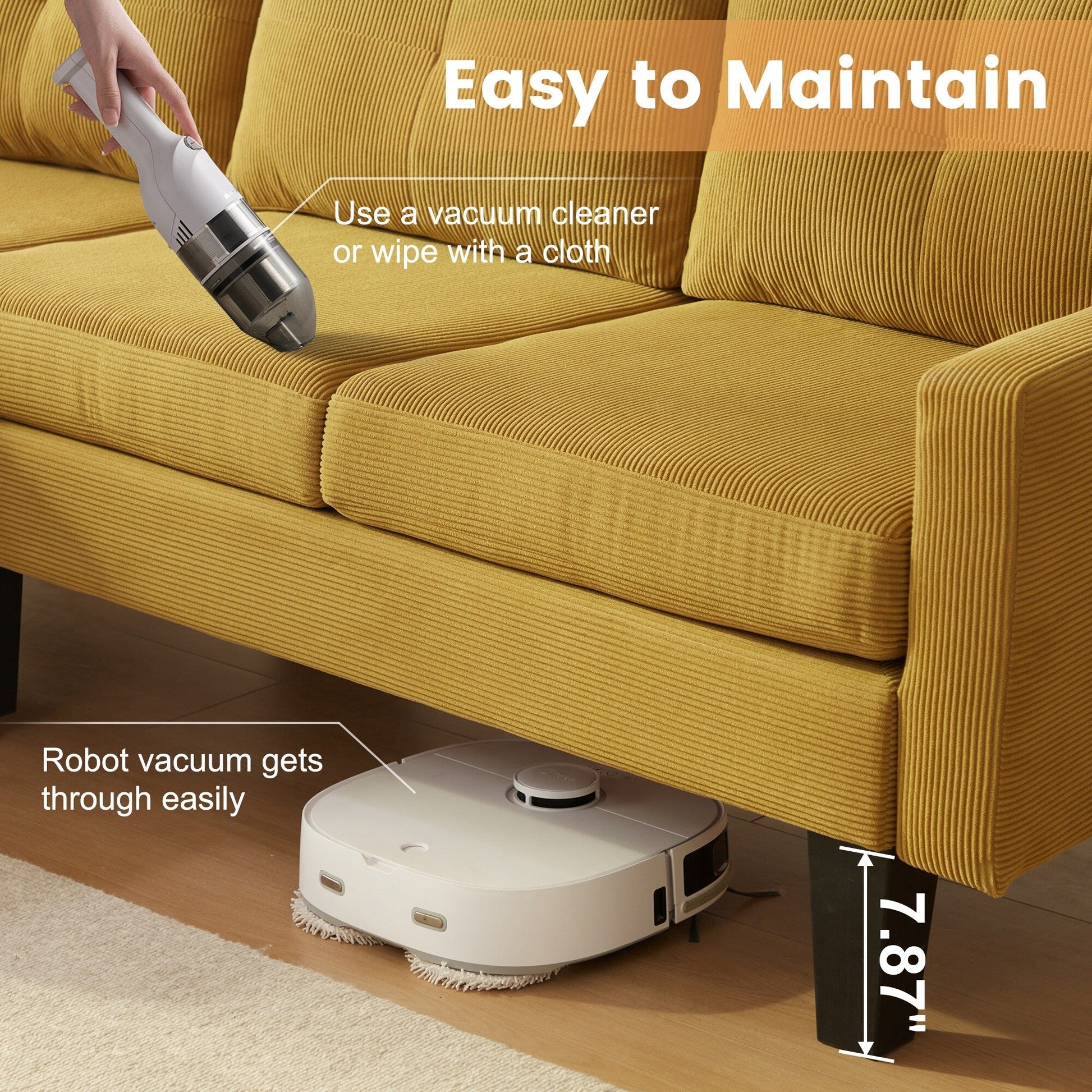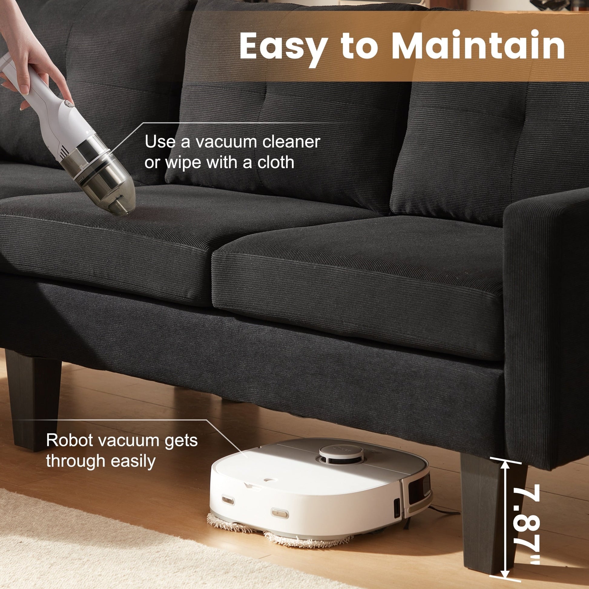 Indulge in luxury with HOOOWOOO Modern L-shaped Corduroy Fabric Chaise Sofa. Featuring a solid wood frame and square arm design, its modern and elegant look brings a natural, simple and elegant atmosphere to the living room. Additionally, this sofa is padded with high density foam provides enjoyable sitting experience, and covered in breathable and soft corduroy fabric adds both style and practicality, perfectly making you enjoy leisure time with friends and family till midnight.