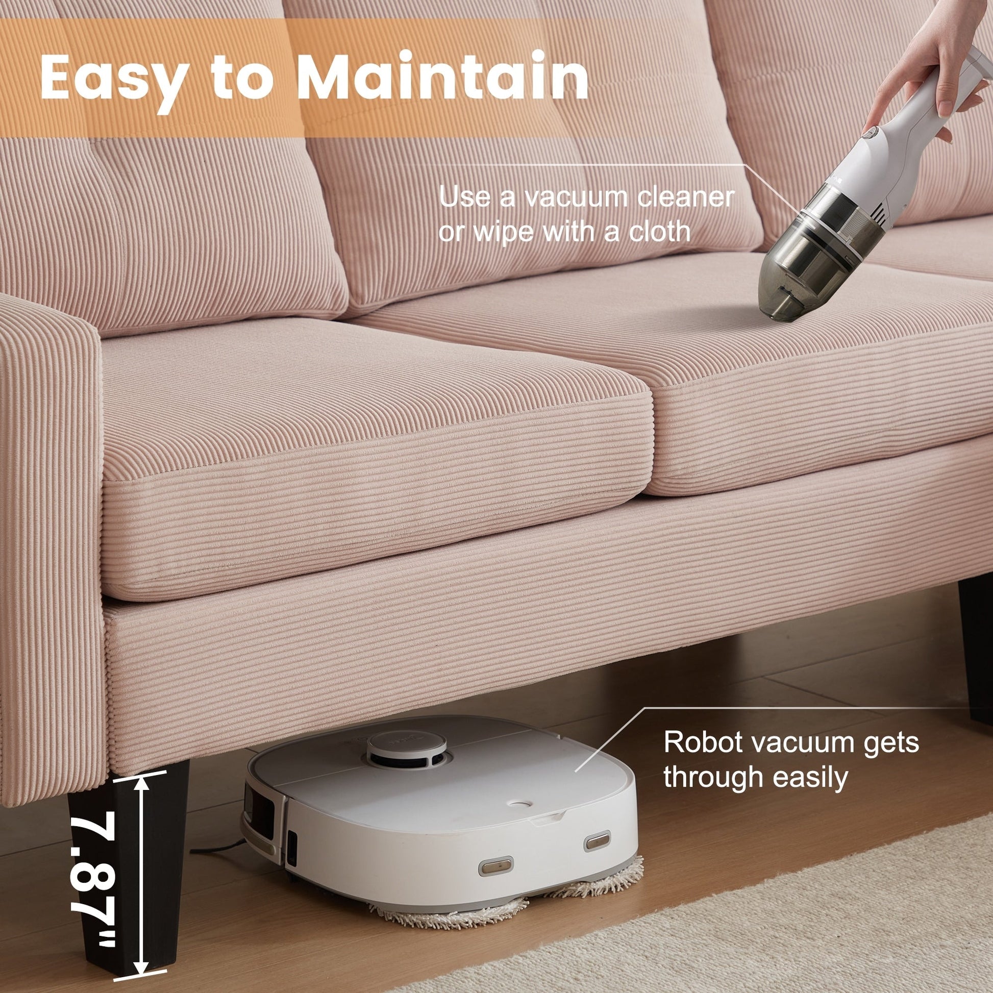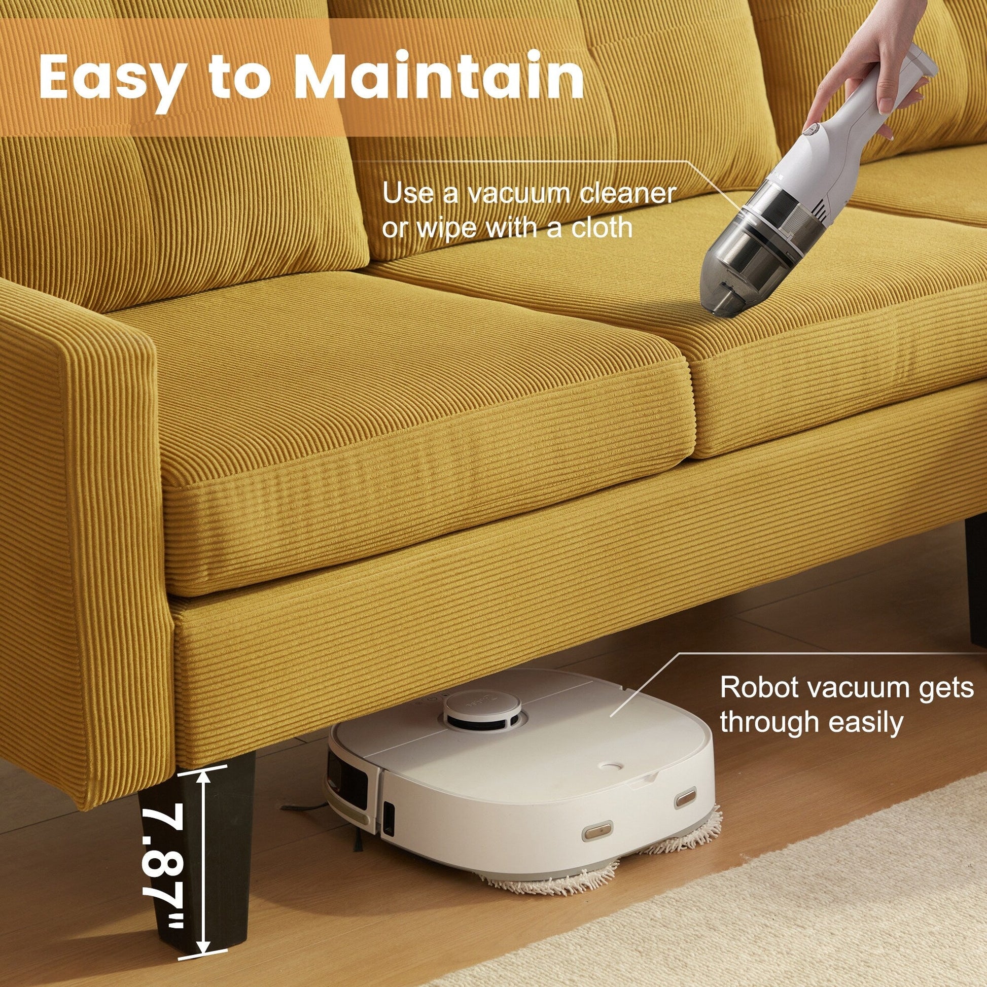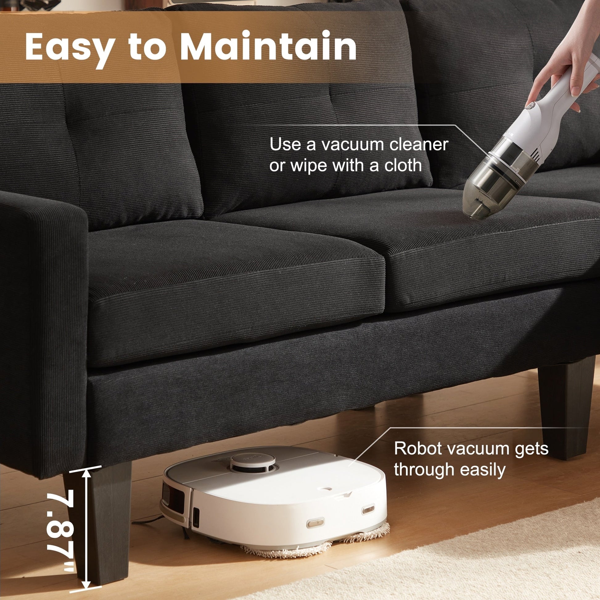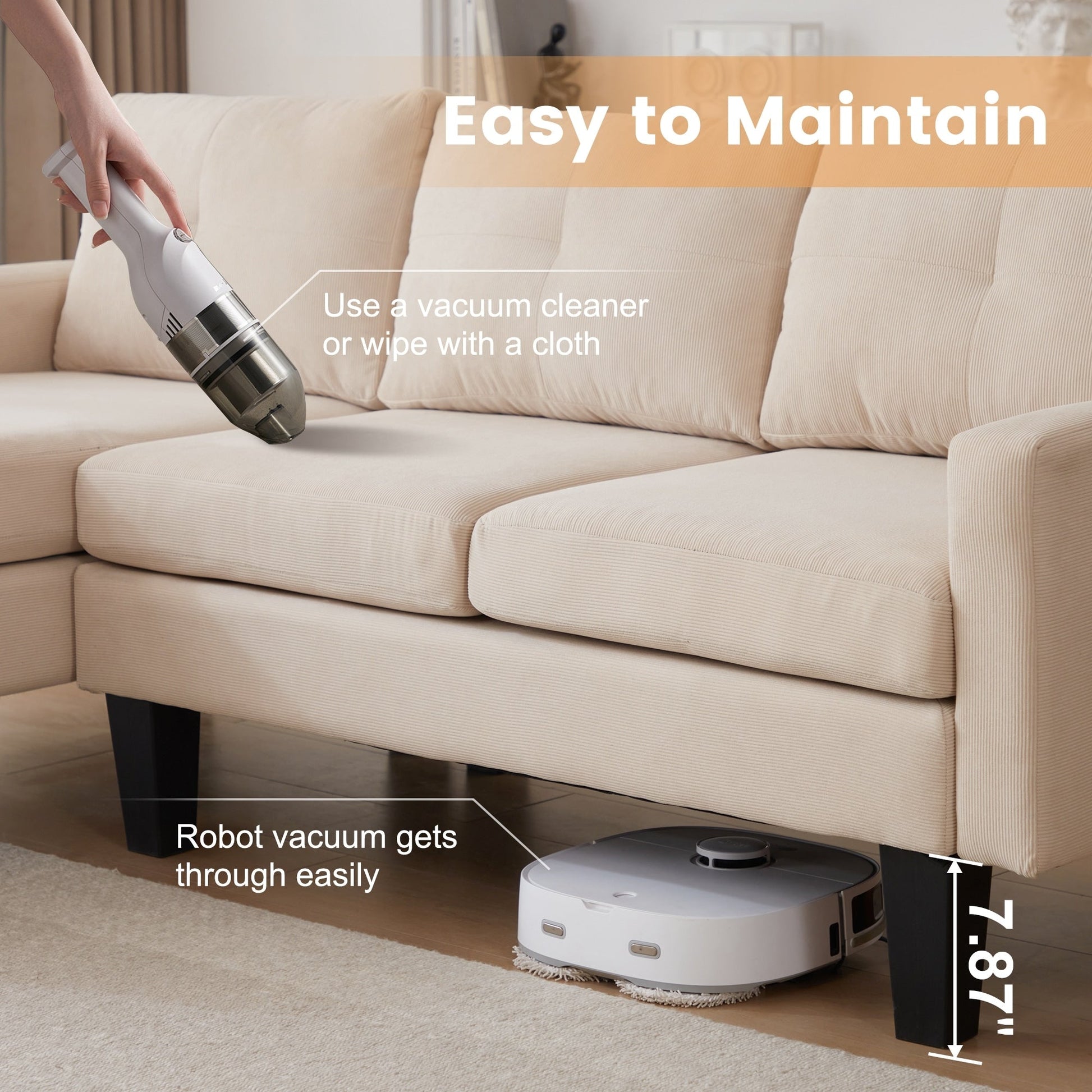Indulge in luxury with HOOOWOOO Modern L-shaped Corduroy Fabric Chaise Sofa. Featuring a solid wood frame and square arm design, its modern and elegant look brings a natural, simple and elegant atmosphere to the living room. Additionally, this sofa is padded with high density foam provides enjoyable sitting experience, and covered in breathable and soft corduroy fabric adds both style and practicality, perfectly making you enjoy leisure time with friends and family till midnight.