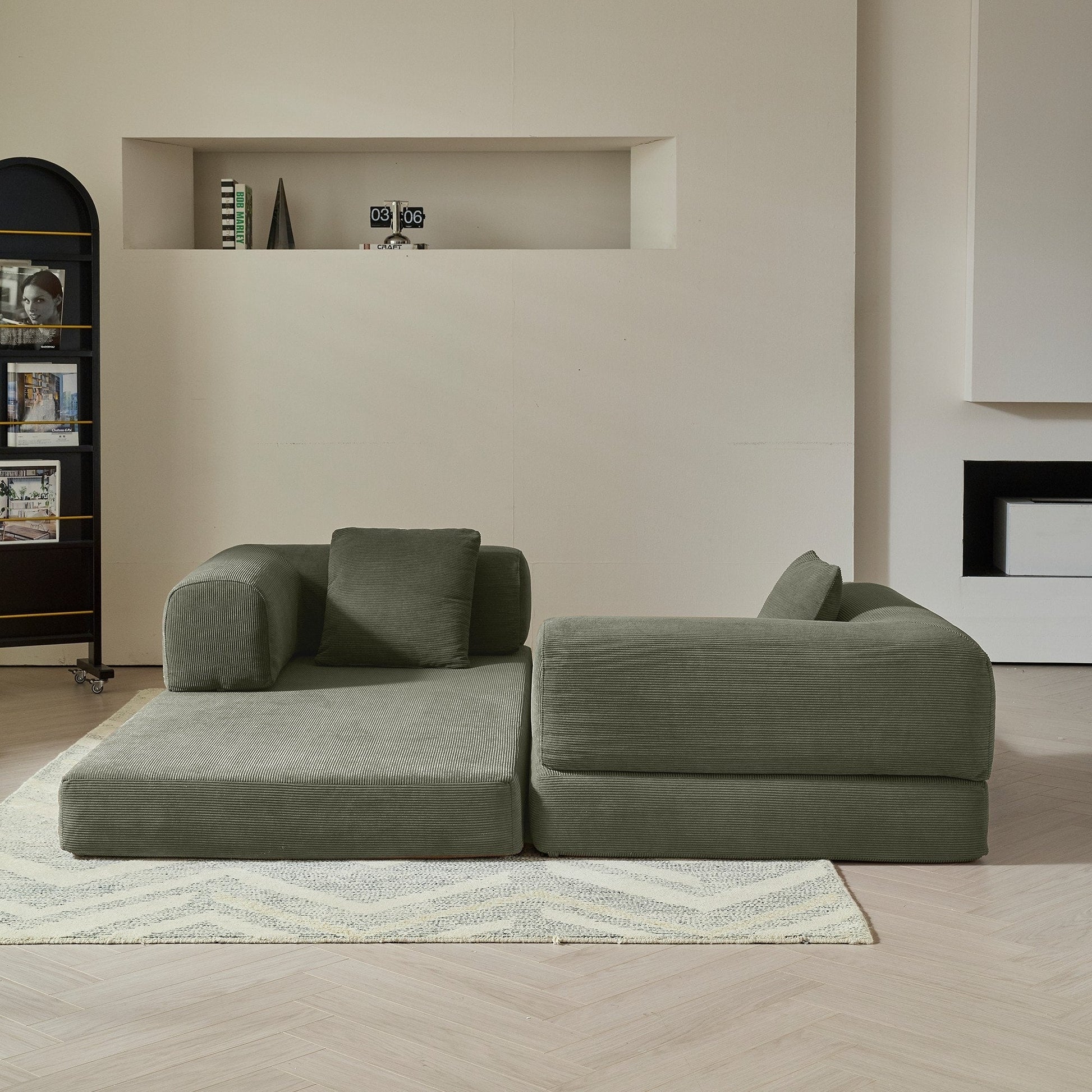 Elevate the aesthetic of your living room or lounge with this solid color convertible sofa bed, designed to impart a sleek and minimalist charm to your home. Crafted with a stainless steel back frame for durability, enveloped in plush corduroy fabric, and padded with 3D high rebound sponge, this sofa promises both style and comfort. The soft cushions coupled with high-density sponge filling ensure a luxurious seating experience. Perfect for any living space, this sofa transforms effortlessly to meet your needs, blending functionality with modern design.