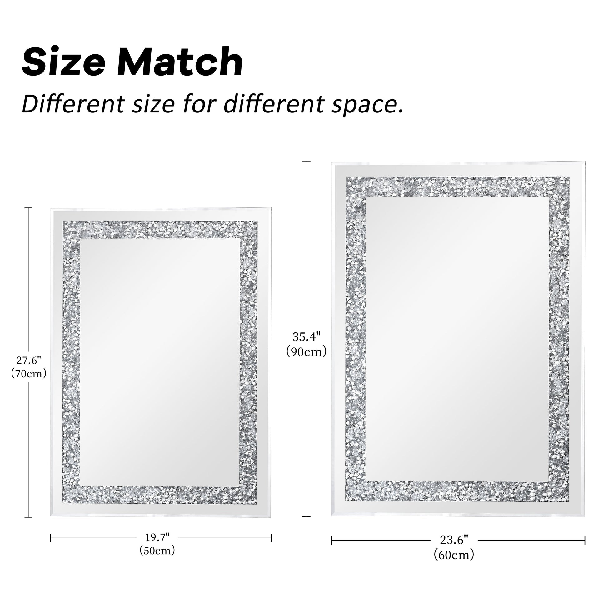 - Size: Two sizes of the mirrors for wall decor bedroom. The rectangle shaped frameless mirror design features sparkly twinkle bling crystal crush diamond.