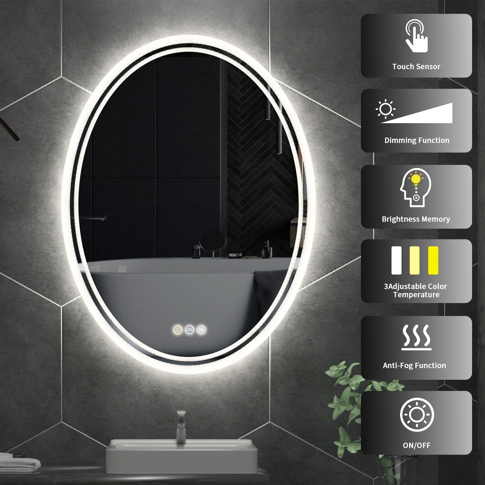 LED Backlit Bathroom Vanity Mirror Wall Mounted Anti-Fog Oval Touch