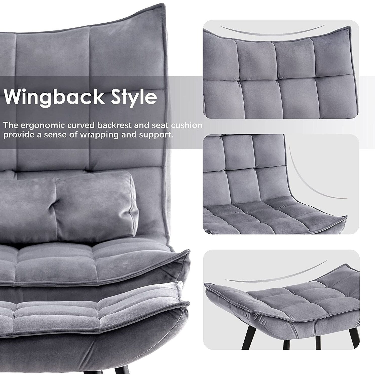 Mcombo Accent Chair with Ottoman, Velvet Tufted Wingback Chair, Upholstered Chairs with Metal Legs for Bedroom Living Room 4079