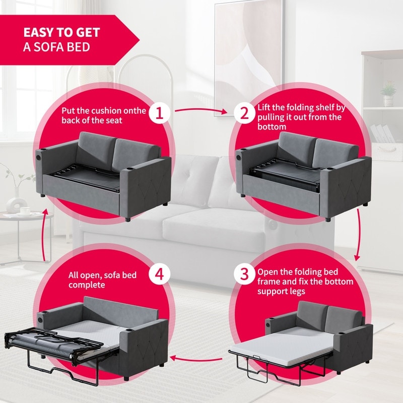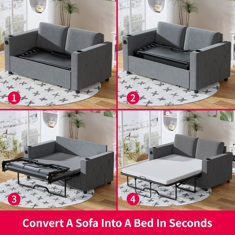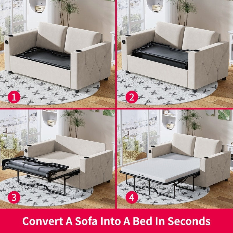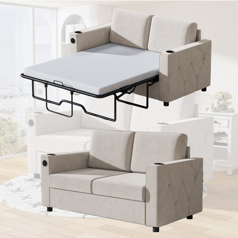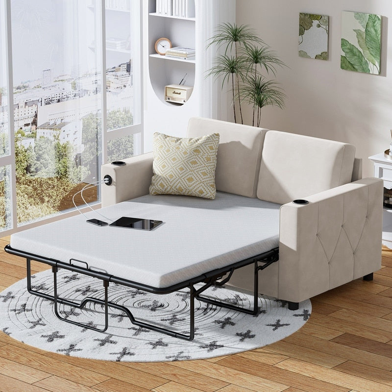 Mixoy Pull Out Sofa Bed,Sleeper Sofa Couch with Memory Foam Mattress,Cup Holder,USB,Pull Out Couch Bed
