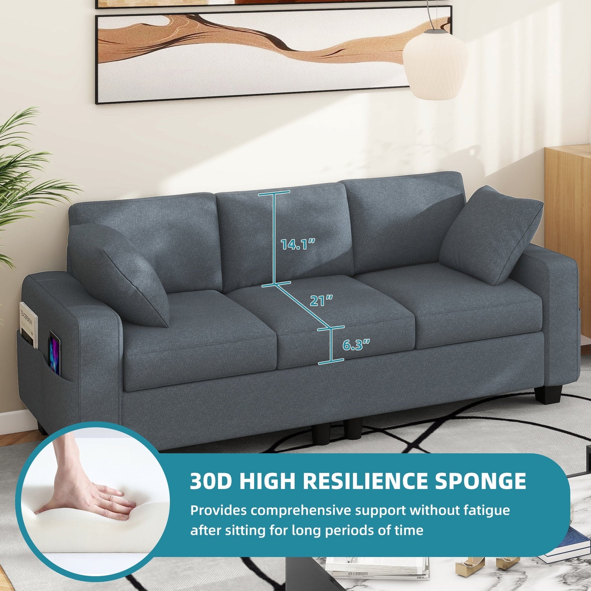 Moasis 80 3-seater Upholstered Sofa 2 Pillows Couches with Side Pockets for Living Room